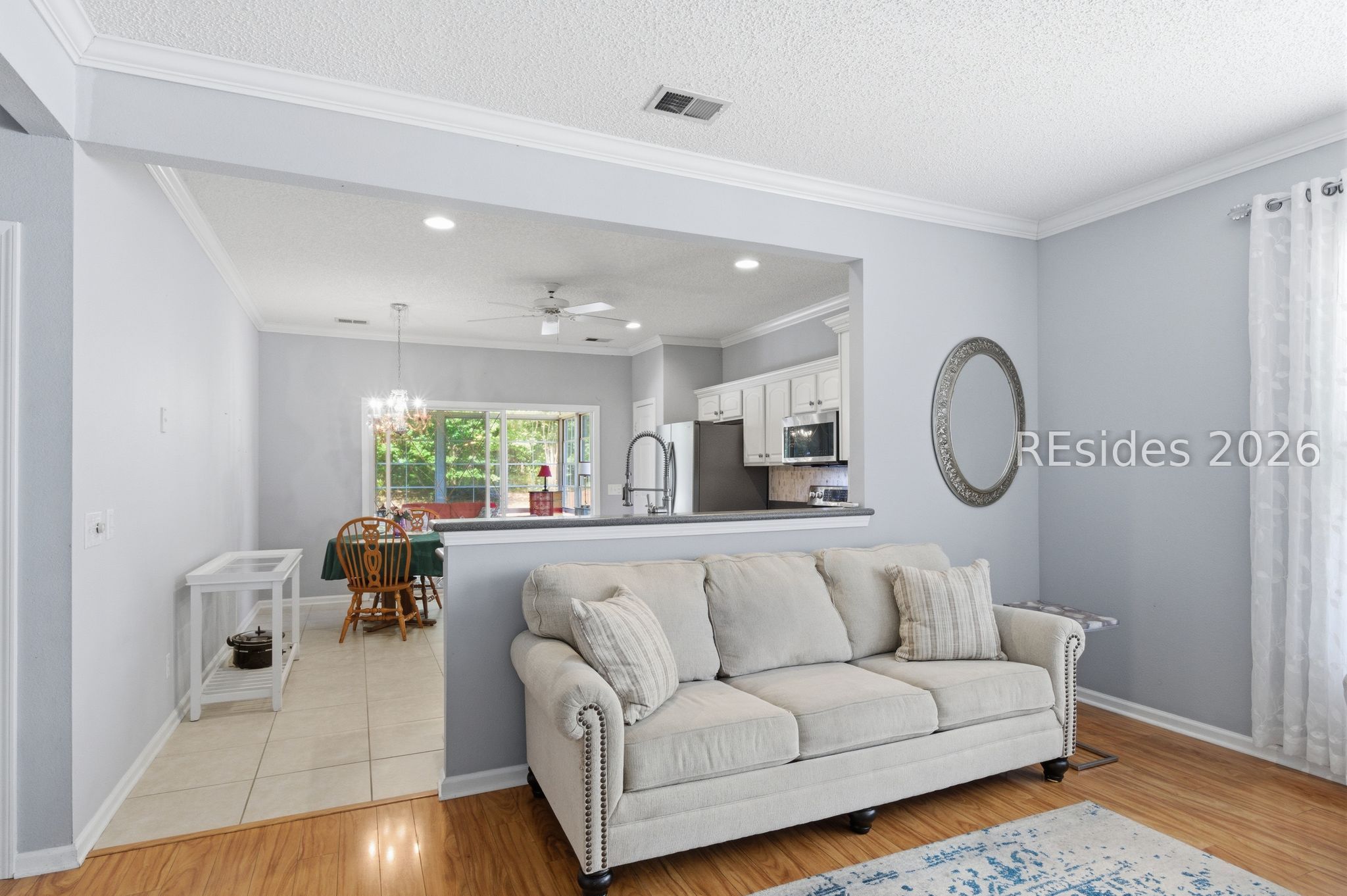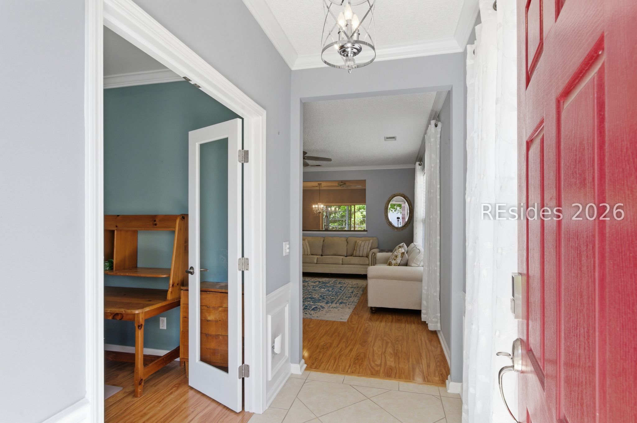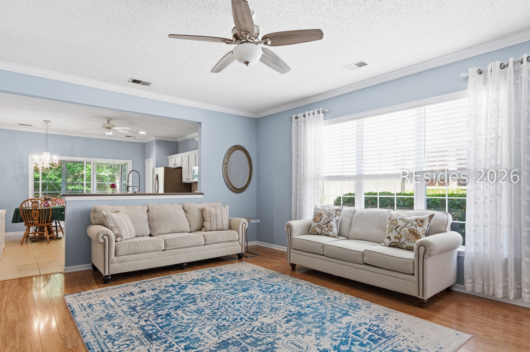 This must-see 1,804 sq. ft. Primrose Model offers a rare blend of comfort, style, and connection to nature, featuring 2 bedrooms, 2 bathrooms, plus a versatile office/den-perfect for remote work, hobbies, or additional guest space. Designed with both relaxation and entertaining in mind, the home showcases an expansive Carolina Room surrounded by windows, flooding the space with natural light and providing tranquil views of the private wooded backdrop-a peaceful retreat right in your own home. Thoughtfully designed open and functional floor plan w/Crown molding adds an elegant finishing touch. Bright eat-in kitchen with stainless steel appliances, ample cabinetry, and casual dining space. Spacious primary suite with comfortable layout w/ Bay Window and privacy. Beautifully upgraded guest bathroom featuring a full glass, multi-head spa-style shower for a luxurious experience. Flexible office/den ideal for work-from-home or creative use. Outdoor Living & Exterior Upgrades: NEW ROOF (2023) for peace of mind. Charming herringbone brick pathway enhancing curb appeal. Private brick patio with knee wall, perfect for outdoor entertaining or quiet evenings. Serene, wooded rear setting offering privacy and natural beauty. You'll find an Oversized garage with custom-built cabinetry for exceptional storage w/Durable all-weather carpeted flooring in garage and a Retractable, remote-controlled garage door screen-ideal for ventilation and versatile use of the space. Convenient access to the Sun City back gate for easy entry and exit. Enjoy resort-style living with Sun City's renowned amenities (golf, pools, fitness, clubs, and more). Ideally located near Old Town Bluffton, Beaufort, Hilton Head Island, and Savannah-offering dining, shopping, beaches, and cultural attractions just a short drive away. Unique Buyer Opportunity: (Seller financing available at just 5% interest,) offering potential savings, flexibility, and a quicker closing process-an exceptional opportunity in today's market! Hurry as this one is a Rare Opportunity!