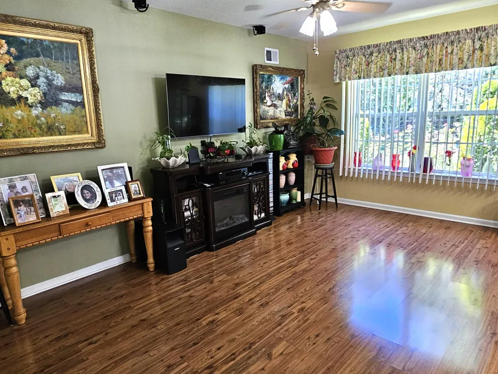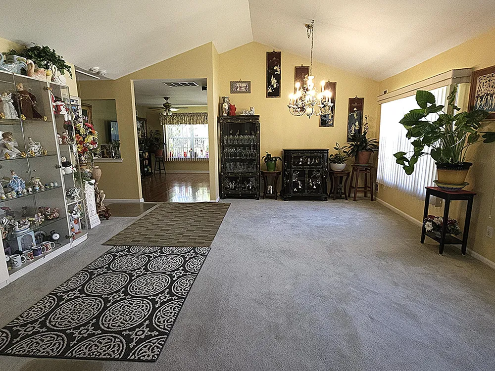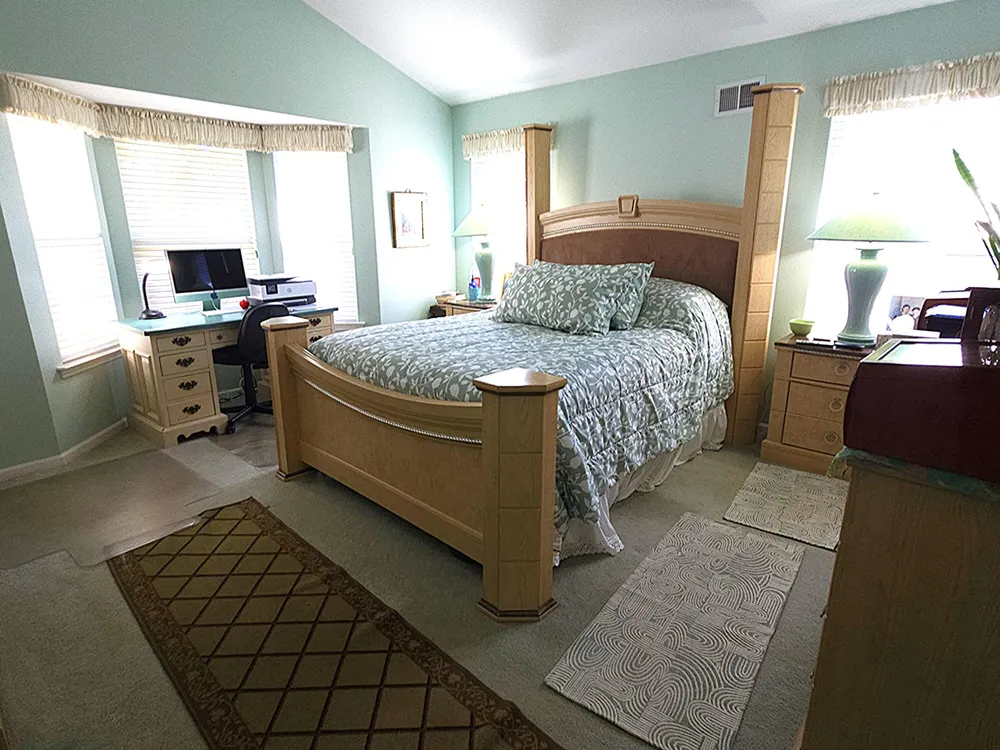 Welcome to this lovely corner home on a quiet cul-de sac street with no thru traffic in the highly desirable Fairways at Lake Ridge community! Close to Augusta Blvd. entrance. Step inside to soaring vaulted ceilings in the living and dining rooms. The spacious main bedroom suite includes a full bath and a generous walk-in closet for plenty of storage. An inviting eat-in kitchen offers a center island , while the cozy family room offers versatility as a media room, library, or quiet sitting area. Beautifully landscaped with lush flowering gardens and evergreens for privacy. New retractable electric awning shades your patio. Sprinkler system runs on a private well to keep water bills low! Huge 2 car garage provides additional storage.