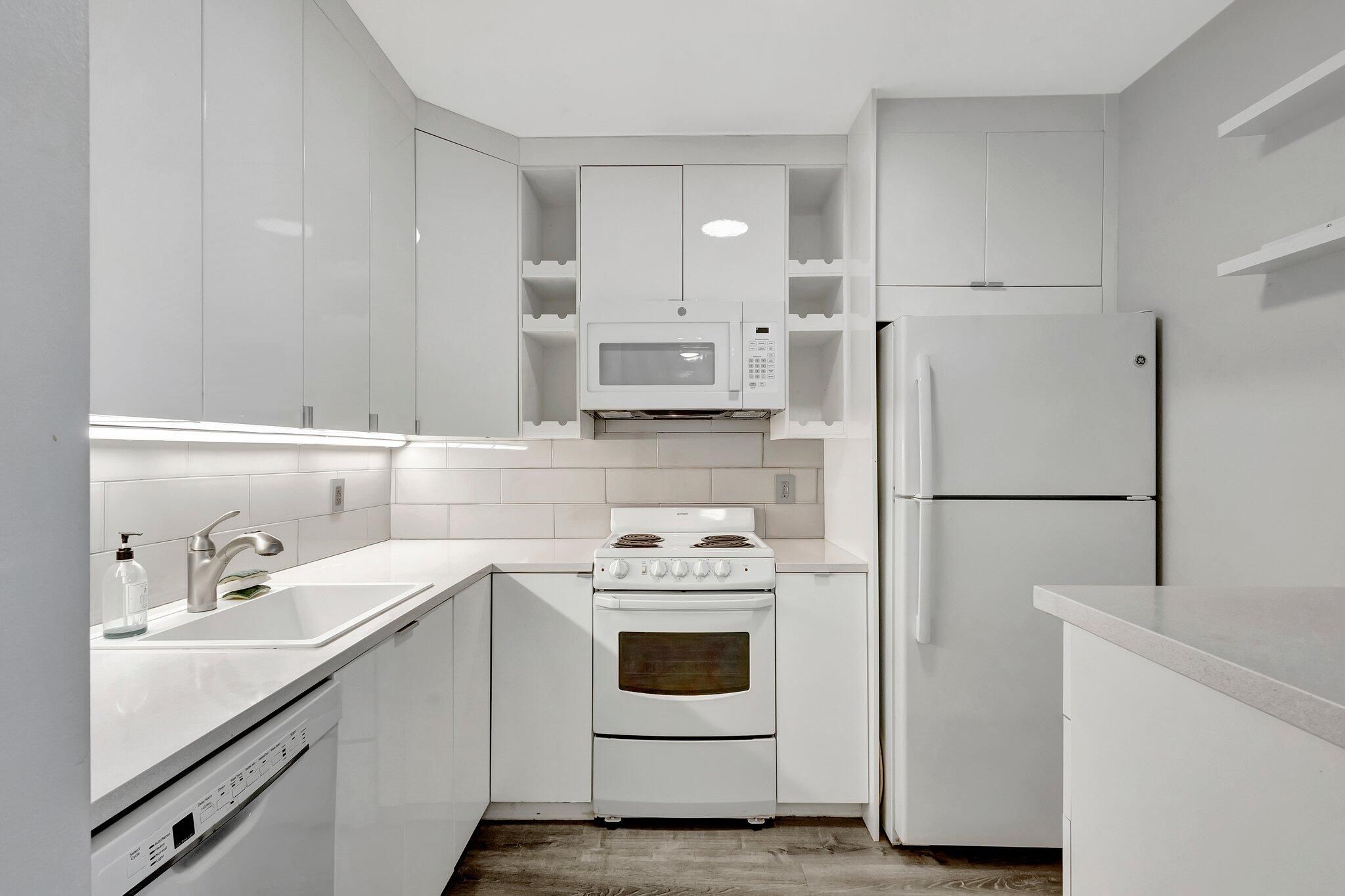 - Dishwasher, Microwave, Electric Range, Refrigerator