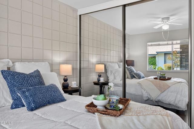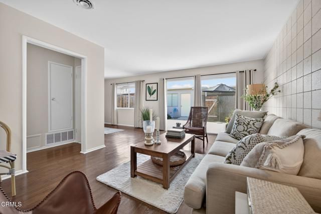 Welcome home to this charming 2-bedroom, 1-bath residence in the highly desirable 55+ community of Hueneme Bay. Thoughtfully designed and filled with natural light, this inviting home offers comfort, flexibility, and modern updates throughout.The freshly painted interior and smooth ceilings create a clean, contemporary feel. A bright eat-in kitchen features new appliances--including a new sleek stove, new range hood, and a new dishwasher --along with a deep sink and new stylish high-profile faucet.The home includes two well-sized bedrooms, with one currently staged as an office that can be converted back to a bedroom with an additional wall installed or a freestanding divider. The spacious bathroom, conveniently located between the bedrooms, has been updated with a new nickel faucet, newer lighting fixture and a beautiful arched mirror.Enjoy the sunlit living room that opens to a generous patio--perfect for gardening, relaxing, or entertaining. A versatile separate flex space across the patio serves as a laundry and hobby room, offering potential for a wonderful art studio or even a junior ADU. An attached one-car garage adds convenience and functionality.Blending comfort, versatility, and an ideal location, this delightful home is a fabulous opportunity at a great value to exper