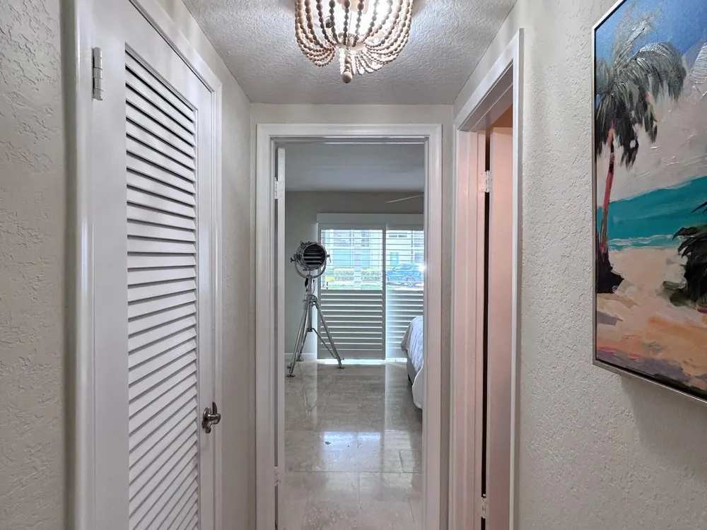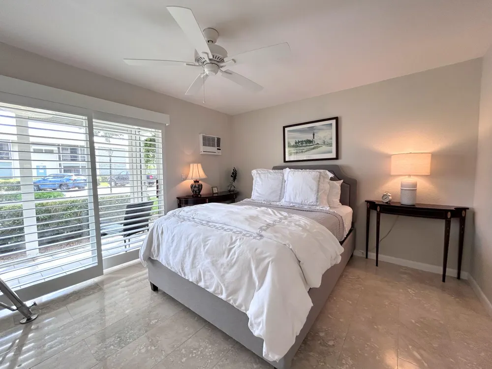 Darling Beach Retreat in popular 55+ Sterling Village on the Intracoastal. Completely remodeled, fully furnished and tastefully decorated. Plantation shutters cover windows inside and on full slider to lanai. Both TV's are wall mounted and cables hidden. Open kitchen has custom cabinets, granite, island with extra storage, full sized appliances and much more. Paneled French doors installed over the custom closets. Lanai has door leading directly to parking spot and trees provide shade. Very easy access to laundry next door and steps to putting green and picnic pavilion with grills. Clubhouse renovation is now complete including new fitness center. Community is now gated, and pickleball, car wash area and internet is also in all condos. 1/2 mi promenade directly on Intracoastal (see pg 2).