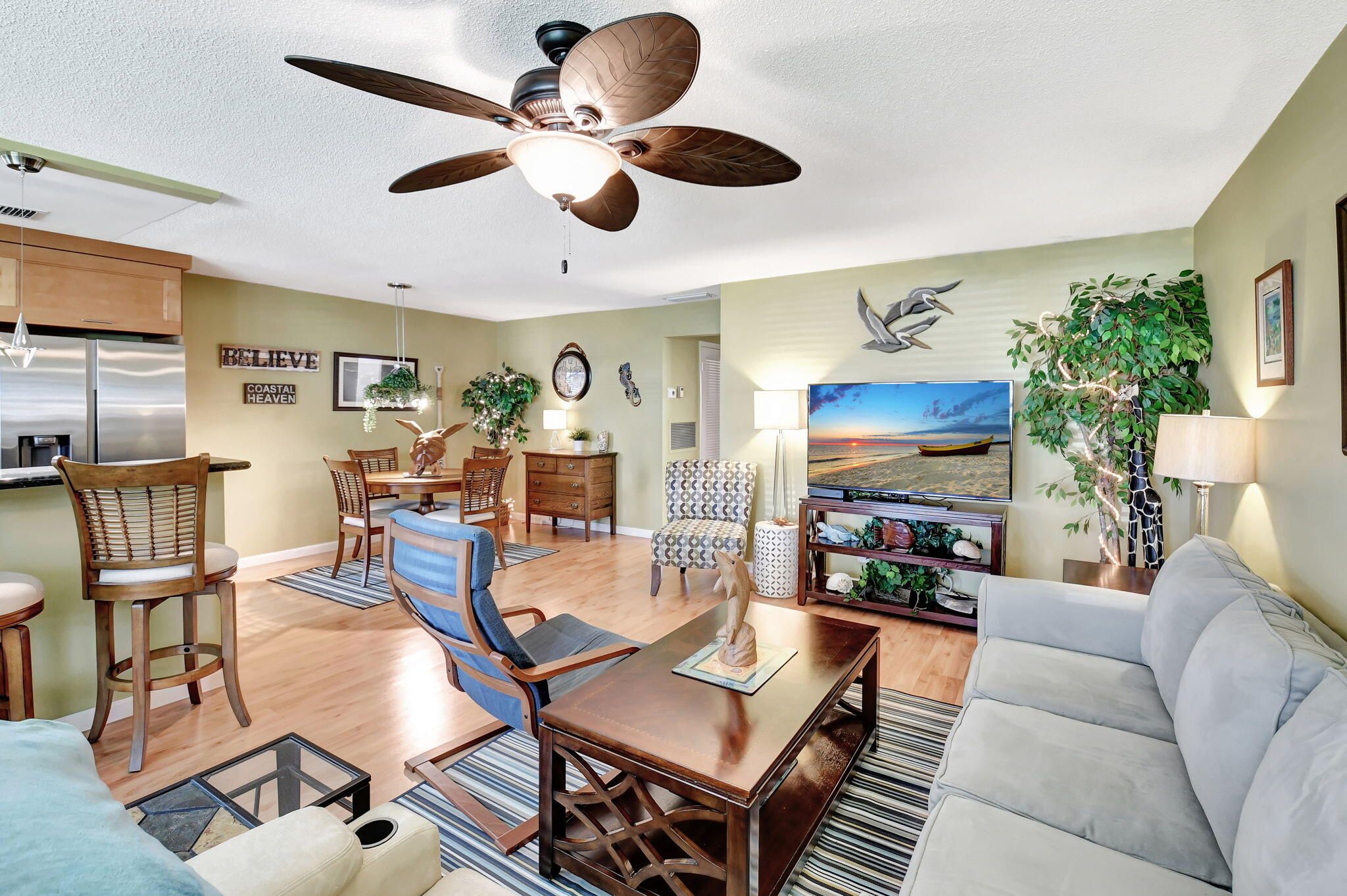 UPDATED and TURNKEY, right next to heated pool and clubhouse, 1 large bedroom and a den, with two walk-in closets, 1.5 bathrooms, plus Florida Room/Den. COMPLETE impact windows (back and front) open kitchen concept with stainless steel appliances, granite countertop.comfortable wood grain laminate floor with tile bathrooms & Florida room. Relax and enjoy your private patio and walk among resort-style amenities, including a second heated pool, Tiki Bar, HOA Conveniently located near beaches, shopping, dining, scenic walking trails & parks, and two airports. IDEAL LOCATION for those seeking a great community with coastal living near the beach. Section 4 has the lowest fees and no special assessments. Roof 2023, Paint 2024.Road 2022.No special assessments. LOW HOA Only $349