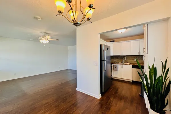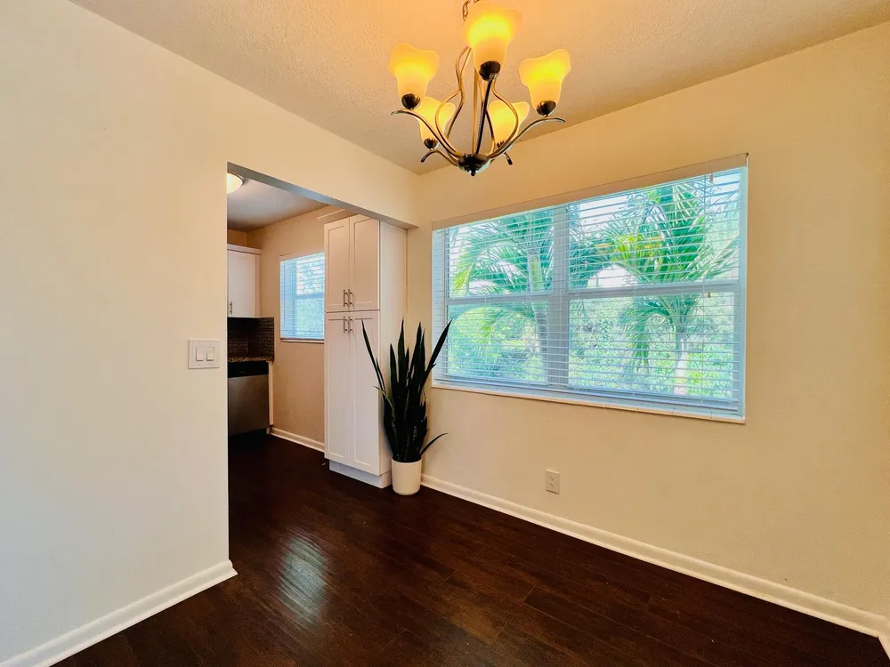 Gorgeous & Updated With Water Views in 55+ Century Village! CORNER 2/1.5 With Pretty Updated Kitchen Featuring White Shaker Style Cabinets, Stainless Appliances (including a dishwasher), Window for Natural Light, and Granite Counters. Upgraded Stunning Dark Wood Look Flooring Flows Throughout. Hurricane Impact Windows. Nicely Maintained Building With New Roof (2022). Century Village Is A Vibrant Active 55+ Community Centrally Located In Highly Desirable Palm Beach County! Enjoy Resort Style Amenities...