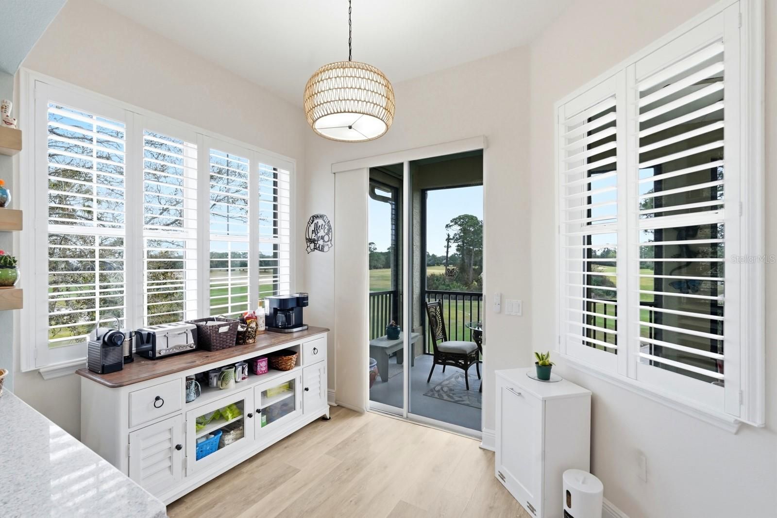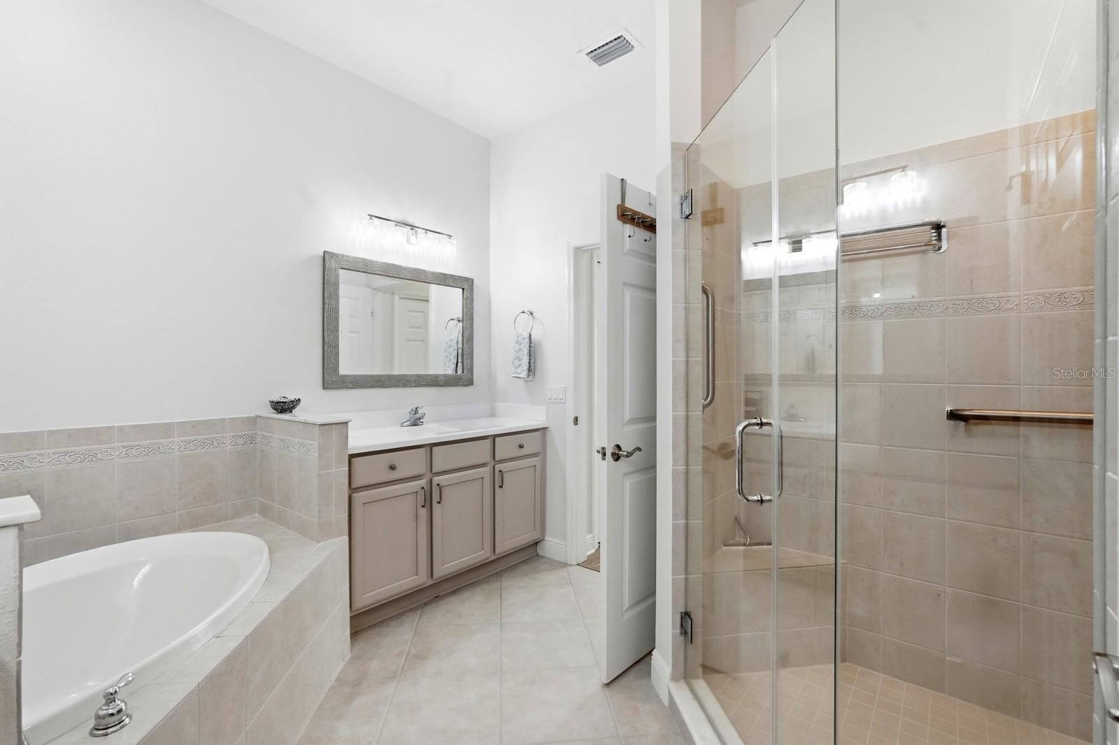 - Built-in Features, Ceiling Fan(s), Crown Molding, Eat-in Kitchen, Main Level Primary, Solid Surface Counters, Thermostat, Tray Ceiling(s), Walk-In Closet(s), Window Treatments