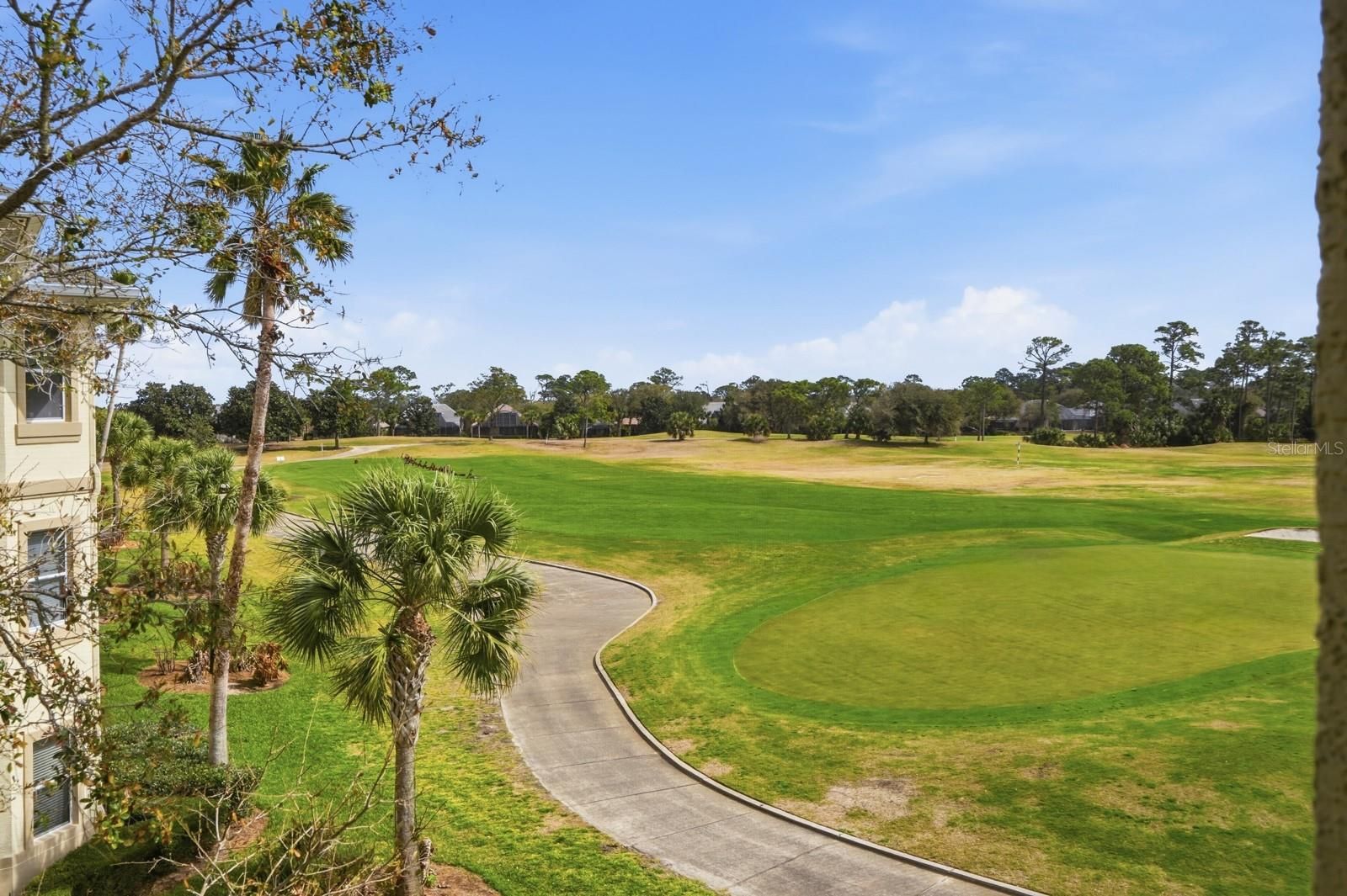 Expansive golf course views from this updated end-unit in Riverview Condos within the gates of Grand Haven. This third-floor, elevator-accessible residence offers 3 bedrooms, 3 full baths and 2,167 sqft of living space plus a private 2-car garage. The open layout features volume ceilings, vinyl flooring and a spacious living area with an electric fireplace. Sliding doors open to a screened balcony overlooking the fairway. The kitchen is updated with solid surface countertops, built-in oven, and a breakfast nook with bar seating. The primary suite offers balcony access and golf views, while two additional bedrooms and baths provide space for guests or a home office. Secure building access and elevator convenience, along with Grand Haven’s golf, tennis, fitness, pools and walking trails, complete this maintenance-free lifestyle in one of Palm Coast’s premier gated communities.