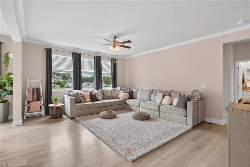 This rare gem offers a multigenerational home with a fully finished basement in Smithfield! With 6 bedrooms (including a flex. room) and 4 full baths, this beautifully designed home provides exceptional space, functionality, and storage. Situated on a corner lot near 2 pools, a clubhouse, tennis/pickleball courts, playgrounds, and the neighborhood restaurant—enjoy resort-style living. A first-floor bedroom and full bath is perfect for guests, teens, or in-law suite. The kitchen features white cabinetry, quartz counters, pantry, and gas cooktop. Upstairs, the primary suite is a retreat with a walk-in closet and spa-style ensuite—oversized tiled shower, soaking tub, and dual vanities. All bathrooms have tile flooring. Awaiting outside is your low-maintenance Trex deck—ideal for BBQs or relaxing under the stars. Minutes from historic downtown Smithfield: farmers markets, live music, festivals, and boutique shopping. Plus, enjoy growing access to new dining, shopping, and a new hospital.