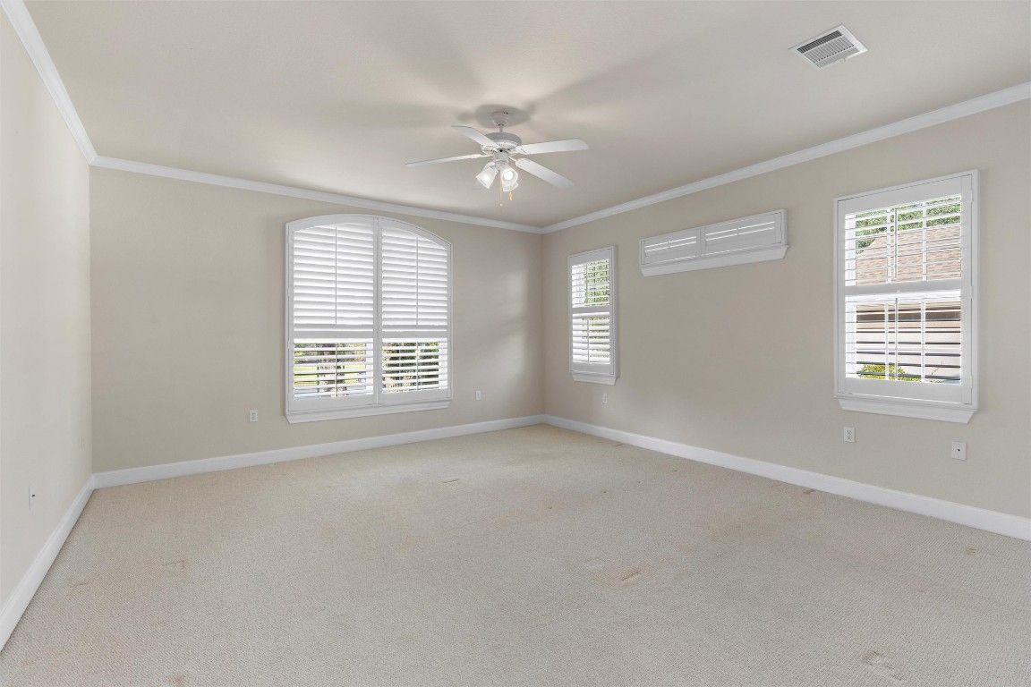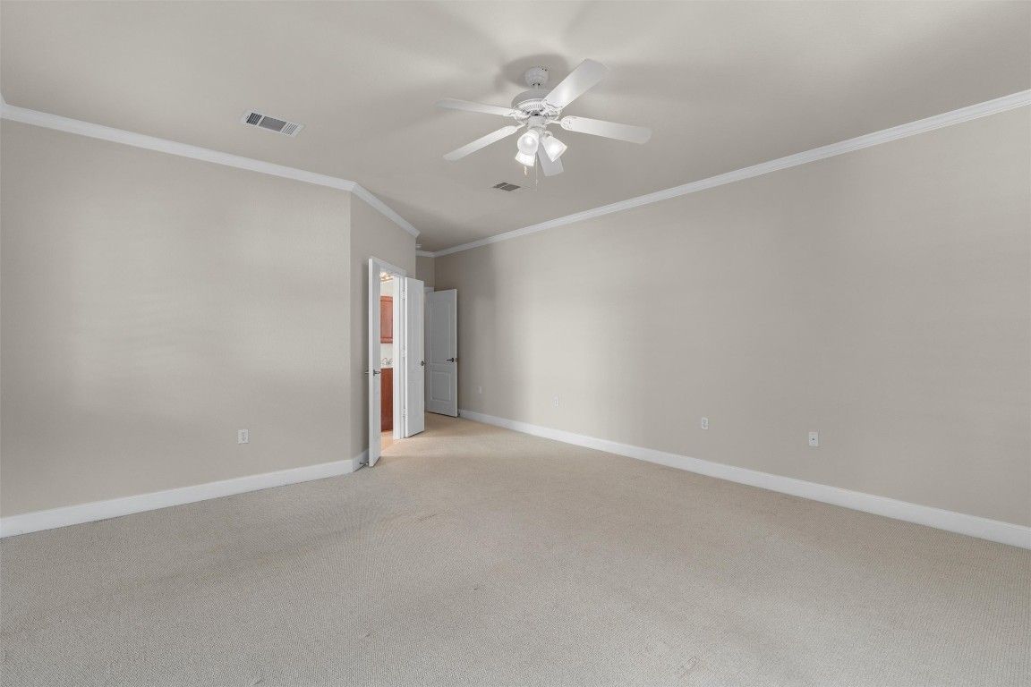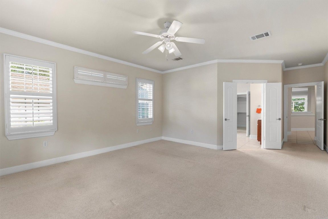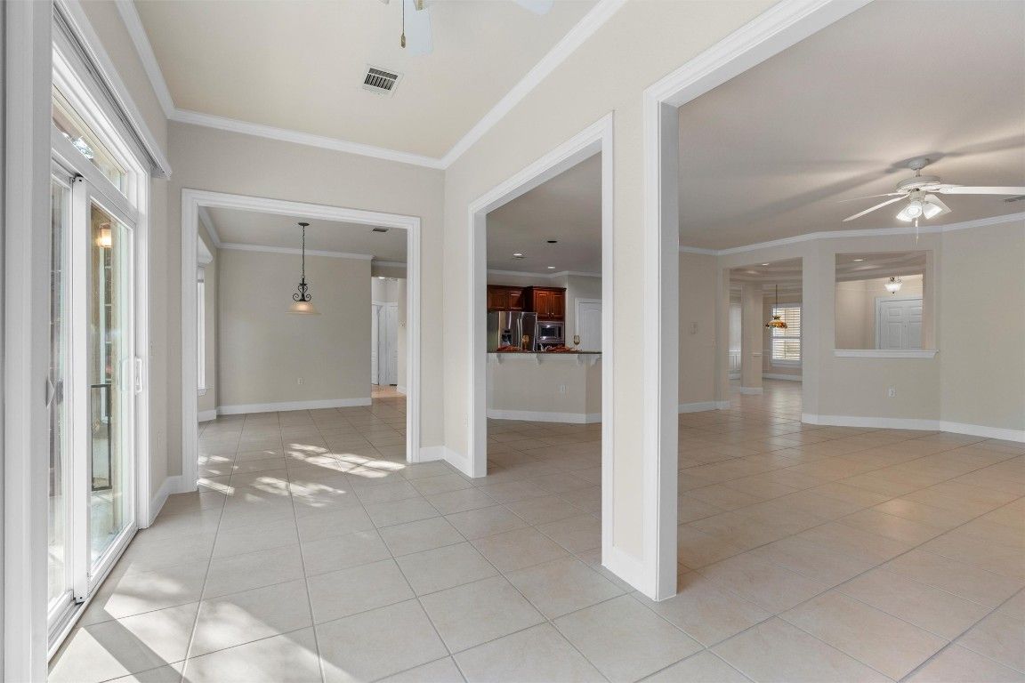 - Breakfast Bar, Bookcases, Built-in Features, Ceiling Fan(s), Crown Molding, Separate/Formal Dining Room, Double Vanity, Entrance Foyer, Granite Counters, High Ceilings, Kitchen Island, Multiple Dining Areas, Main Level Primary, NoInteriorSteps, Open Floorplan, Pantry, Recessed Lighting, Walk-In Closet(s)