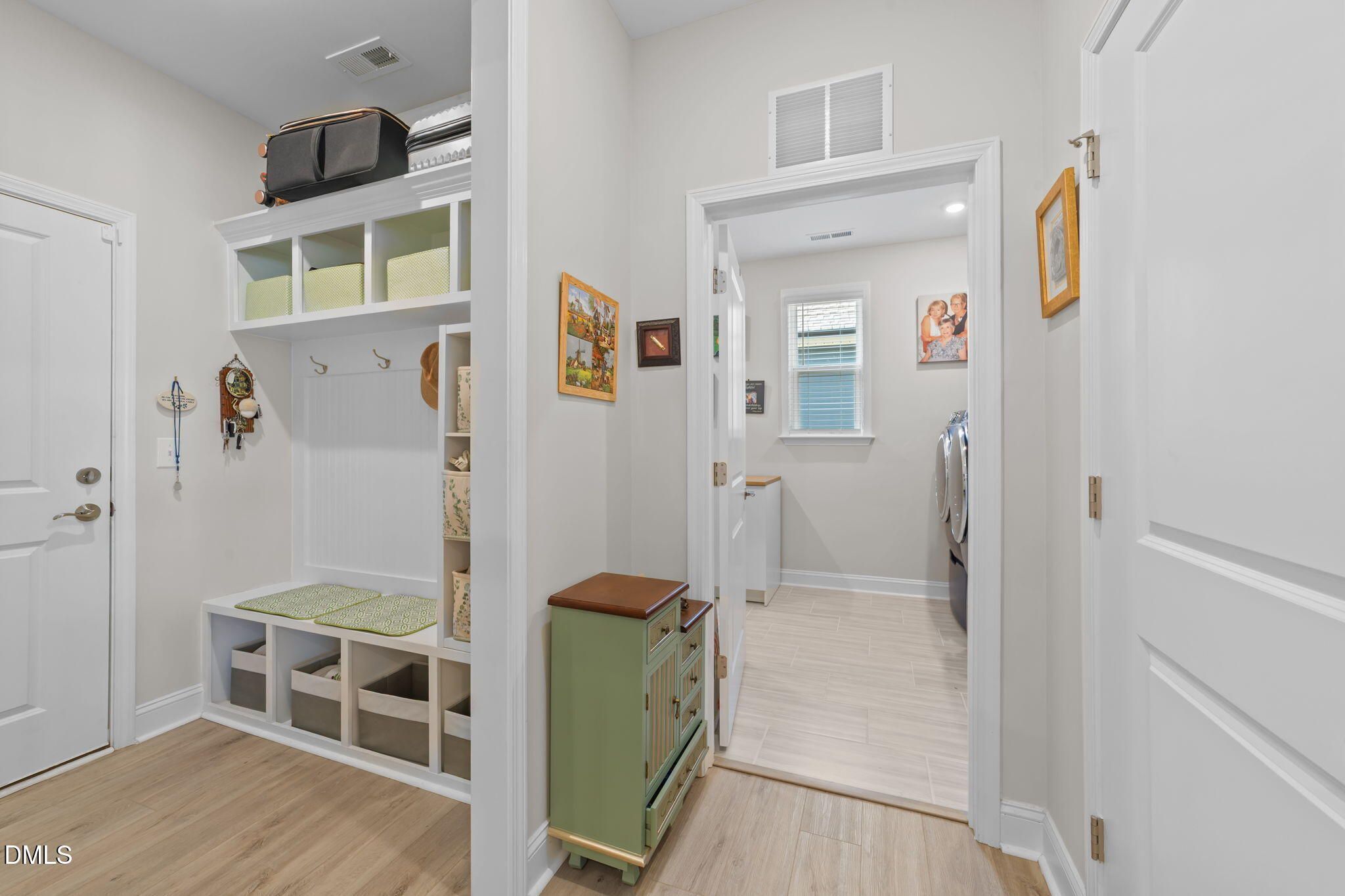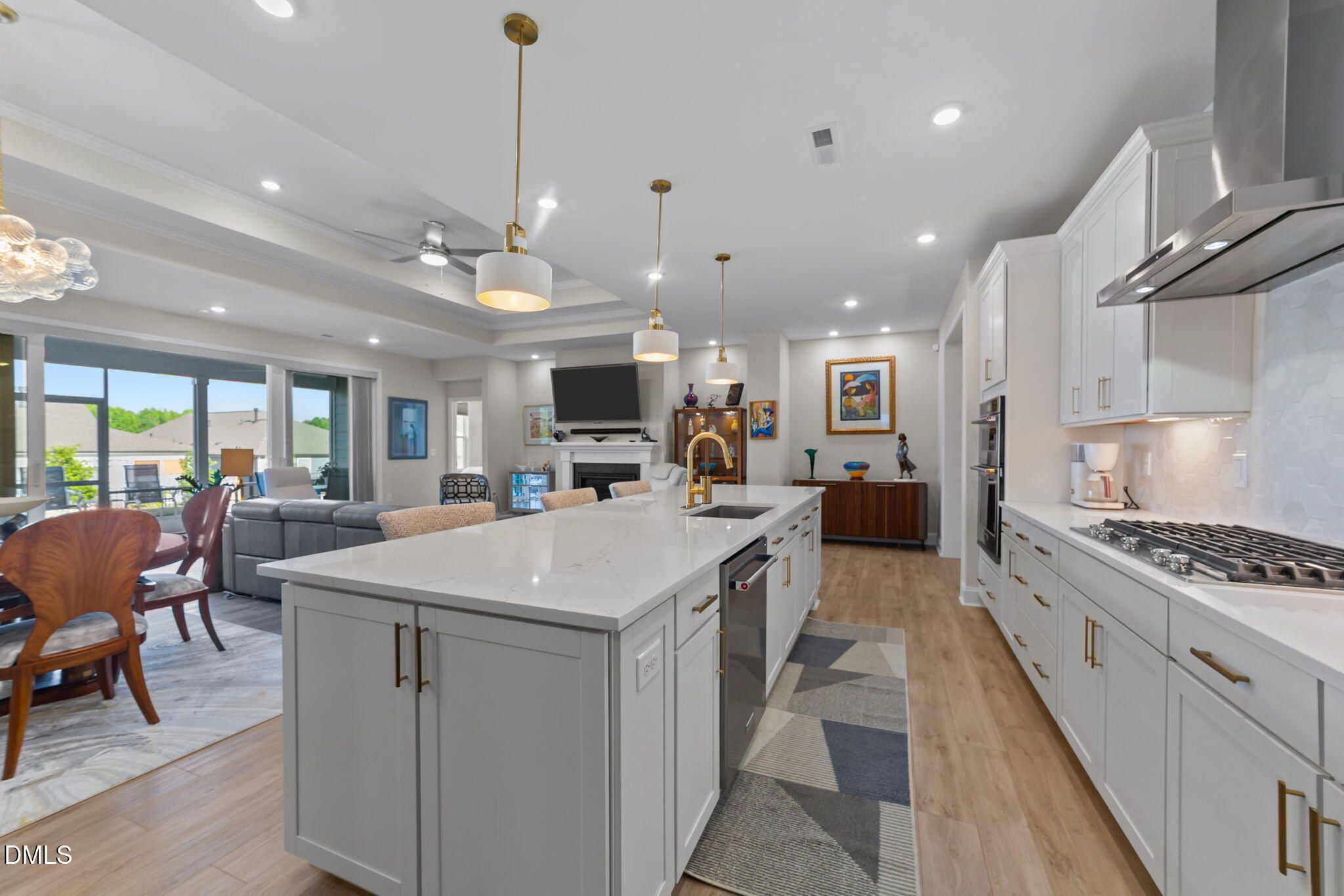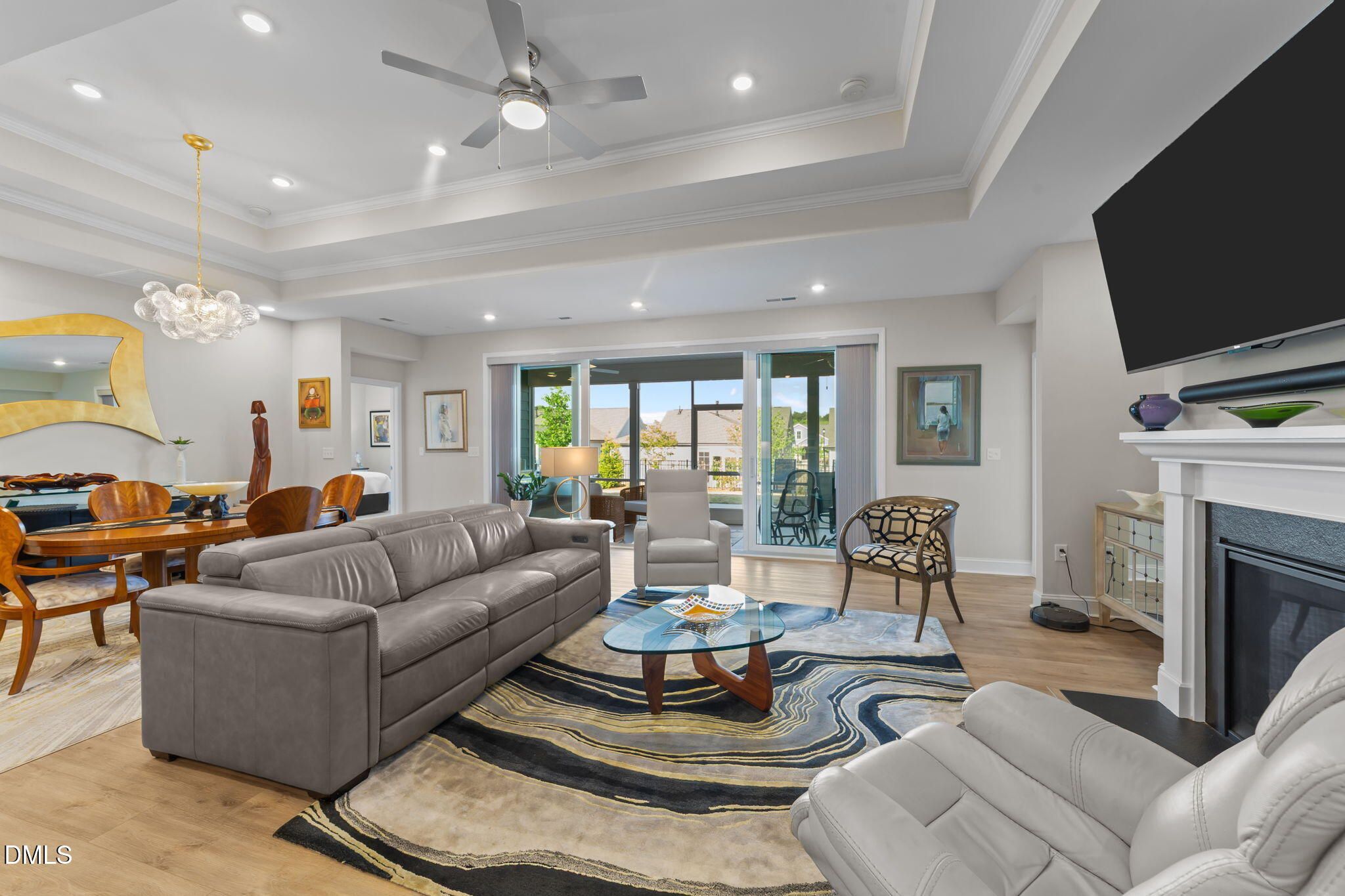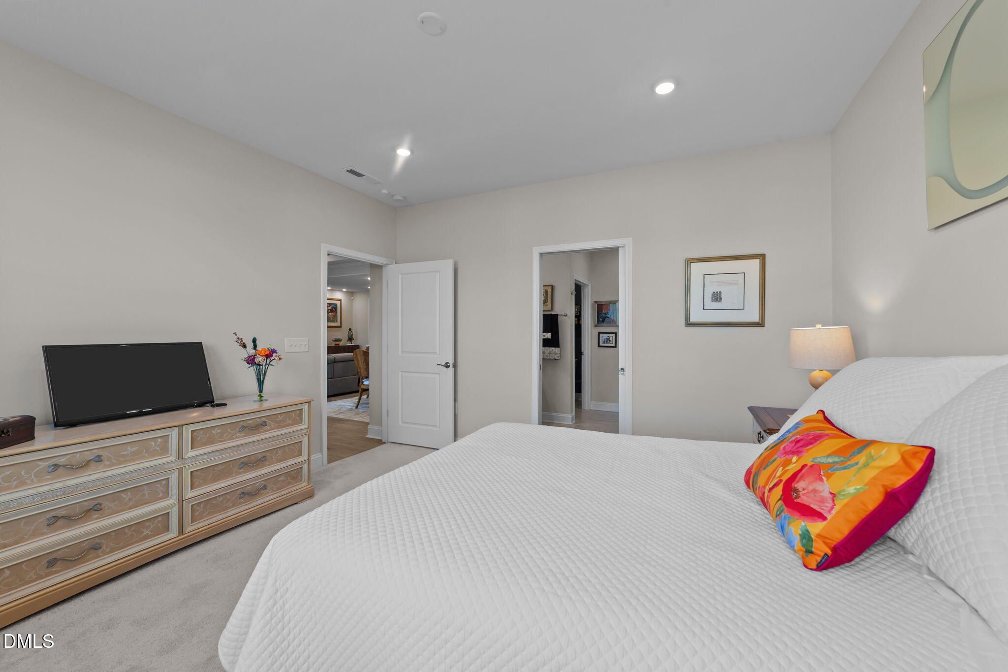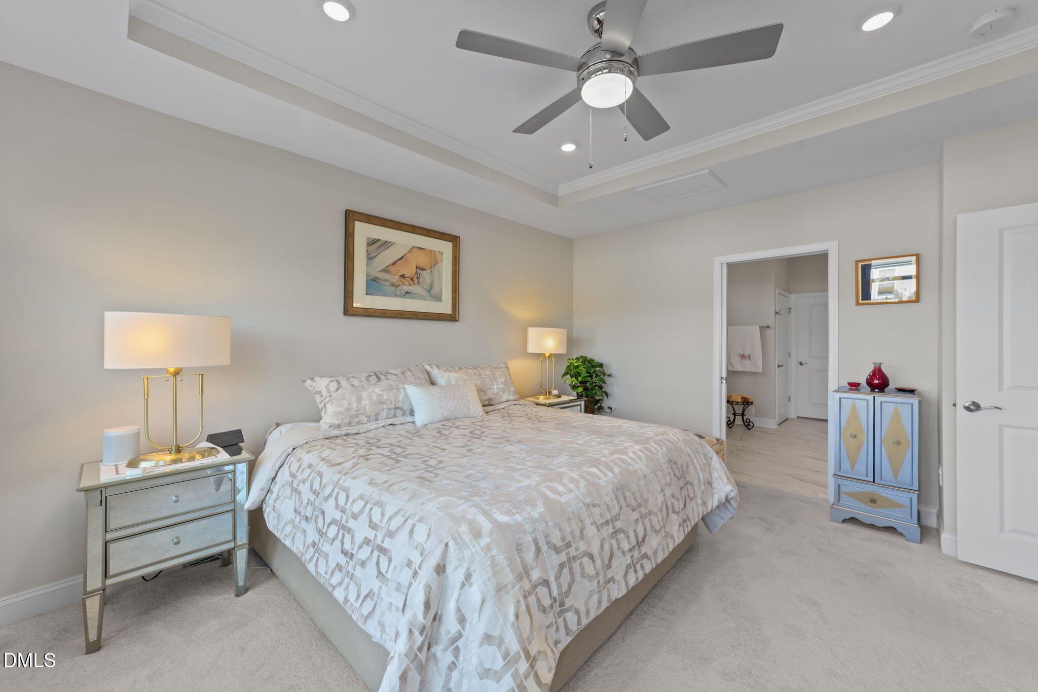 Welcome to the gentle rolling hills of Carolina Overlook, a premier 55+ community offering resort-style living year-round. This beautifully appointed 2-bed, 2.5-bath home includes a dedicated office, an open kitchen overlooking the family and dining areas, a spacious laundry room, and a convenient drop zone off the garage. More than $100,000 in builder upgrades were added during construction, including luxury vinyl plank flooring,upgraded tile in primary bath, quartz countertops, a premium KitchenAid appliance package, under-cabinet lighting, a designer backsplash, upgraded owner's closet shelving, additional recessed lighting, a screened porch, an extended patio, and expanded garage storage. The sellers have further enhanced the home with custom interior paint, designer ceiling fans in the primary suite and living area, upgraded pendant lighting in the kitchen, accent lighting for artwork, added cabinetry and a freestanding sink in the laundry room, epoxy flooring in the screened porch, a bidet toilet in the primary bath and bidet seat in the guest bath, grab bars in both bathrooms, custom lighting in the entry hall, custom blinds in primary and living area, an EV charging outlet in the garage, and a full alarm system. Carolina Overlook is one of Del Webb's most impressive communities, offering an indoor and outdoor pool, hot tub, gym, game rooms, walking trails, and a wide variety of classes and activities. The location is ideal--close to shopping, dining, and just a short drive to downtown Raleigh for entertainment and cultural events. This home is a standout opportunity you won't want to miss and don't to click on the video!