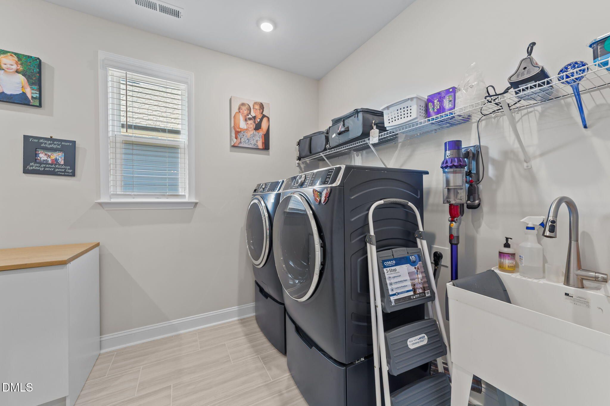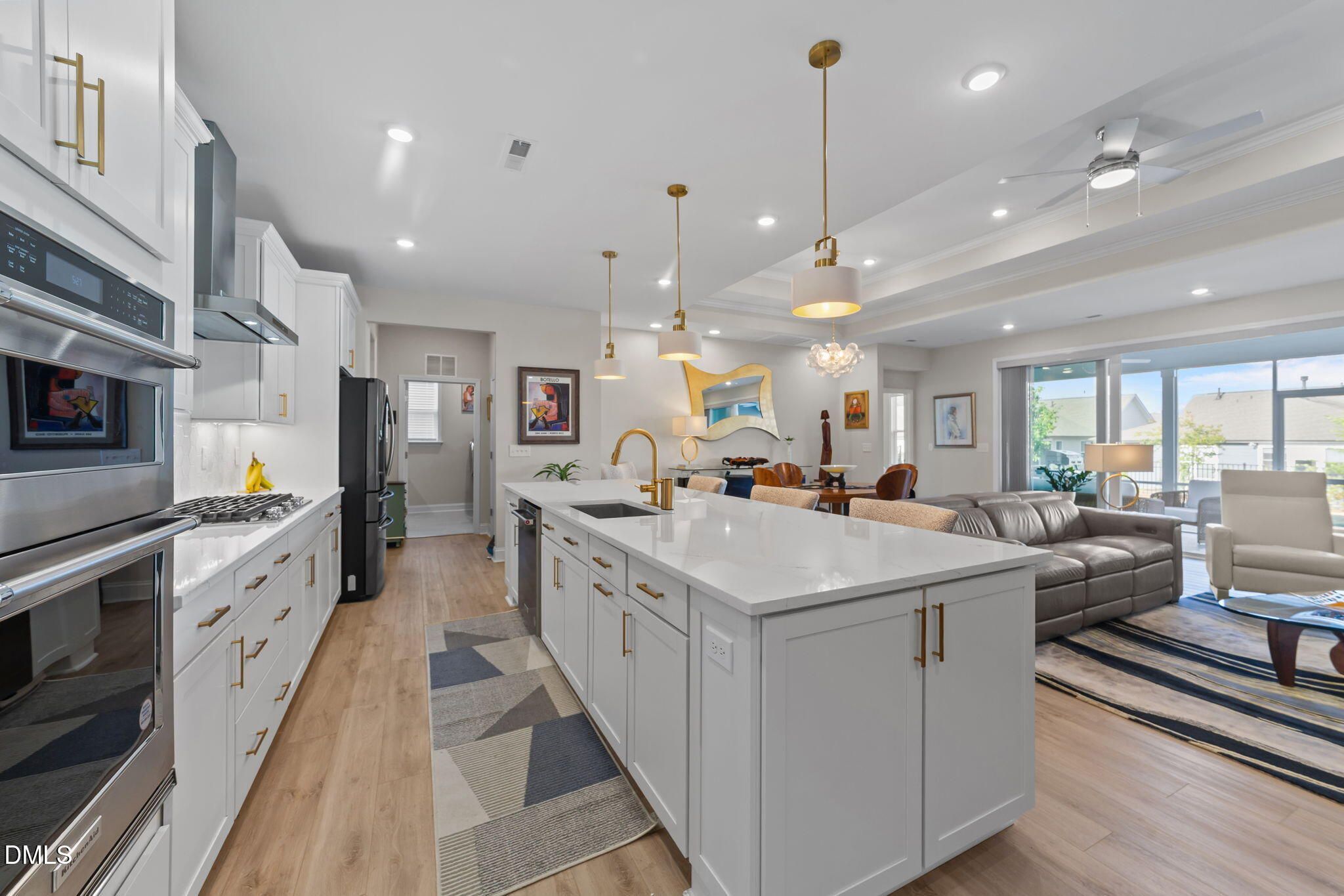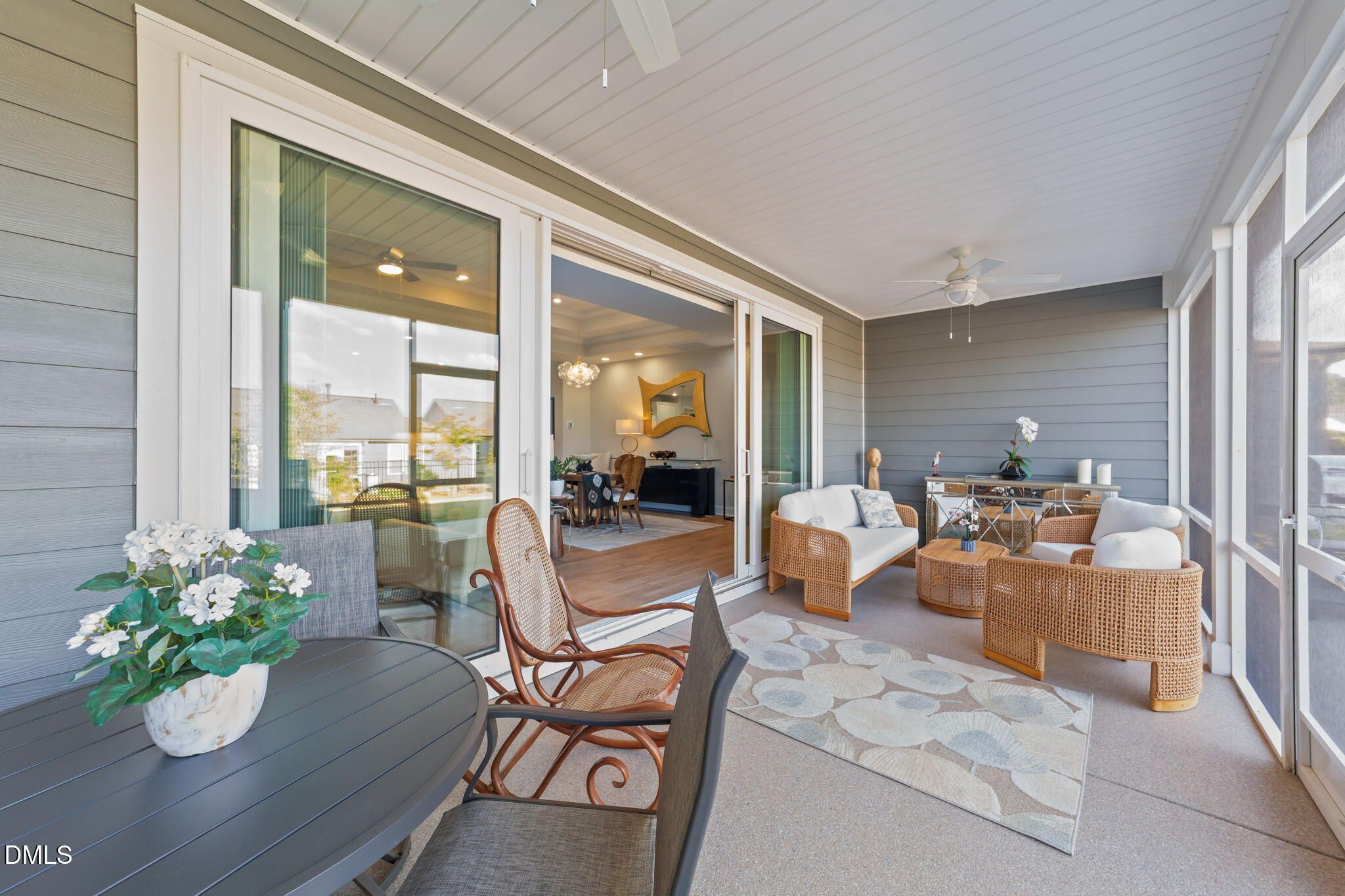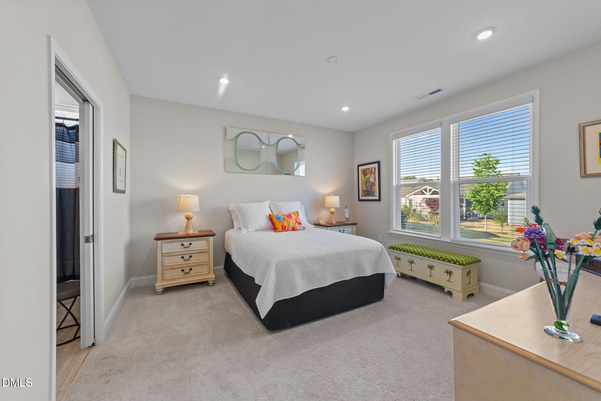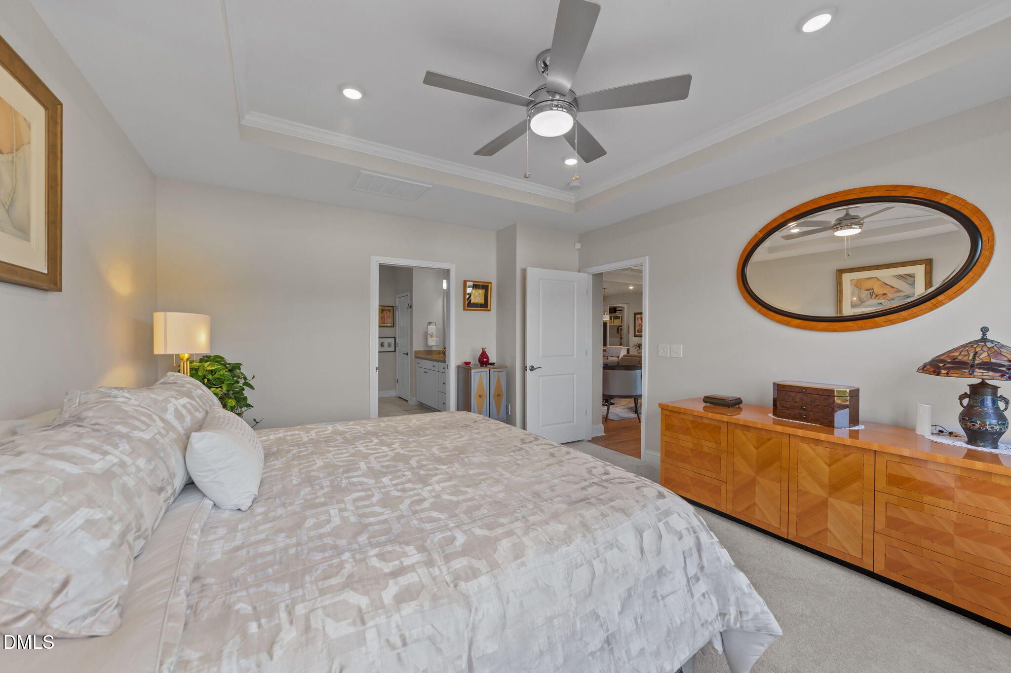 Welcome to the gentle rolling hills of Carolina Overlook, a premier 55+ community offering resort-style living year-round. This beautifully appointed 2-bed, 2.5-bath home includes a dedicated office, an open kitchen overlooking the family and dining areas, a spacious laundry room, and a convenient drop zone off the garage. More than $100,000 in builder upgrades were added during construction, including luxury vinyl plank flooring,upgraded tile in primary bath, quartz countertops, a premium KitchenAid appliance package, under-cabinet lighting, a designer backsplash, upgraded owner's closet shelving, additional recessed lighting, a screened porch, an extended patio, and expanded garage storage. The sellers have further enhanced the home with custom interior paint, designer ceiling fans in the primary suite and living area, upgraded pendant lighting in the kitchen, accent lighting for artwork, added cabinetry and a freestanding sink in the laundry room, epoxy flooring in the screened porch, a bidet toilet in the primary bath and bidet seat in the guest bath, grab bars in both bathrooms, custom lighting in the entry hall, custom blinds in primary and living area, an EV charging outlet in the garage, and a full alarm system. Carolina Overlook is one of Del Webb's most impressive communities, offering an indoor and outdoor pool, hot tub, gym, game rooms, walking trails, and a wide variety of classes and activities. The location is ideal--close to shopping, dining, and just a short drive to downtown Raleigh for entertainment and cultural events. This home is a standout opportunity you won't want to miss and don't to click on the video!