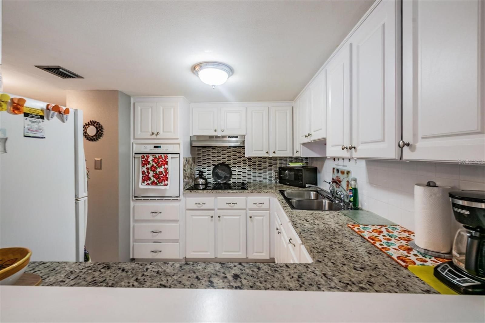 Pride of ownership shines throughout this beautifully maintained 2nd-floor condo, used only as a vacation home and offered completely furnished for a true turnkey experience. Move right in and enjoy a home that has been thoughtfully updated and cared for over the years. This inviting unit features newer double-pane windows that keep the interior quiet and comfortable, elegant plantation shutters, and newer vinyl flooring. The kitchen boasts granite countertops, a charming tropical tile backsplash, and a convenient pass-through window that opens to the dining area, creating an airy, open feel. The spacious bedroom offers generous closet and storage space along with a light-filled bonus room—perfect as an office, hobby area, or cozy reading nook. A beautifully maintained Murphy bed provides an excellent sleeping option for visiting guests. The water heater and A/C are approximately from 2017, with the A/C serviced regularly, and the building received a new roof back in 2021. Located in the desirable On Top of the World community, residents enjoy a central Clearwater location and an abundance of social events, amenities, and activities. This unit is just a short stroll to the clubhouse, pool, and many community gatherings. Convenient bus stops throughout the neighborhood make local shopping and errands effortless. A wonderful opportunity to own a fully furnished, impeccably kept home in one of the area’s most sought-after 55+ communities. Welcome home!