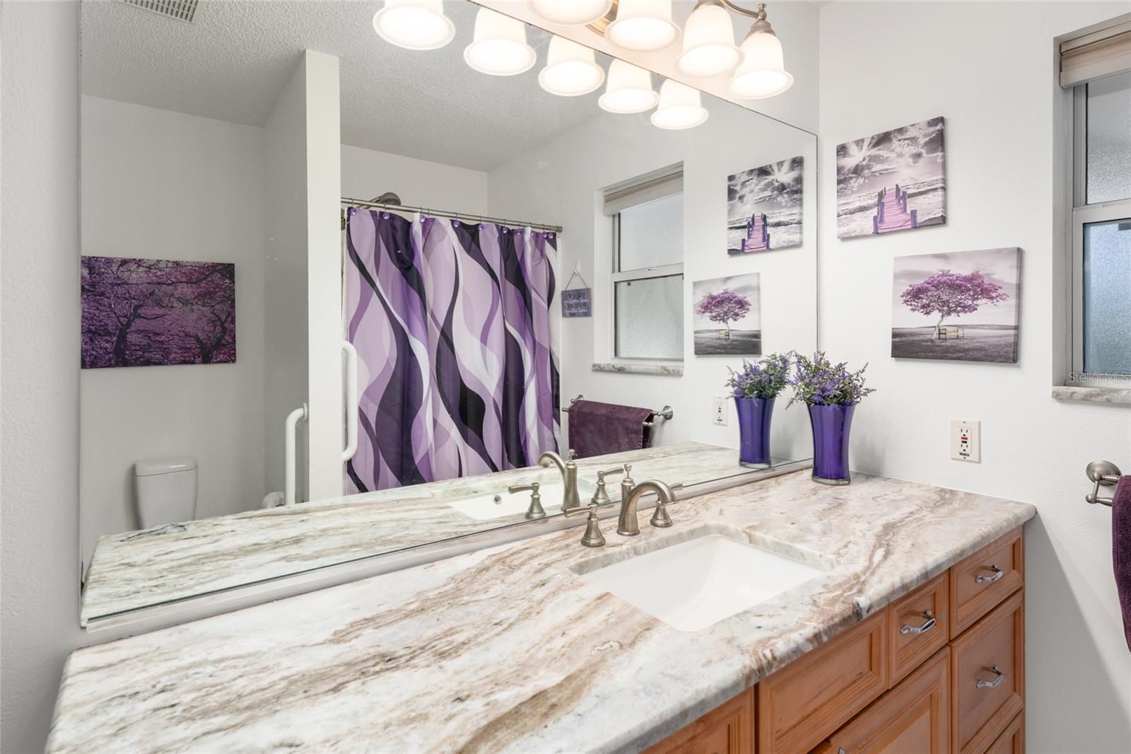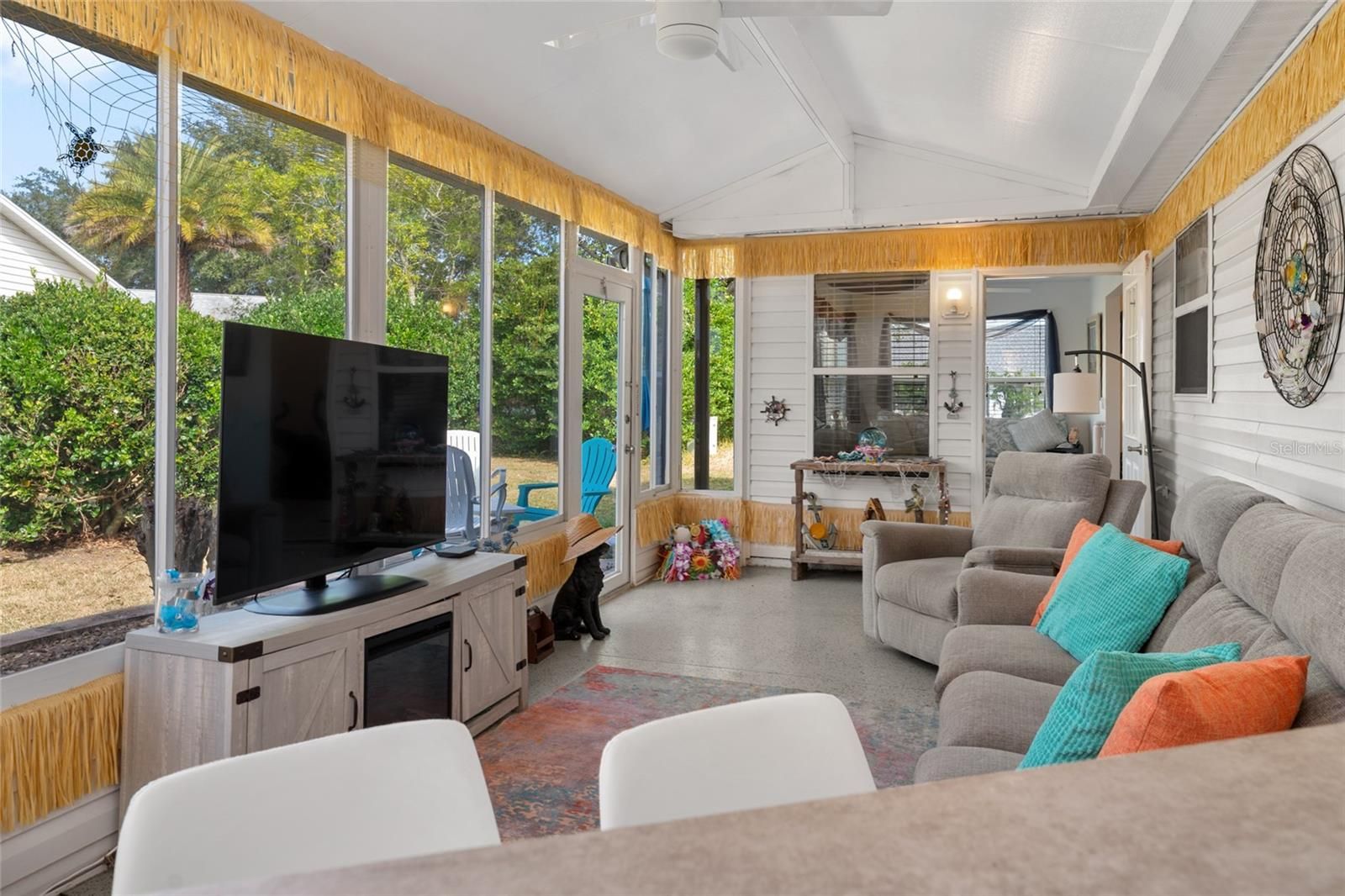 BOND PAID! • UPGRADES COMPLETED! • MOVE IN READY! • ROOM FOR A POOL! • LOWER TAXES (Sumter County)! Discover the renowned VILLAGES LIFESTYLE in this AMARILLO Ranch home w/ 3 BR/ 2 BA/ 2 Car Garage & 1,527 SF, nestled on an OVERSIZED CORNER LOT in the VILLAGE of SANTO DOMINGO. LOCATION is all about convenience - only 8-10 mins to the US Hwy 441/27 COMMERCIAL CORRIDOR for shopping, dining, entertainment, healthcare, gas, banking, and more! Just a short golf cart ride away is Glenview Country Club & Championship Golf Course, Hacienda Hills Championship Golf Course, and Savannah, El Santiago & La Hacienda Recreation Centers. Enjoy nearby SPANISH SPRINGS & LAKE SUMTER LANDING Town Squares w/ FREE nightly entertainment, plus the Sharon L Morse Performing Arts Center for unforgettable shows. Attractive CURB APPEAL starts w/ mature landscaping enhanced by concrete curbing, hardscaping & rock-filled beds, a PAINTED driveway/walkway, two sabal palms flanking the driveway & setting the Florida vibe, plus an ARCHITECTURAL SHINGLE ROOF (2015). Relax on the welcoming SCREENED FRONT PORCH w/ sunny southern exposure, then step inside through a half-lite FRONT DOOR w/ a LEADED GLASS insert. This popular OPEN CONCEPT, SPLIT BEDROOM floor plan feels bright & spacious w/ a CATHEDRAL CEILING over the main living area. Diagonal set, LUXURY VINYL TILE flooring flows throughout the home for a clean, cohesive look. The LIVING ROOM easily accommodates a large sectional sofa, and the DINING AREA is accented by a brushed-nickel chandelier. The fully remodeled KITCHEN is the focal point of the main living area w/ 42" raised panel MAPLE wood cabinets w/ crown molding, a lazy Susan, and pull outs, plus GRANITE COUNTERTOPS, SS APPLIANCES, and a single basin SS sink w/ pull down faucet. Just beyond the main LA, the bright FLORIDA ROOM showcases PANORAMIC windows w/ relaxing views of the outdoor area - an ideal space for reading, hobbies, or overflow seating when entertaining. You will also love the festively decorated, tempered GLASS ENCLOSED LANAI (Category II Sunroom, 2022) w/ a CATHEDRAL CEILING. There is also a REAR PATIO for grilling and plenty of yard space, if a SWIMMING POOL or INGROUND SPA is on your wish list. Back inside, a POCKET DOOR grants privacy to the GUEST WING (east side of home) w/ two nicely sized bedrooms (BR #3 front & BR #2 back). BATH #2 offers a TUB/SHOWER COMBO, single sink/granite topped vanity, and a comfort height toilet, plus an extra linen closet in the bath & an additional hall linen closet. The PRIMARY SUITE (west side of home) is a private retreat w/ a large WALK-IN CLOSET and an ENSUITE BATH featuring a single sink/matching granite topped vanity, walk-in shower w/ handheld head & built-in seat, & a comfort height toilet. Practical upgrades include an INDOOR LAUNDRY ROOM w/ washer & dryer, an ADDED PANTRY w/ pull-out shelves, and a 2-CAR GARAGE w/ an insulated garage door & pull down attic stairs. Add’l perks include: HVAC (2023) w/ a 10-YEAR parts & labor extended warranty, HWH (2023), interior paint (2021), newer light fixtures & ceiling fans, NOVA water-treatment system, whole house surge protector, and Massey termite bond. Furniture is negotiable and available separately. So what are you waiting for? Start experiencing all the VILLAGES LIFESTYLE has to offer including a plethora of recreational facilities & activities, year round complimentary executive golf & 3,000+ social clubs! Call TODAY for your private showing!