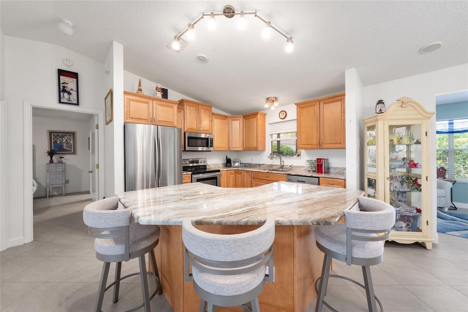 - Cathedral Ceiling(s), Ceiling Fan(s), Eat-in Kitchen, Living/Dining Room, Open Floorplan, Solid-Wood Cabinets, Split Bedrooms, Stone Counters, Thermostat, Walk-In Closet(s)