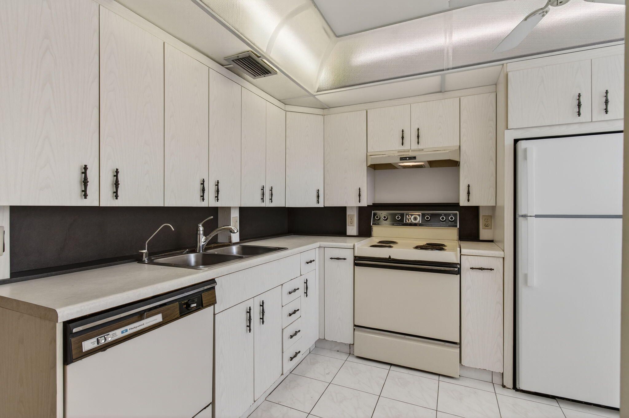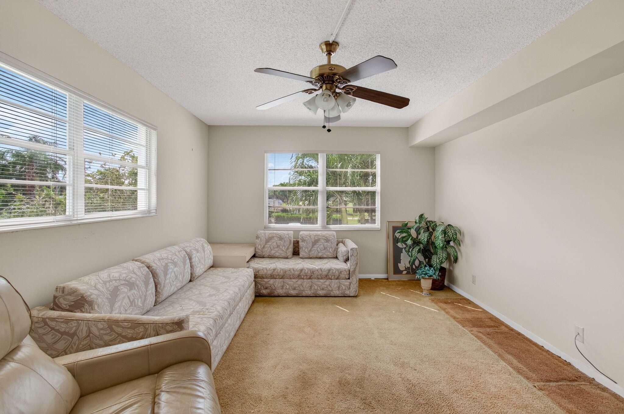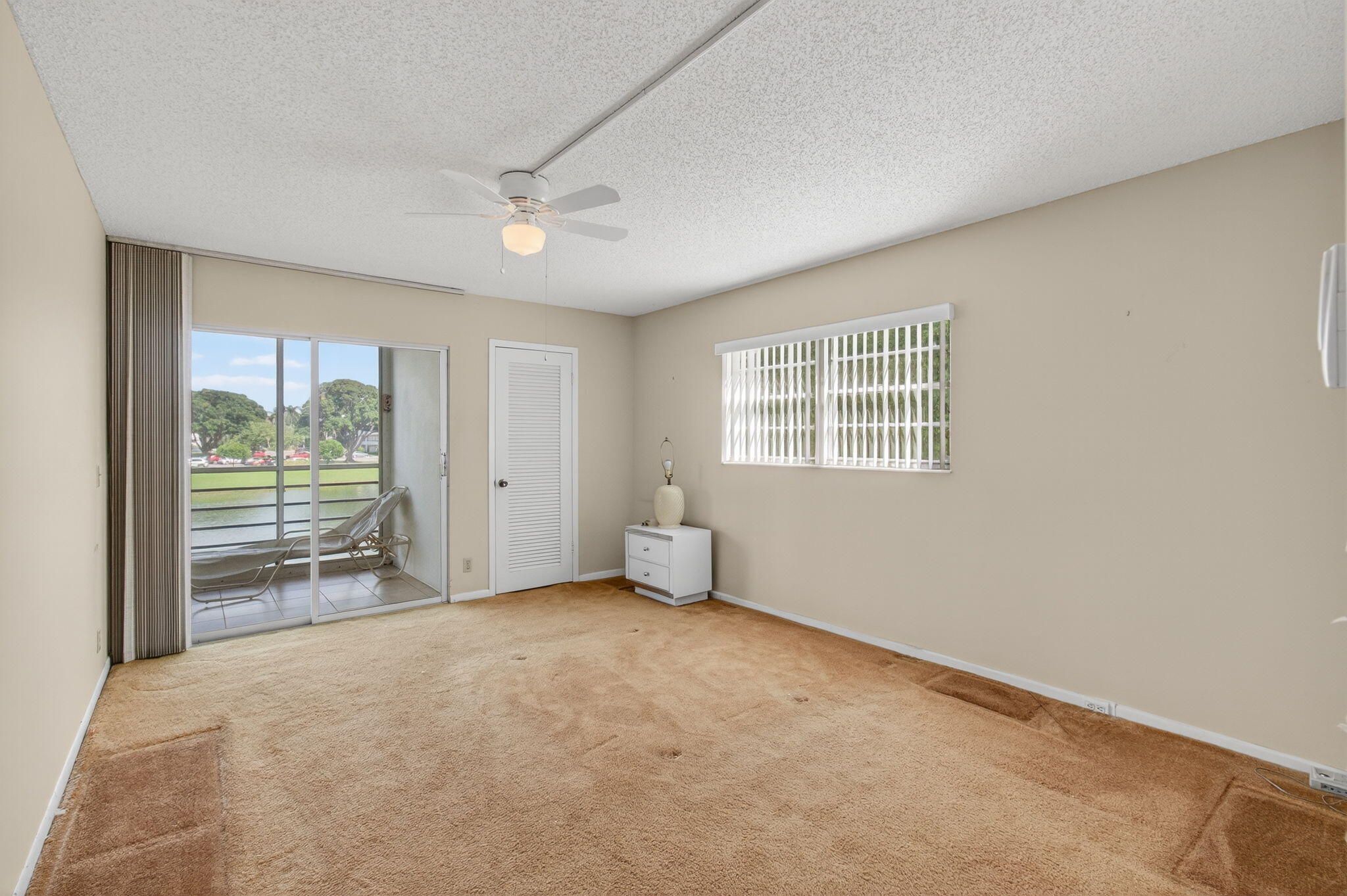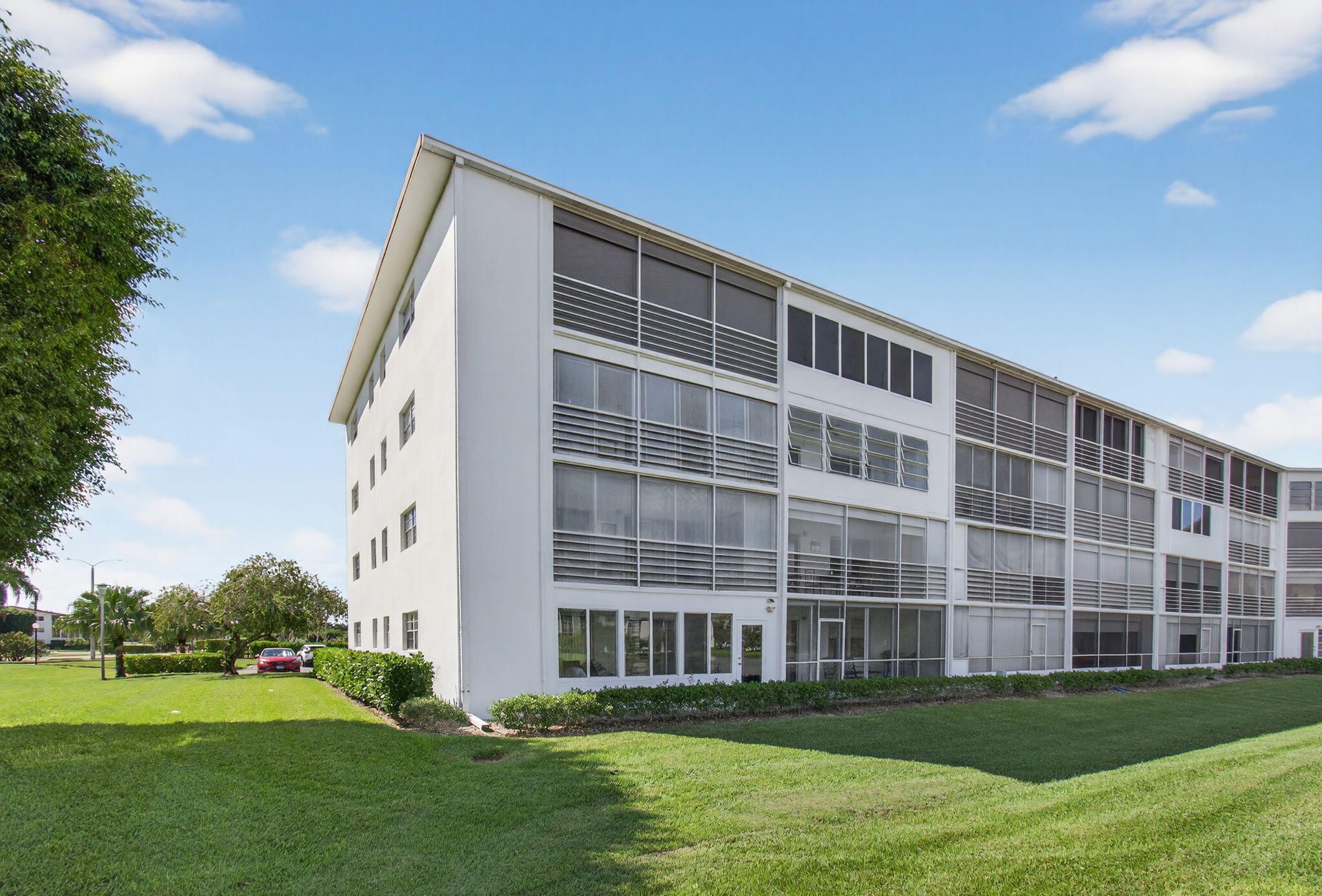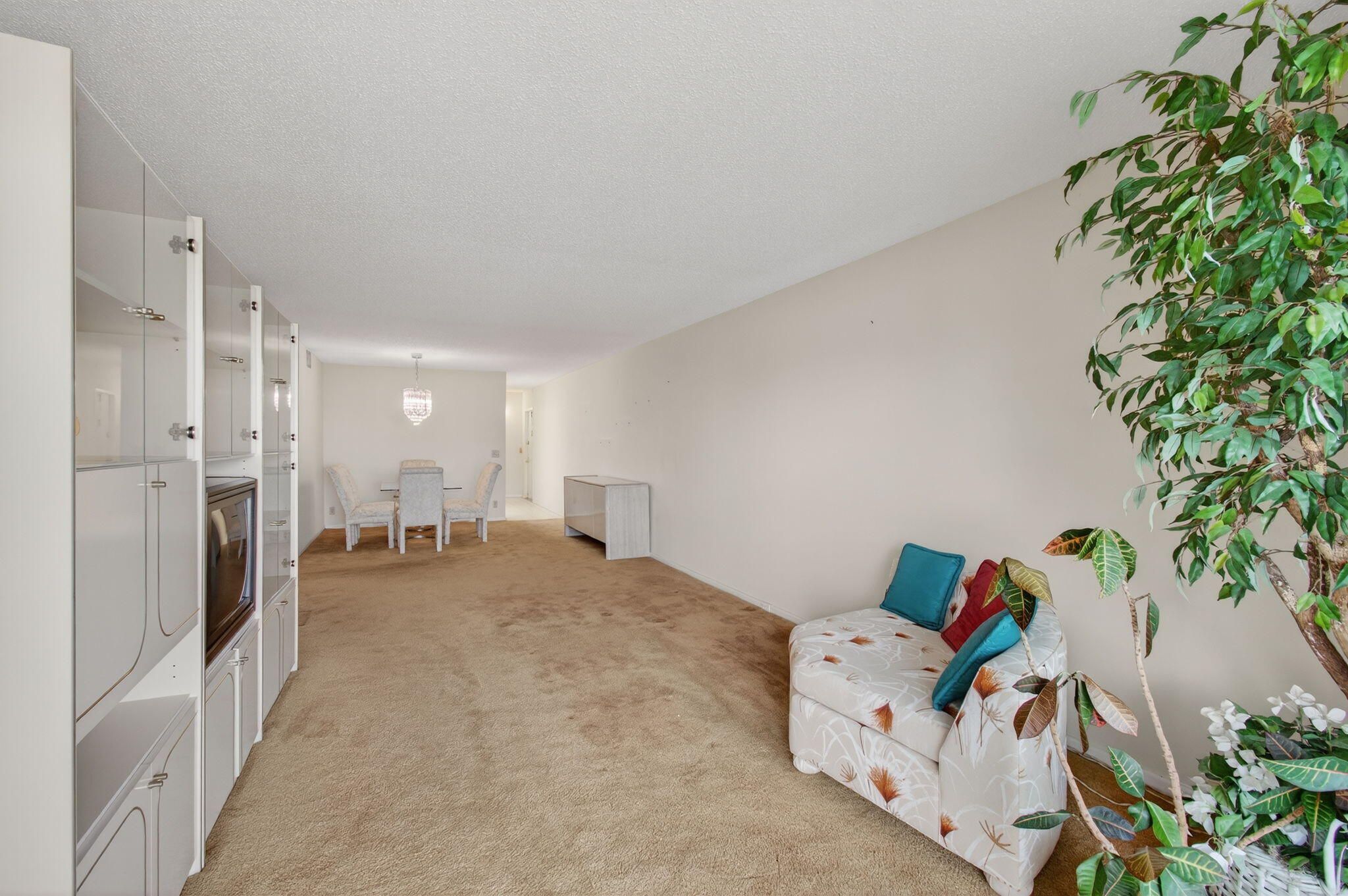 CENTURY VILLAGE--SUPER ACTIVE ADULT COMMUNITY, (55+). Immerse yourself in the brilliance and bounty of this corner condominium located at 2001 Guildford A, Boca Raton, FL. This luminous unit infuses a sense of openness and ample comfort with its cheerful, airy ambiance. You'll be able to venture into this property to find a generous kitchen, characterized by large windows that bathe the area in an inviting glow. The kitchen is designed for functionality, with dual sinks for meal prep and abundant storage space in numerous cabinets. An eat-in space provides a perfect place for casual meals or enjoying coffee as sunshine pours through the window. A soft carpet underfoot leads you to the expansive living room and dining room. Feel the rejuvenation in these spaces filled with natural light and comfortable settings. A private entrance opens up to a welcoming patio, connecting the indoors with the fresh outdoor air and sunlight. The master bedroom, notable for its size, features a capacious walk-in closet with built-in storage, facilitating an organized lifestyle. Access to the patio from this room offers a tranquil spot to unwind. A large window in the master bathroom provides daylight. A combination of a tub and shower gives options for rest and rejuvenation. Furthermore, a guest bedroom with dual windows ensures plentiful natural light for visitors. A deep, built-in closet provides substantial storage for their convenience. The guest bathroom is equally well-equipped, with a large window and a step-down shower. The screening and Plexiglass in the patio provide an unobstructed view of the outside, with a mesmerizing lake view, while ensuring privacy and an additional storage location. Whether intent on enjoying your morning coffee, savoring an evening drink, or hosting special events and holidays, this space harmoniously melds utility with joviality. Experience the seamless blend of comfort, functionality, and design - carefully balanced to make this property a haven of contemporary living. 2026 MONTHLY HOA--GUILFORD SECTION-$588.50 PER MONTH MONTHLY HOA--CEN-WEST-$312.57 PER MONTH Internet, basic cable, and water are included in the HOA. HWH-2023.
