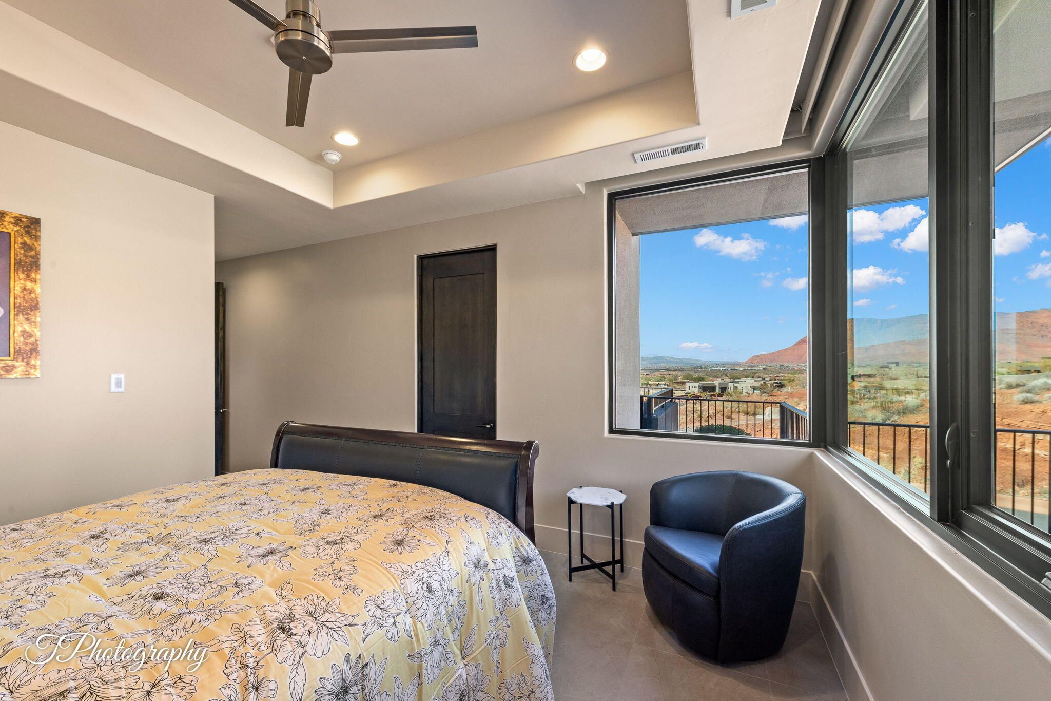 Home for sale in Entrada. Exquisite, 3bed +office, like-new single-level custom home elevated capturing breathtaking panoramic views of red mountains, golf course, & horizon. Nearly every room positioned to frame the view. High-end design, seamlessly blends luxury w/ cutting-edge technology & premium upgrades: professional kitchen w/ Wolf, Sub-Zero, & Miele appliances, quartzite countertops, custom cabinetry, & spacious butler's pantry. Experience seamless indoor-outdoor living with covered patios, 6 fireplaces, infrared heating, & spa room featuring fully retractable glass walls designed to showcase the reason you want to live in Entrada, the VIEW. Smart home automation ensures effortless lock-and-leave living. Shown by appointment only. Entrada Club Assoc membership required $220/mo Built for performance and comfort, the home features 6" exterior concrete, kiln-dried Douglas fir framing, full roofline spray-foam insulation, insulated interior walls, and thermal-block tinted windows for exceptional efficiency, quiet, and security. The 4-car, climate-controlled garage makes this a truly exceptional move-up opportunity within Entrada. All on one level, no stairs, and every detail of this home is totally custom. HOA= $163/mo. Associates membership required, at $220/mo. Plus, each home has an $800/year food minimum, which can be enjoyed at the restaurant.