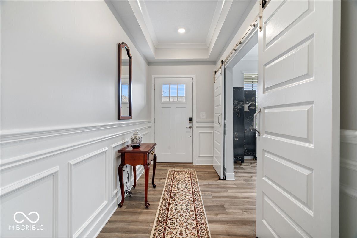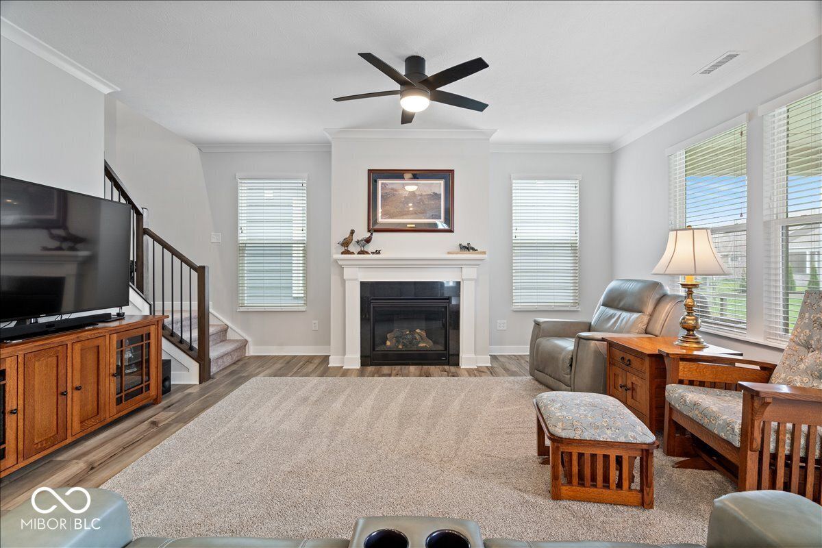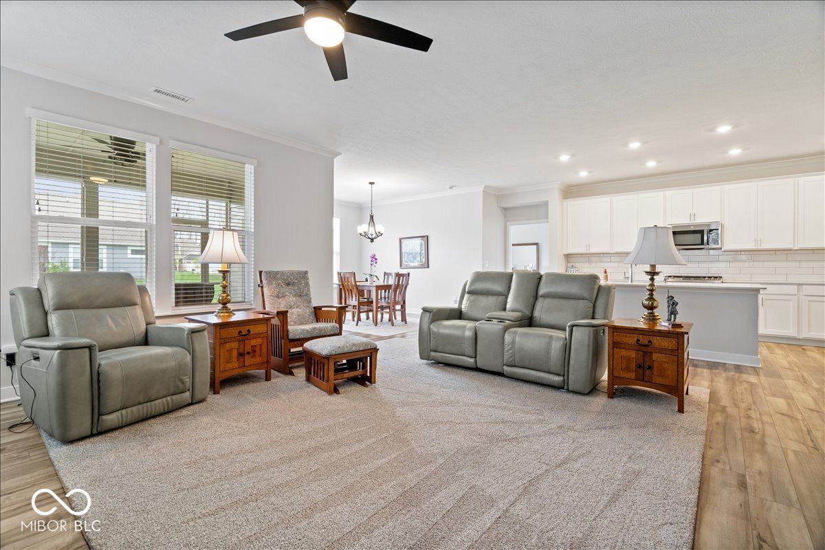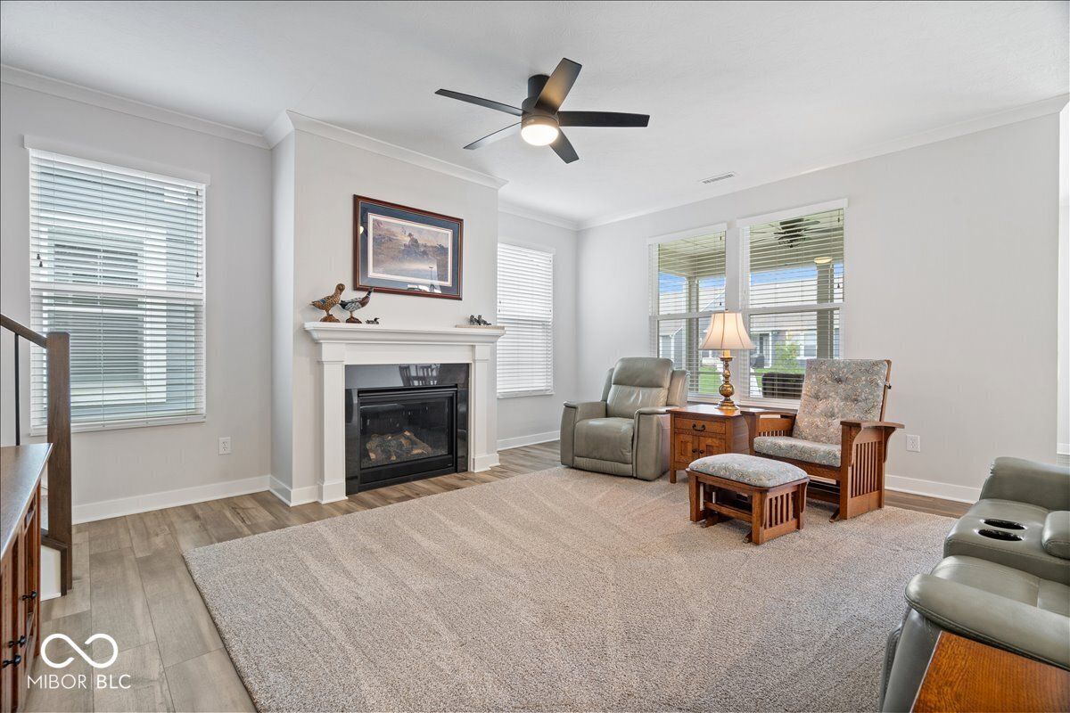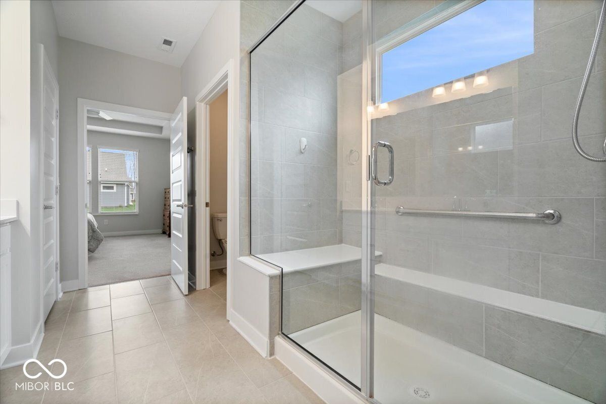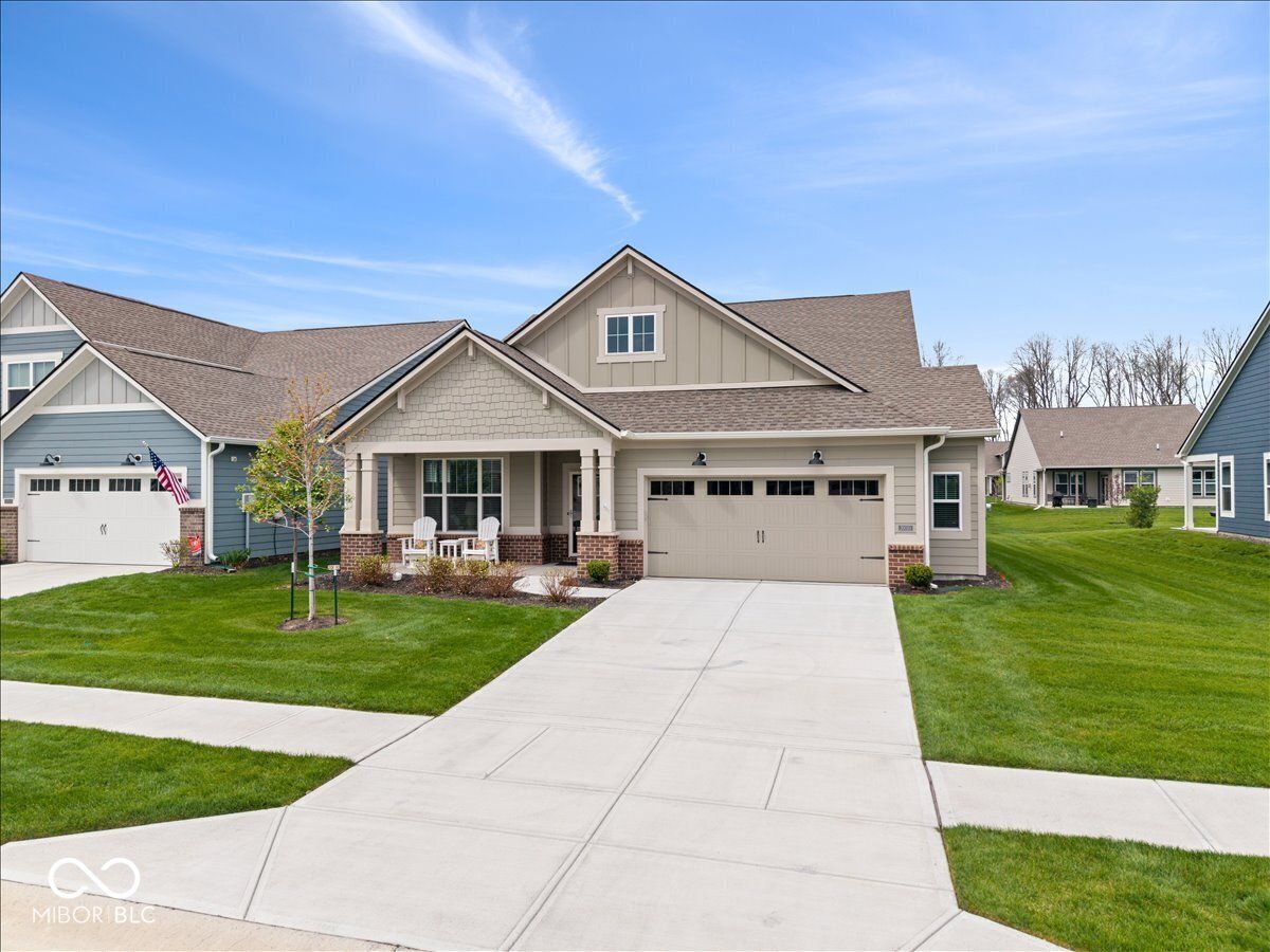 Experience refined living in this exceptional 3-bedroom, 3-full-bath home, showcasing the highly sought-after Shafer C floor plan by Lennar, built in 2023. Thoughtfully designed with elegance and functionality in mind, this home offers a spacious open-concept, split floor plan layout, with the primary suite on the main level, a private office, a guest bedroom with full bath. The sophisticated entry is highlighted by a tray ceiling and custom wainscoting. Sliding barn doors introduce the main-level office, where a transom window fills the space with natural light-ideal for remote work or creative pursuits. Crown molding throughout the main level enhances the home's polished aesthetic, while generous storage and closet spaces add everyday convenience. Primary suite is a private retreat featuring a tray ceiling, an expansive walk-in closet customized by Closets by Design, double comfort-height vanity, and a spa-inspired walk-in shower complete with grab bars and a built-in seat. Thoughtfully designed laundry room offers dual access from the primary closet and hallway. Off the kitchen, a beautifully appointed screened-in porch invites indoor-outdoor living accessible by a new Pella sliding door with built-in blinds. The upper level offers a versatile loft, additional bedroom, and a full bath-ideal for hosting guests or creating a private secondary living space. The garage includes a 4-foot bump-out with a window, providing enhanced storage or workshop potential. Residents enjoy resort-style living within this premier 55+ community, featuring two clubhouses, including the impressive 9,000-square-foot main clubhouse, The Retreat. Amenities include lap and leisure pools, two fitness centers, pickleball and tennis courts, bocce ball, gaming areas, firepits, scenic ponds, and walking trails, along with a vibrant calendar of social events! Lawn care, mulching, and snow removal are included for maintenance-free living, while the irrigated yard ensures effortless upkeep!