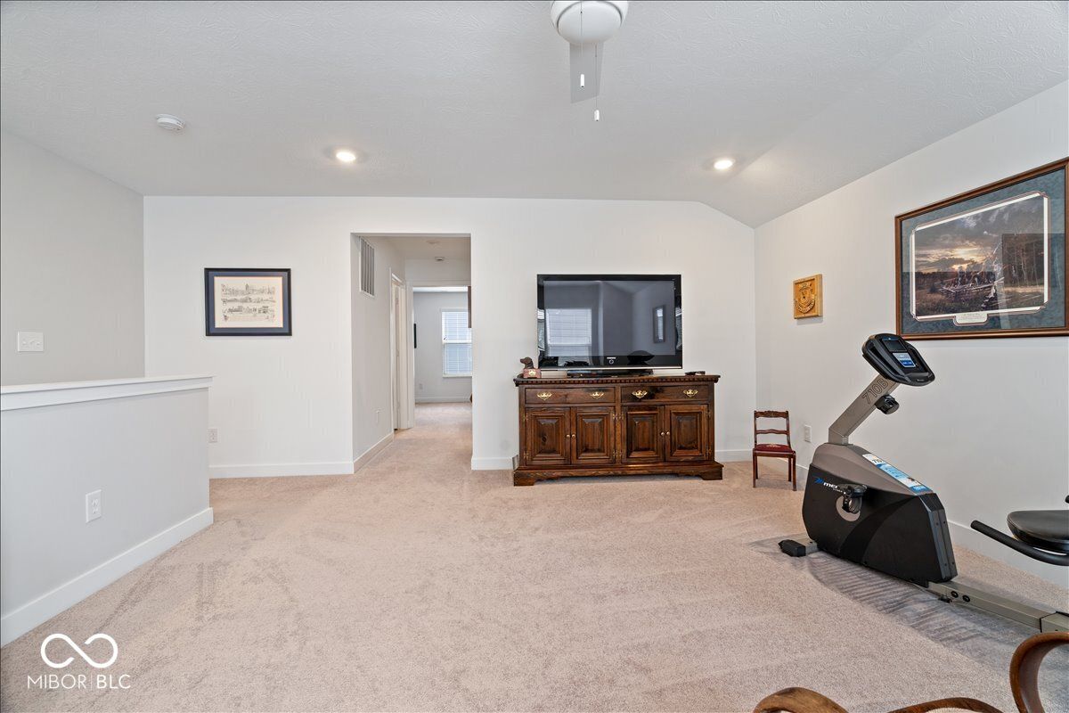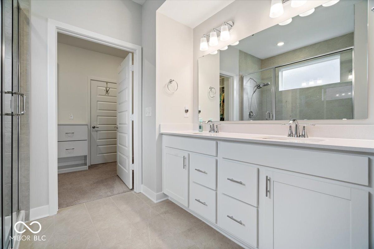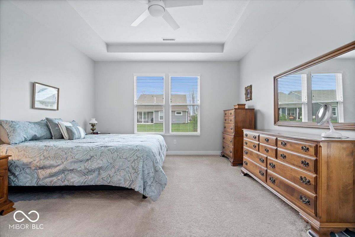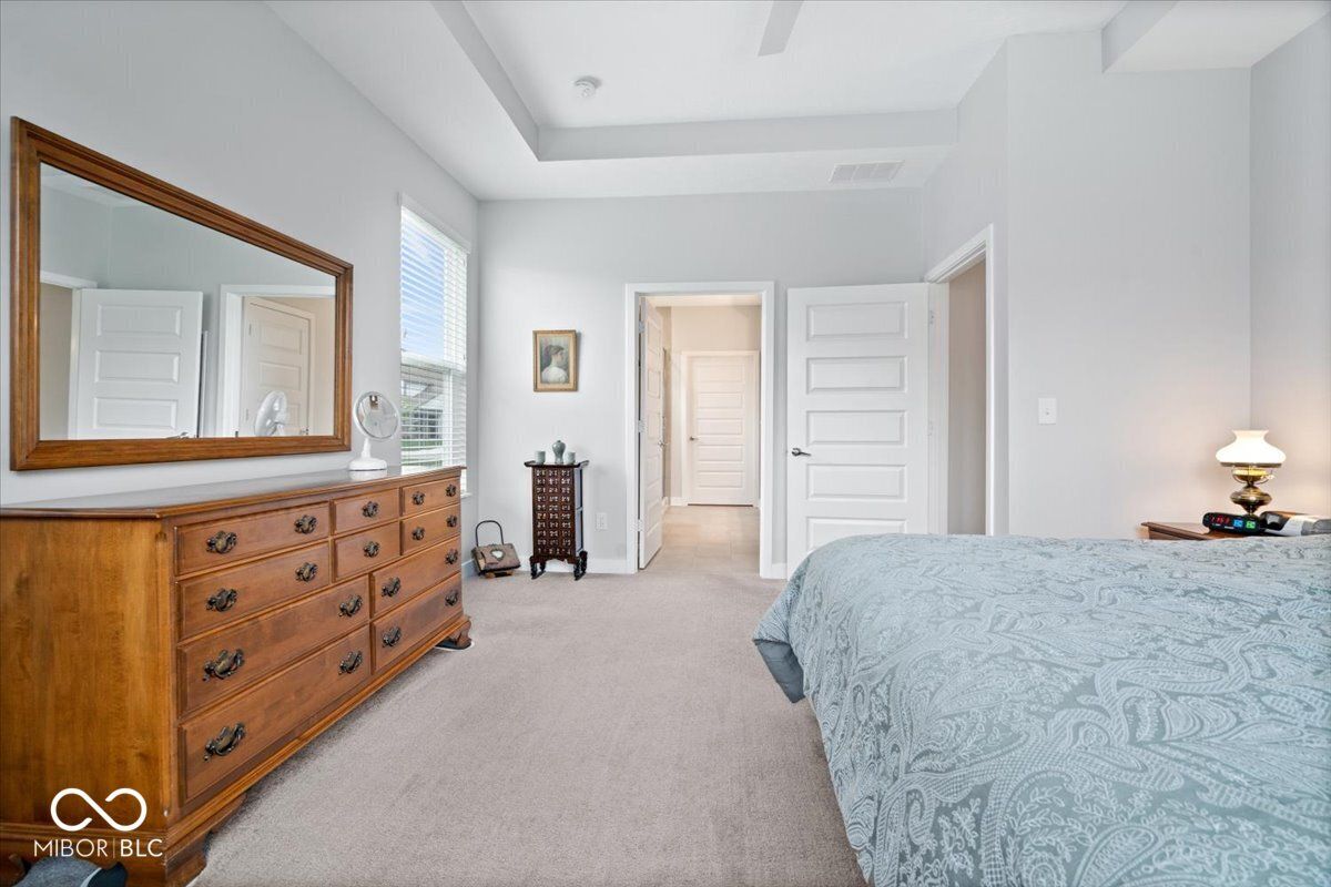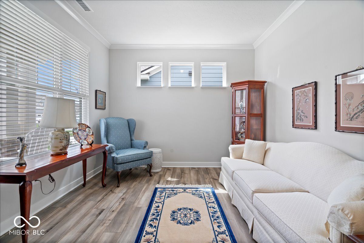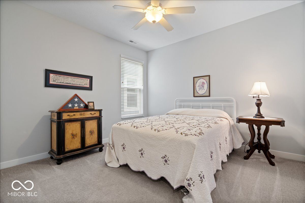 Experience refined living in this exceptional 3-bedroom, 3-full-bath home, showcasing the highly sought-after Shafer C floor plan by Lennar, built in 2023. Thoughtfully designed with elegance and functionality in mind, this home offers a spacious open-concept, split floor plan layout, with the primary suite on the main level, a private office, a guest bedroom with full bath. The sophisticated entry is highlighted by a tray ceiling and custom wainscoting. Sliding barn doors introduce the main-level office, where a transom window fills the space with natural light-ideal for remote work or creative pursuits. Crown molding throughout the main level enhances the home's polished aesthetic, while generous storage and closet spaces add everyday convenience. Primary suite is a private retreat featuring a tray ceiling, an expansive walk-in closet customized by Closets by Design, double comfort-height vanity, and a spa-inspired walk-in shower complete with grab bars and a built-in seat. Thoughtfully designed laundry room offers dual access from the primary closet and hallway. Off the kitchen, a beautifully appointed screened-in porch invites indoor-outdoor living accessible by a new Pella sliding door with built-in blinds. The upper level offers a versatile loft, additional bedroom, and a full bath-ideal for hosting guests or creating a private secondary living space. The garage includes a 4-foot bump-out with a window, providing enhanced storage or workshop potential. Residents enjoy resort-style living within this premier 55+ community, featuring two clubhouses, including the impressive 9,000-square-foot main clubhouse, The Retreat. Amenities include lap and leisure pools, two fitness centers, pickleball and tennis courts, bocce ball, gaming areas, firepits, scenic ponds, and walking trails, along with a vibrant calendar of social events! Lawn care, mulching, and snow removal are included for maintenance-free living, while the irrigated yard ensures effortless upkeep!