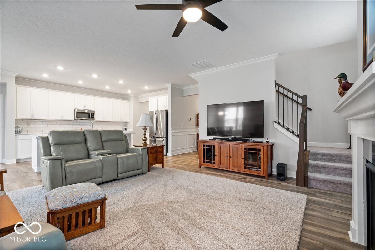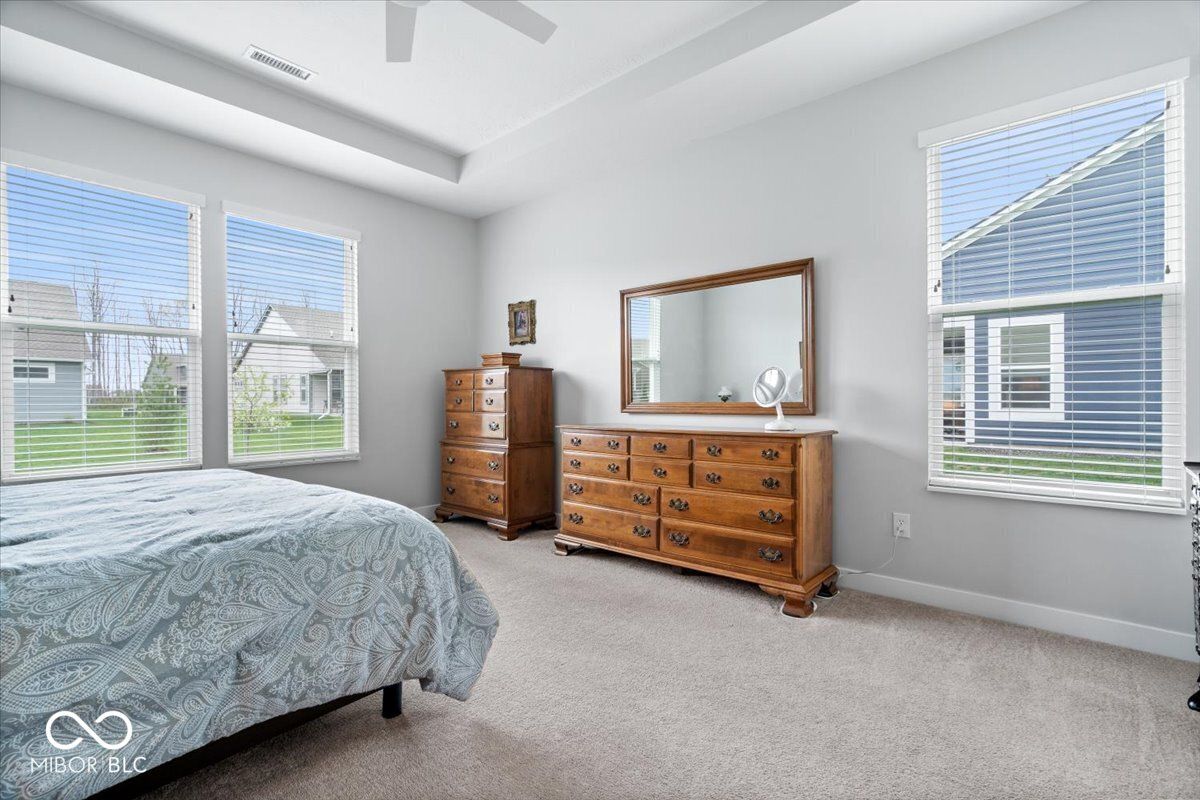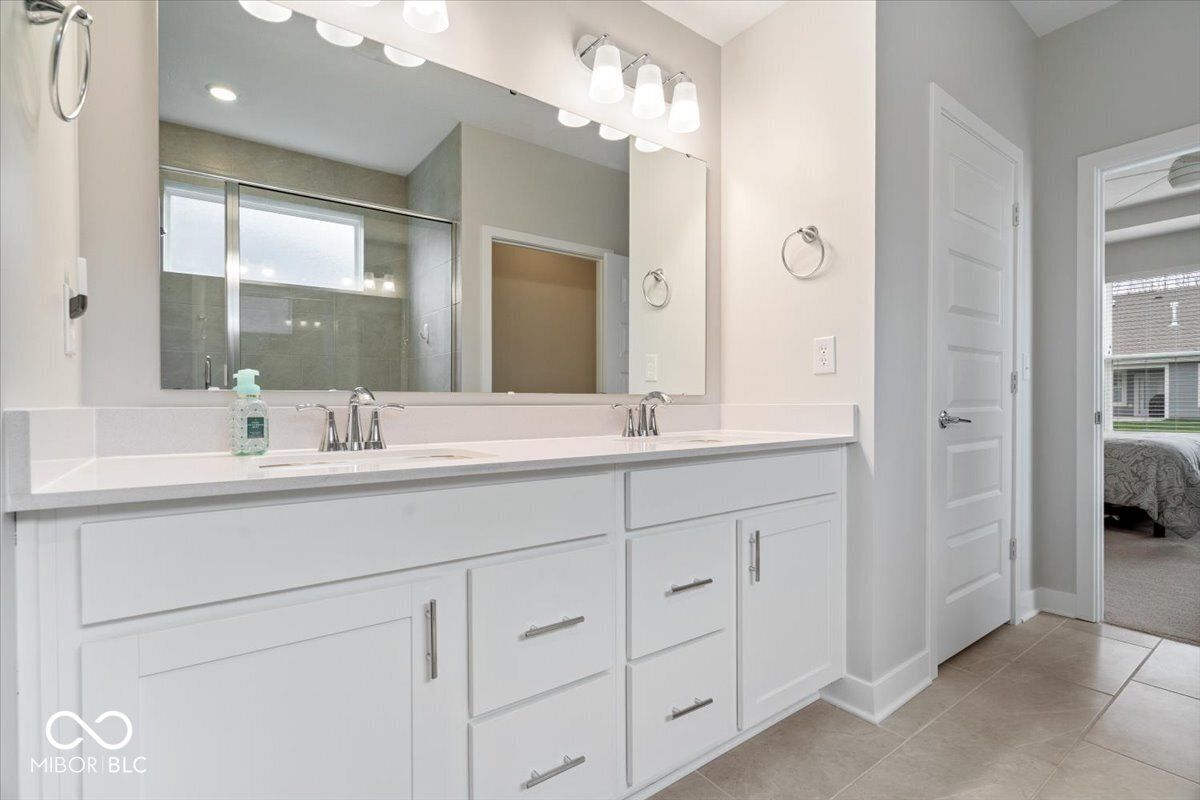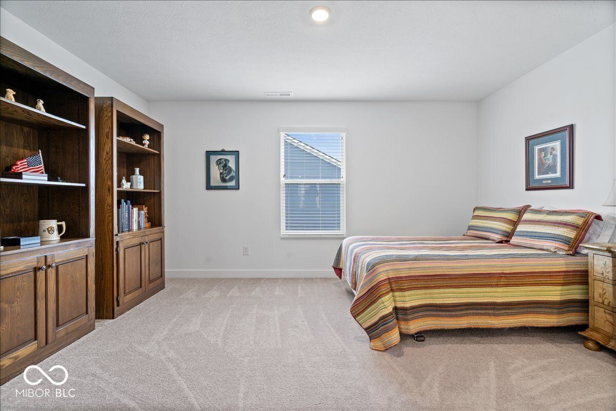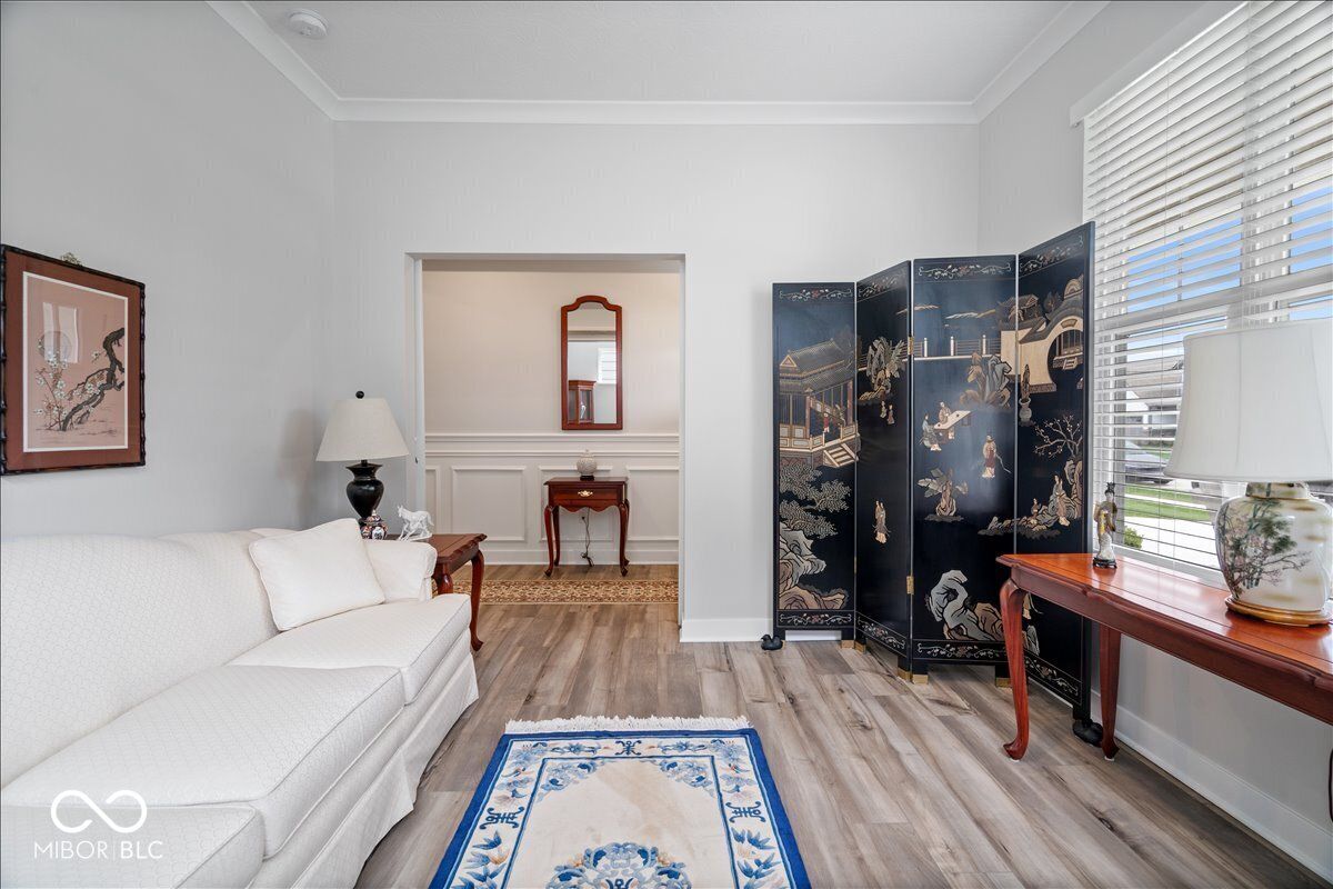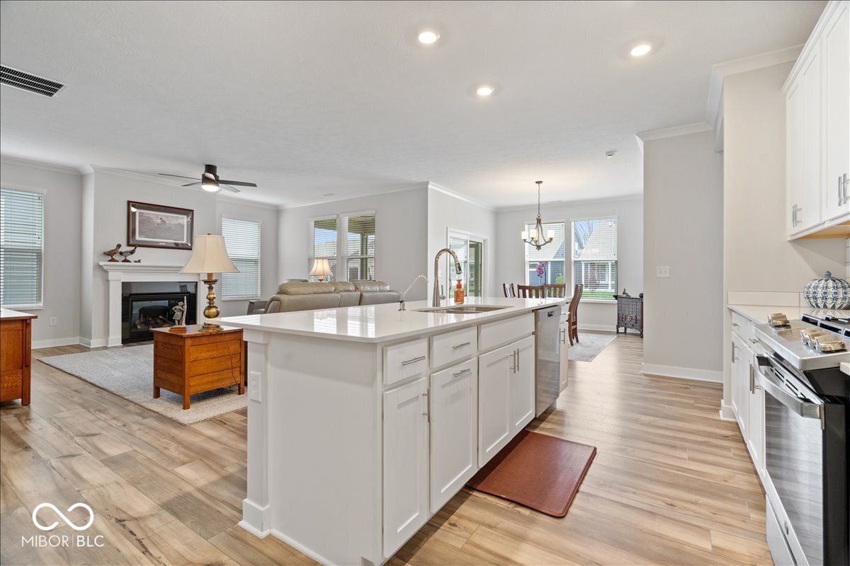 Experience refined living in this exceptional 3-bedroom, 3-full-bath home, showcasing the highly sought-after Shafer C floor plan by Lennar, built in 2023. Thoughtfully designed with elegance and functionality in mind, this home offers a spacious open-concept, split floor plan layout, with the primary suite on the main level, a private office, a guest bedroom with full bath. The sophisticated entry is highlighted by a tray ceiling and custom wainscoting. Sliding barn doors introduce the main-level office, where a transom window fills the space with natural light-ideal for remote work or creative pursuits. Crown molding throughout the main level enhances the home's polished aesthetic, while generous storage and closet spaces add everyday convenience. Primary suite is a private retreat featuring a tray ceiling, an expansive walk-in closet customized by Closets by Design, double comfort-height vanity, and a spa-inspired walk-in shower complete with grab bars and a built-in seat. Thoughtfully designed laundry room offers dual access from the primary closet and hallway. Off the kitchen, a beautifully appointed screened-in porch invites indoor-outdoor living accessible by a new Pella sliding door with built-in blinds. The upper level offers a versatile loft, additional bedroom, and a full bath-ideal for hosting guests or creating a private secondary living space. The garage includes a 4-foot bump-out with a window, providing enhanced storage or workshop potential. Residents enjoy resort-style living within this premier 55+ community, featuring two clubhouses, including the impressive 9,000-square-foot main clubhouse, The Retreat. Amenities include lap and leisure pools, two fitness centers, pickleball and tennis courts, bocce ball, gaming areas, firepits, scenic ponds, and walking trails, along with a vibrant calendar of social events! Lawn care, mulching, and snow removal are included for maintenance-free living, while the irrigated yard ensures effortless upkeep!