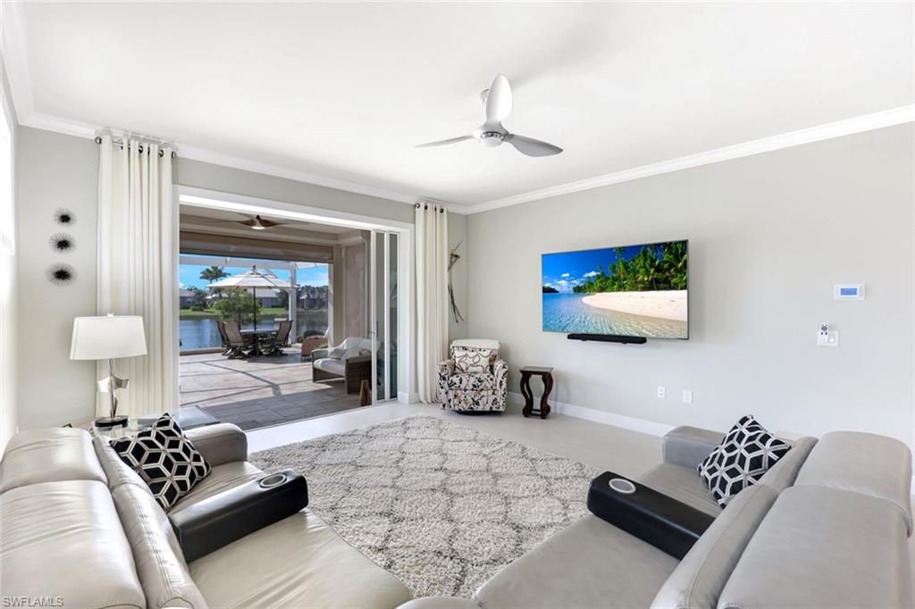Nestled in the picturesque city of Estero, this exquisite lakefront property offers a blend of luxury and functionality, perfect for those seeking a vibrant community lifestyle. Designed for entertaining and relaxation this 2 bedroom plus Den offers a 20x20 extended lanai showcasing breathtaking views of the serene lake. Culinary enthusiasts will appreciate the gourmet kitchen, equipped with stainless steel appliances, a conveniently raised dishwasher, instant hot water, a gas range, and elegant 42' cabinetry. Recent renovations have enhanced the home's functionality, adding a separate 10x12 workroom area in the garage, a pull-down ladder to access attic storage, and crown molding throughout. The property boasts custom outdoor lighting, and landscaping serviced by a drip system, ensuring year-round beauty, and electric storm screens on the lanai and accordion shutters on all windows offer added protection. ***NO CDD. *** For ultimate convenience, a generator is included, ensuring peace of mind during Florida's stormy seasons. The home is located in a prestigious gated community, where residents enjoy top-tier amenities, Activities Director, including a state-of-the-art fitness center, pickleball and tennis courts, bocce, a rejuvenating spa, a community pool, dog park, and a charming library. Ideally positioned close to pristine beaches, the property is just minutes from a variety of dining and shopping destinations, including Miromar Outlets, Hertz Arena, Gulf Coast Center, and Coconut Point Shopping areas, with the SWFL International Airport also within easy reach. This home represents combined luxury, comfort, and unrivaled convenience in a breathtaking lakeside setting.