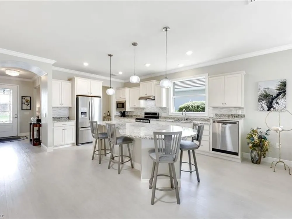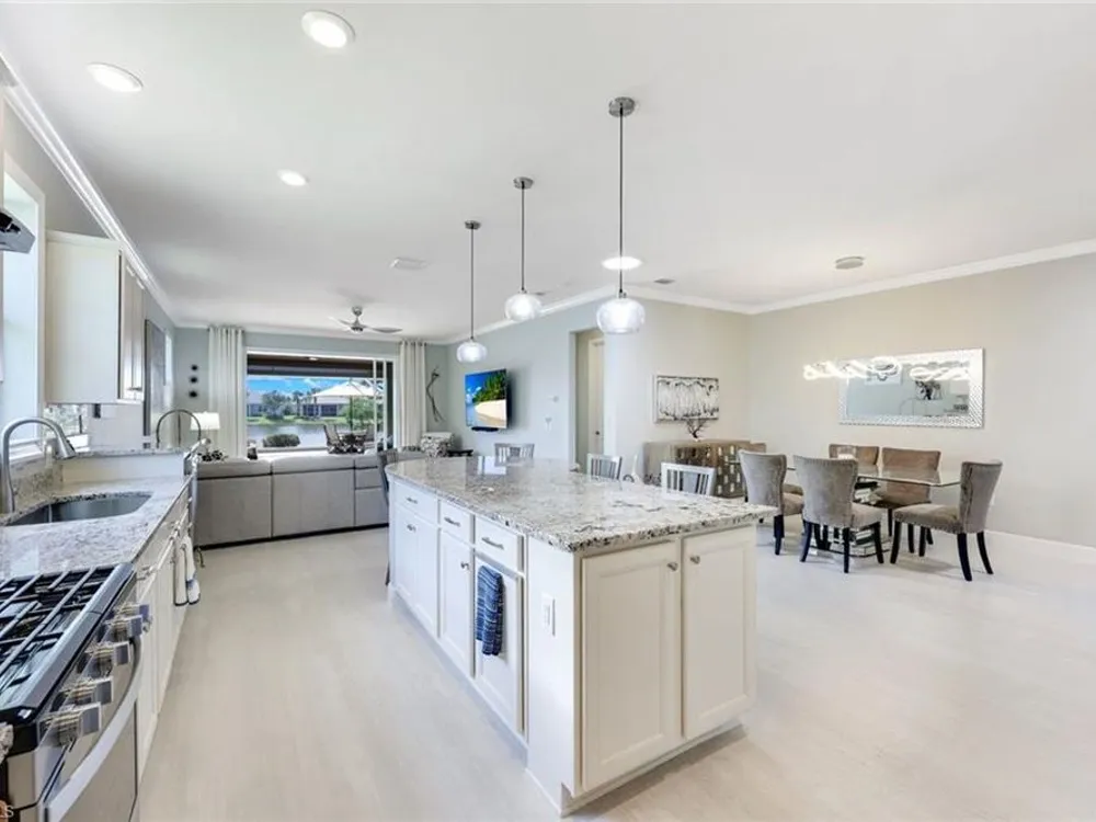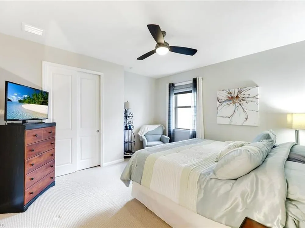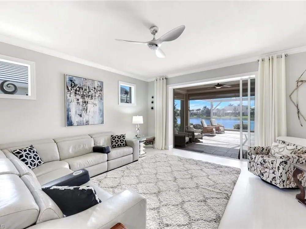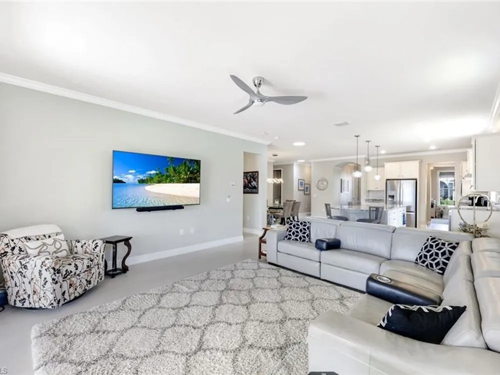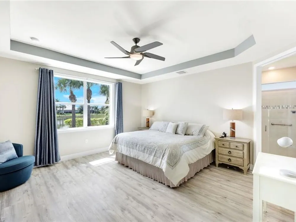 Nestled in the picturesque city of Estero, this exquisite lakefront property offers a blend of luxury and functionality, perfect for those seeking a vibrant community lifestyle. The home is located in a prestigious gated community, where residents enjoy top-tier amenities, including a state-of-the-art fitness center, pickleball and tennis courts, bocce, a rejuvenating spa, a community pool, and a charming library. Designed for entertaining and relaxation, the outdoor space features a 20x20 extended lanai and a covered patio, showcasing breathtaking views of the serene lake. Culinary enthusiasts will appreciate the gourmet kitchen, equipped with stainless steel appliances, a conveniently raised dishwasher, instant hot water, a gas range, and elegant 42' cabinetry. Recent renovations have enhanced the home's functionality, adding a separate 10x12 workroom area in the garage, a pull-down ladder to access attic storage, and crown molding throughout. The property boasts custom landscaping serviced by a drip system, ensuring year-round beauty, and electric storm screens on the lanai and accordion shutter on all windows offer added protection and No CDD. For ultimate convenience, a generator is included, ensuring peace of mind during Florida's stormy seasons. Ideally positioned close to pristine beaches, the property is just minutes from a variety of dining and shopping destinations, including Miromar Outlets, Hertz Arena, Gulf Coast Center, and Coconut Point Shopping areas, with the SWFL International Airport also within easy reach. This home represents combined luxury, comfort, and unrivaled convenience in a breathtaking lakeside setting.