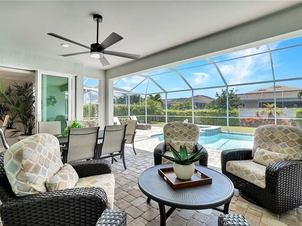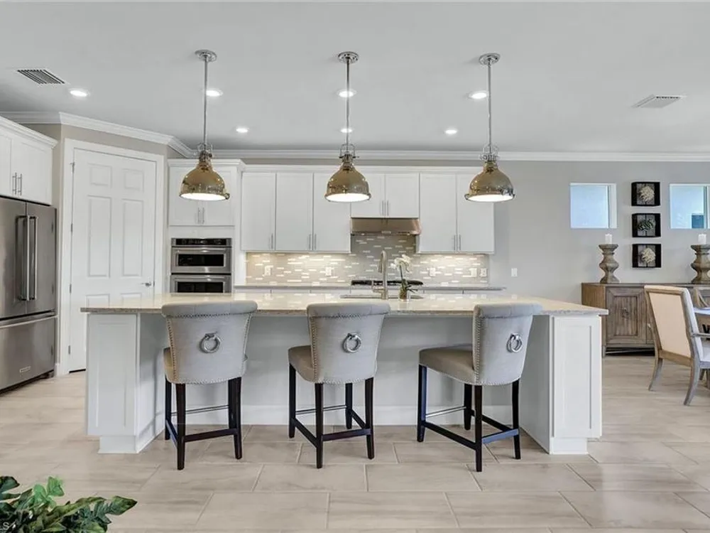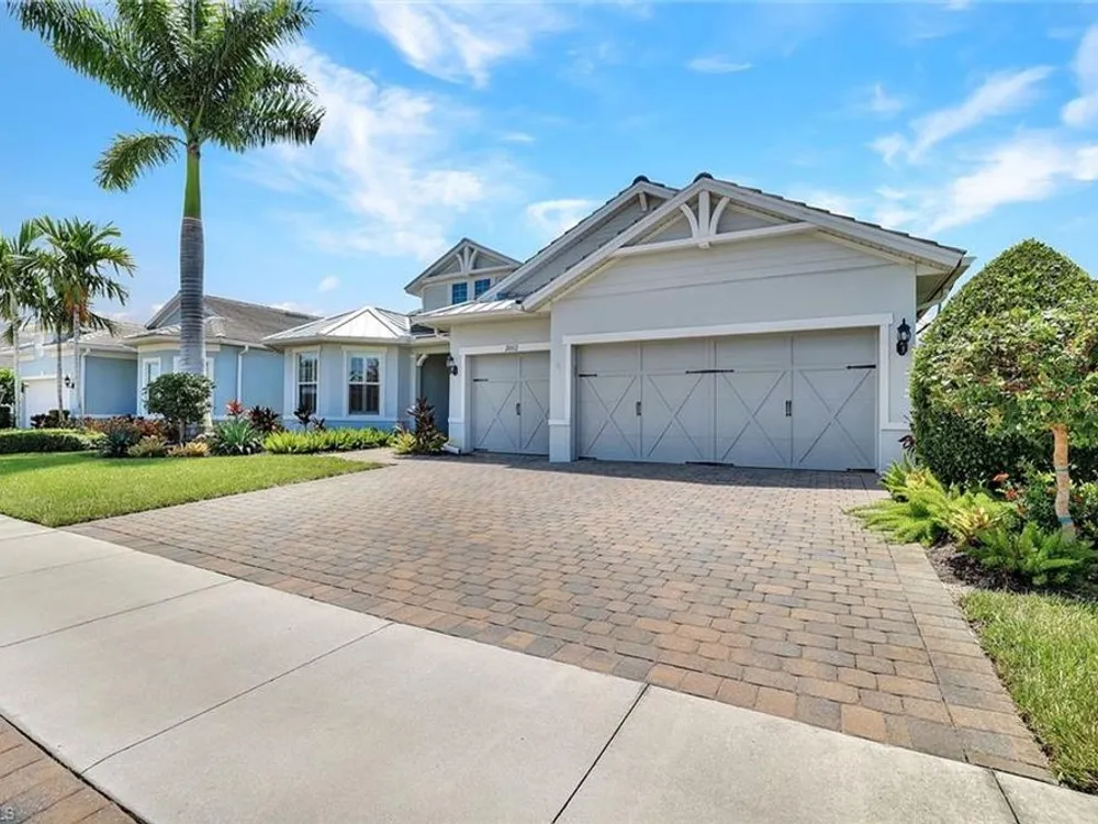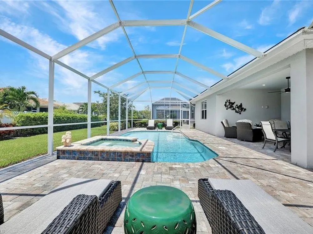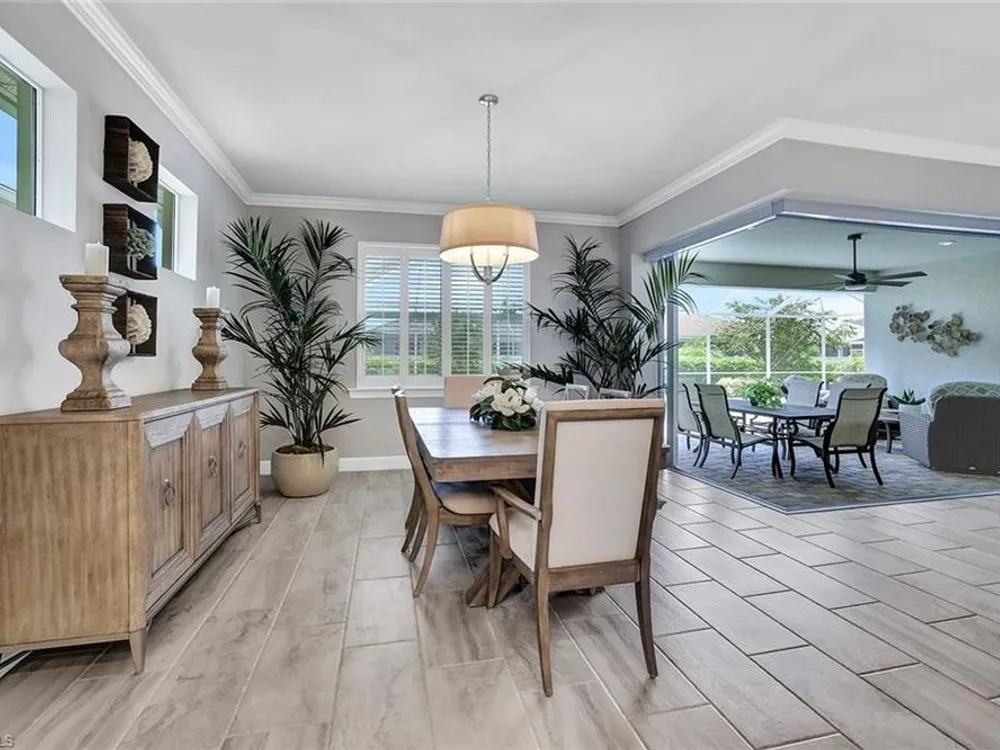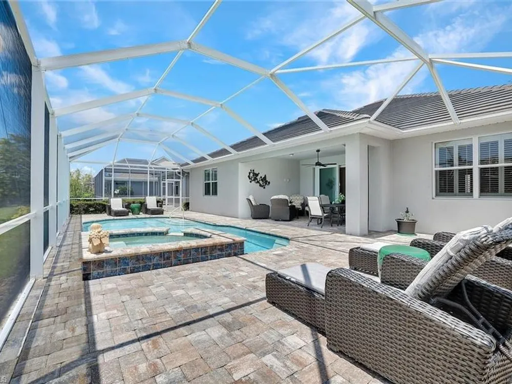Arguably the best value in Tidewater for space, features, and overall livability. Recent price improvement—seller is highly motivated, presenting a prime opportunity for savvy buyers. Experience the best of active adult living with this highly sought-after designer furnished Pinnacle floorplan, featuring a private pool and spa in the vibrant Tidewater community. The open-concept design is perfect for entertaining, with a spacious gathering room, kitchen, and dining area seamlessly connected by 90-degree corner sliding doors that lead out to the pool and spa.The light-filled kitchen is a chef’s dream, boasting a large island with seating, a walk-in pantry, pull-out cabinet organizers, a natural gas cooktop, and a suite of stainless-steel appliances. The owner's suite serves as a serene private retreat, while each of the additional bedrooms features generous walk-in closets.Upgraded finishes throughout include elegant crown molding, designer lighting, electric blinds, and custom window treatments. The home is decorated in a neutral color palette and comes with high-quality furnishings, making it truly move-in ready. The spacious garage includes an extra bay for a golf cart. Enjoy close proximity to the Tidewater Amenity Center, which offers a resort-style pool and spa, outdoor barefoot bar, fitness center, movement studio, pickleball and bocce courts, event lawn, fire pit, and BBQ grills. An on-site lifestyle director keeps the community buzzing with a full schedule of activities. Plus, you'll be conveniently located near shopping and just minutes from Southwest Florida International Airport. Be sure to view the virtual tour.Don’t miss the chance to own this Florida oasis—schedule your tour today!