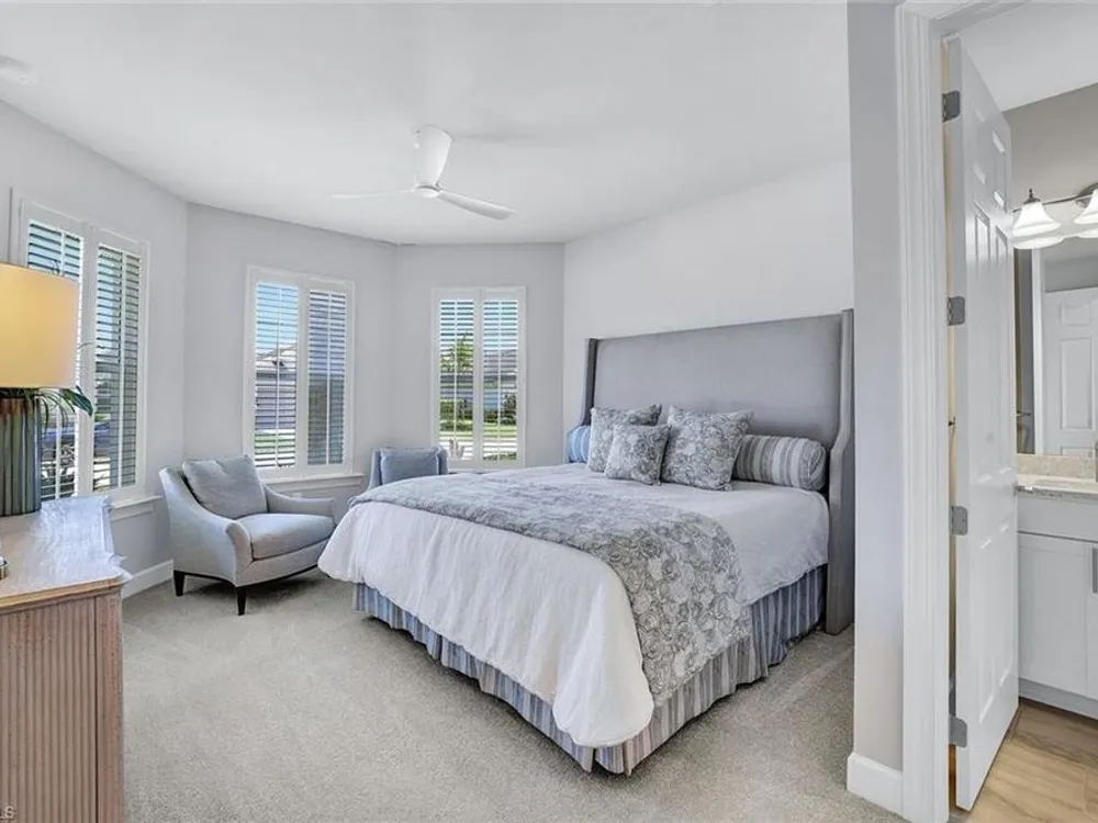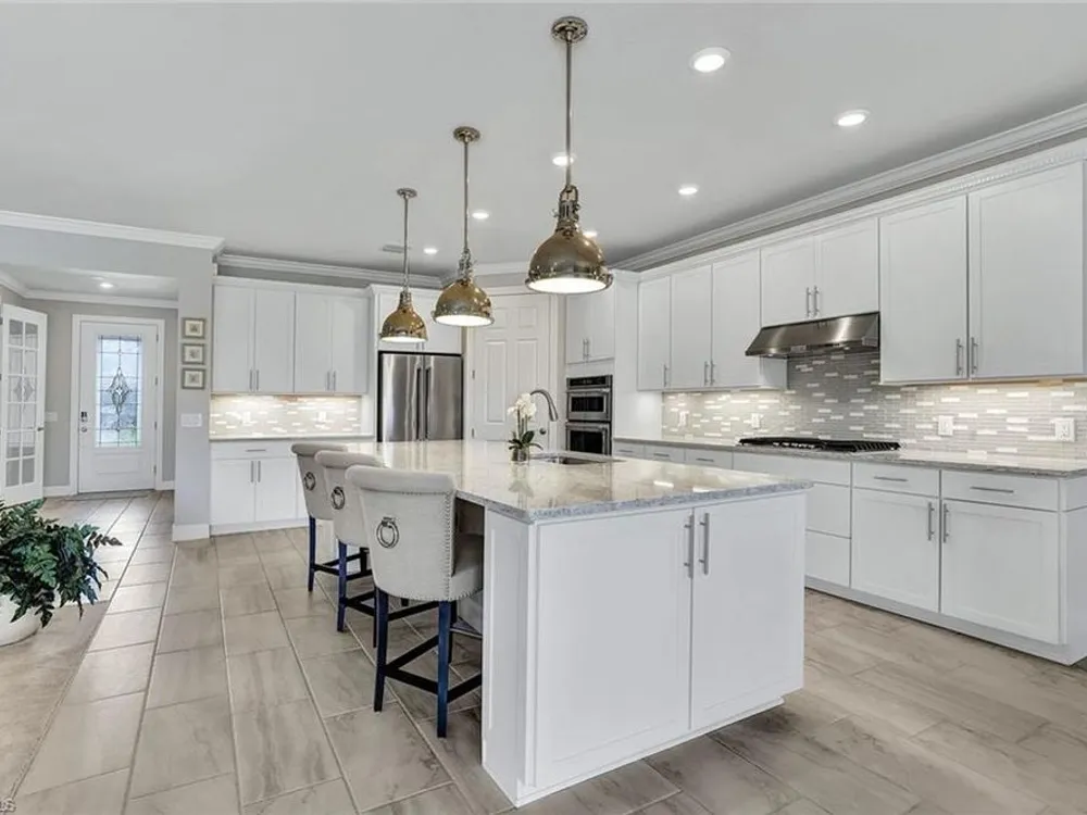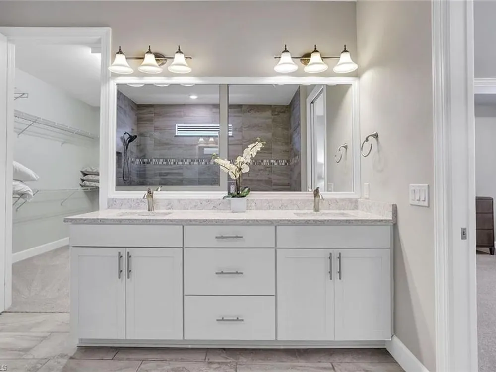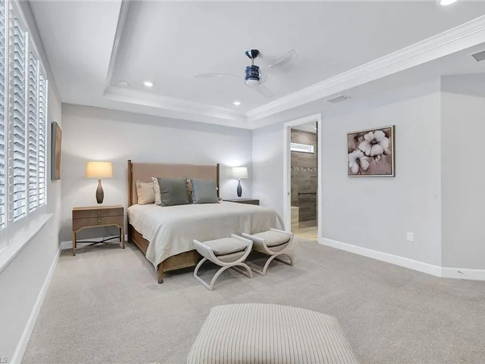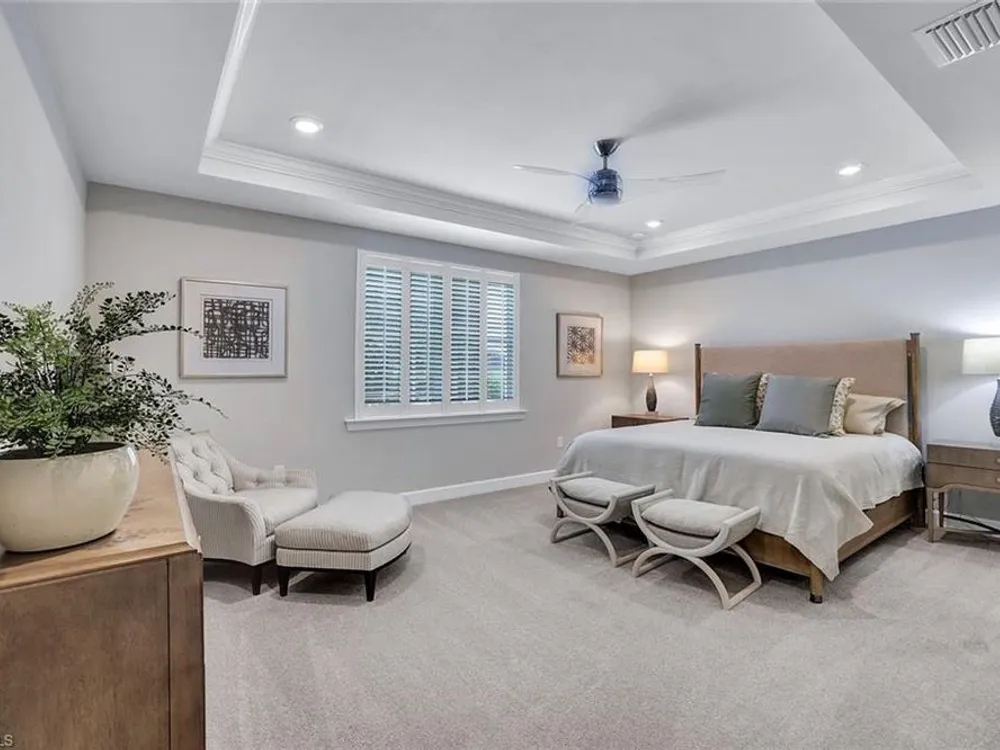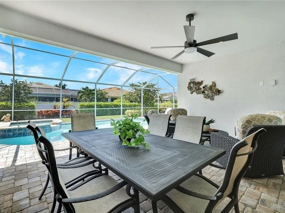 Arguably the best value in Tidewater for space, features, and overall livability. Recent price improvement—seller is highly motivated, presenting a prime opportunity for savvy buyers. Experience the best of active adult living with this highly sought-after designer furnished Pinnacle floorplan, featuring a private pool and spa in the vibrant Tidewater community. The open-concept design is perfect for entertaining, with a spacious gathering room, kitchen, and dining area seamlessly connected by 90-degree corner sliding doors that lead out to the pool and spa.The light-filled kitchen is a chef’s dream, boasting a large island with seating, a walk-in pantry, pull-out cabinet organizers, a natural gas cooktop, and a suite of stainless-steel appliances. The owner's suite serves as a serene private retreat, while each of the additional bedrooms features generous walk-in closets.Upgraded finishes throughout include elegant crown molding, designer lighting, electric blinds, and custom window treatments. The home is decorated in a neutral color palette and comes with high-quality furnishings, making it truly move-in ready. The spacious garage includes an extra bay for a golf cart. Enjoy close proximity to the Tidewater Amenity Center, which offers a resort-style pool and spa, outdoor barefoot bar, fitness center, movement studio, pickleball and bocce courts, event lawn, fire pit, and BBQ grills. An on-site lifestyle director keeps the community buzzing with a full schedule of activities. Plus, you'll be conveniently located near shopping and just minutes from Southwest Florida International Airport. Be sure to view the virtual tour.Don’t miss the chance to own this Florida oasis—schedule your tour today!