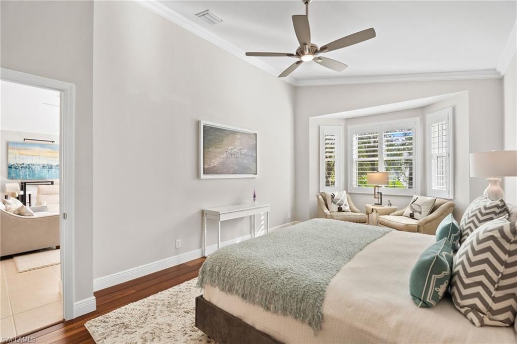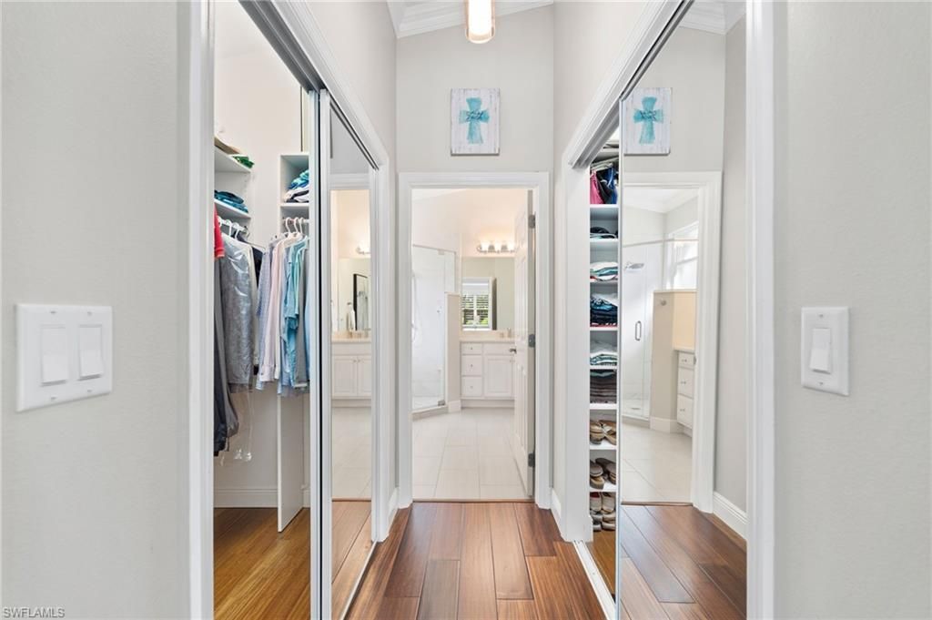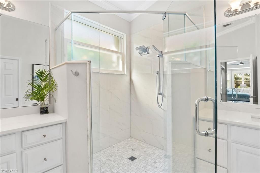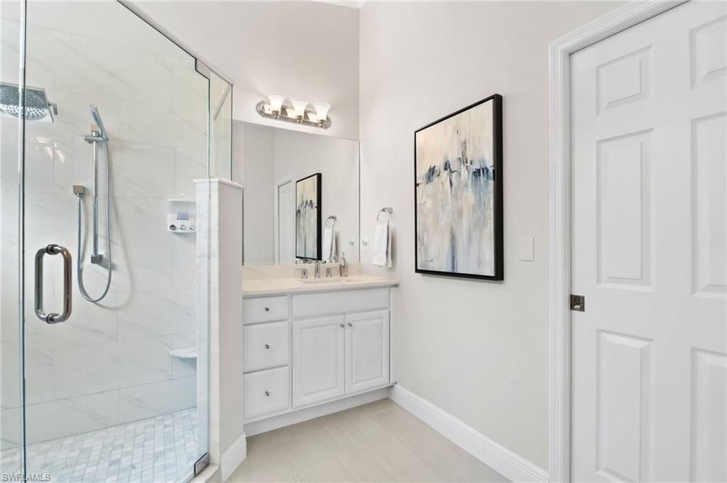 Experience the best of Florida living in this incredibly rare and uniquely positioned homesite in The Cascades at Estero. Perfectly tucked at the end of a quiet cul-de-sac, this 2 bedroom plus den, 2 bath residence sits deep on the lot, delivering expansive panoramic water views from both the rear and the entire side of the home width—with no view of a side neighbor. A dramatic 16.5-foot wall of sliding glass doors frames the sparkling lake and illuminated fountain, creating an exceptional indoor–outdoor connection and a setting that feels both private and serene.The home has been thoughtfully updated throughout. Newer windows enhance energy efficiency, reduce exterior noise, and showcase the water views with exceptional clarity. Tile flooring runs throughout the main living areas, complemented by engineered hardwood in both bedrooms and den —no carpet anywhere. The primary suite is a true retreat, featuring bay windows overlooking the lake, custom closet systems, and a beautifully renovated bath with dual vanities and an oversized custom glass shower.The kitchen has been renovated by Cornerstone Custom Kitchens and features solid wood cabinetry with soft-close drawers, updated lighting, and a layout designed for both function and flow. An expanded and redesigned laundry room adds meaningful utility with additional storage, a sink, and striking dolomite natural stone finishes. Sunburst 4-inch plantation shutters, 5¼-inch baseboards, upgraded molding, premium fans and fixtures, integrated hurricane shutters, and thoughtful storage solutions further elevate the home’s fit and finish.Additional highlights include fresh exterior paint completed in 2025, upgraded landscaping with stone-trim edging, and a garage equipped with pull-down attic stairs and overhead storage racks for excellent organization.Ideally located just steps from the residents’ walking path with direct access to the amenity center. Residents of Cascades at Estero enjoy a vibrant, resort-style 55+ lifestyle anchored by a recently renovated clubhouse featuring a grand ballroom, state-of-the-art fitness center, tennis, pickleball, bocce, billiards room, and arts and crafts studio, all with some of the lowest HOA fees in the area, which include cable/internet, ADT security, and more! Located in the heart of Estero, Cascades provides easy access to Coconut Point Mall, Gulf Coast Town Center, Miromar Outlets, Southwest Florida International Airport, and some of Southwest Florida’s most beautiful beaches.