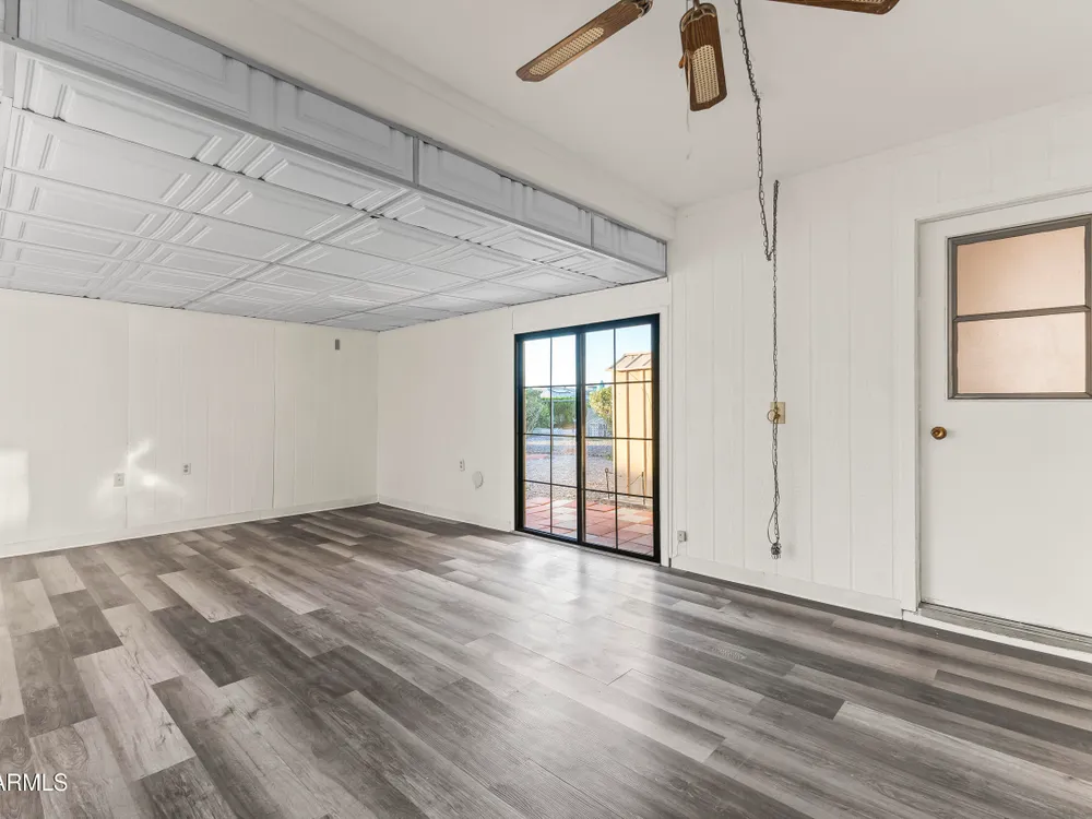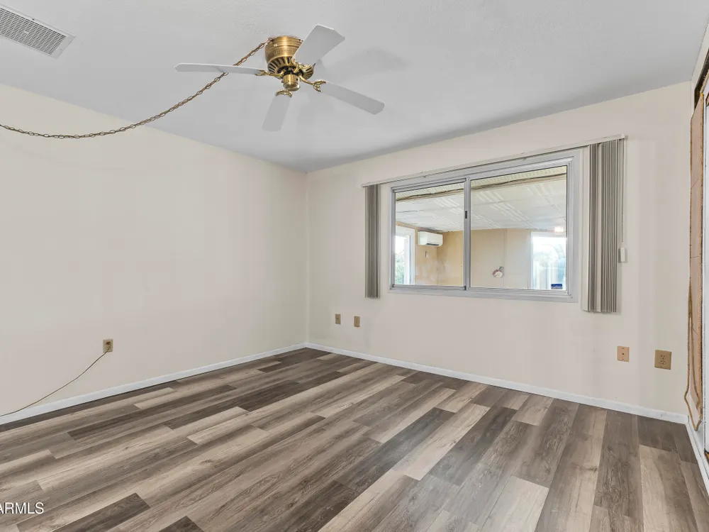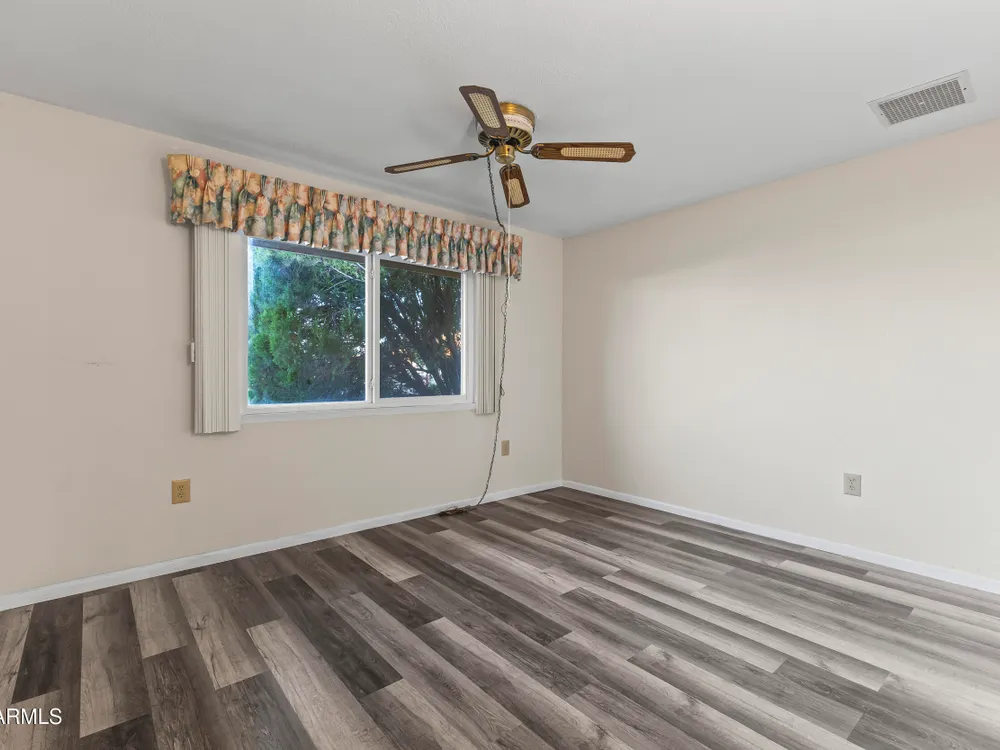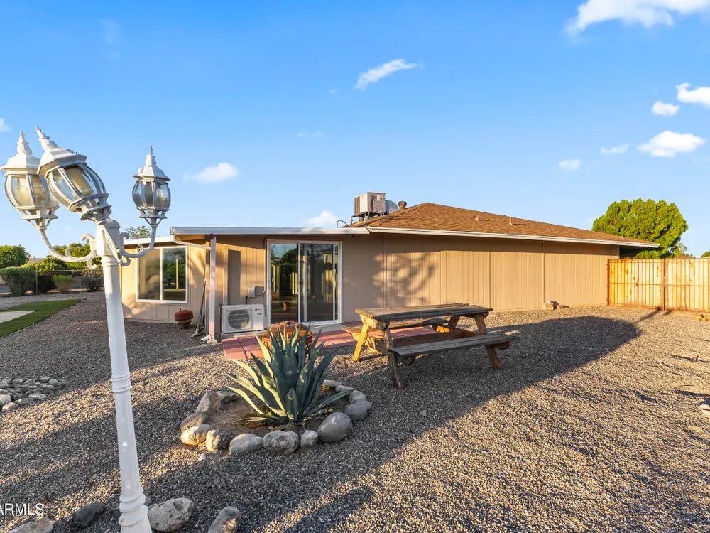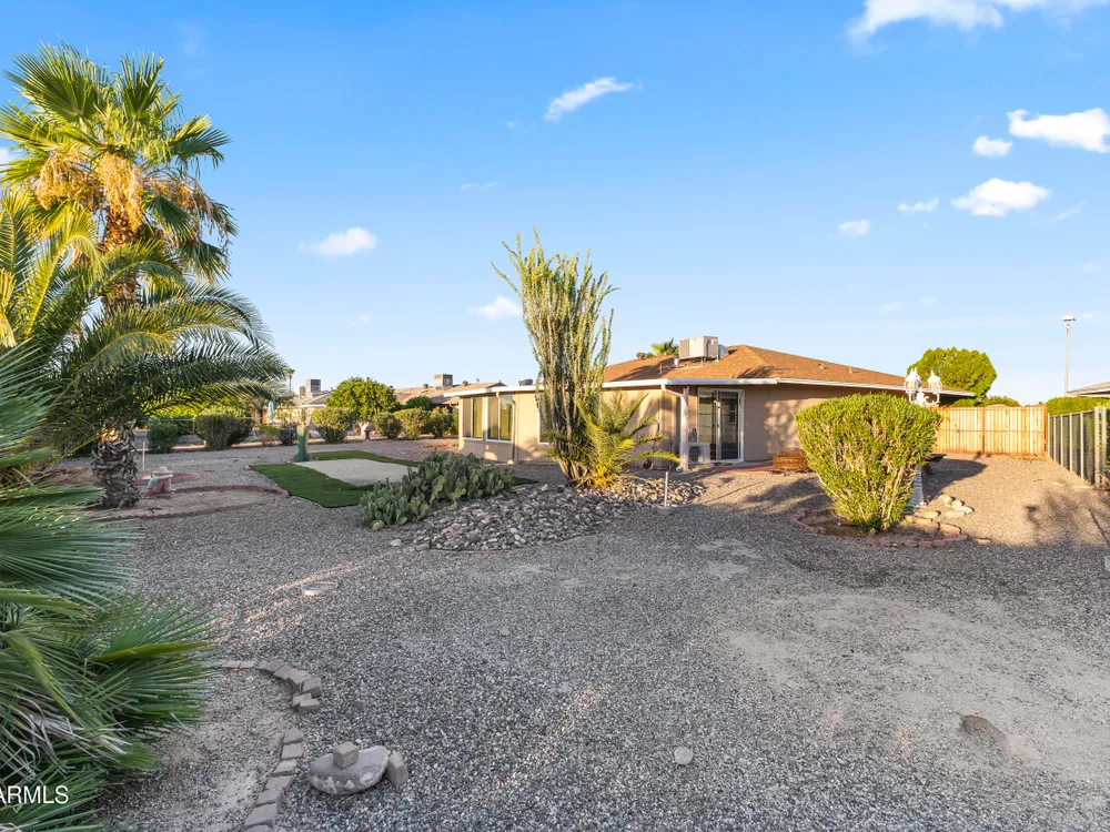 This home comes with an assumable loan balance of $105,131 at a 4.5% interest rate offering a valuable opportunity for buyers looking to lower their monthly payment. Room to spread out and make it your own! This expanded 2-bedroom, 2-bathroom Sun City home offers 2,183 sf of space, including several versatile bonus rooms perfect for hobbies, crafts, a home office, or additional living areas. A rear add-on with plenty of windows can create the perfect space for gardening, relaxing, or even a light-filled office. Here are a few ideas you could consider: Originally 1,160 sq ft, the home has been thoughtfully expanded to include multiple enclosed patio spaces, adding flexibility for your lifestyle needs. You'll appreciate the fresh, updated luxury vinyl plank flooring throughout the main family and living rooms great for entertaining or relaxing. The layout includes a formal sitting room, an enclosed Arizona room, and ext bonus spaces that invite creativity and customization. While the kitchen may be ready for a refresh, it's fully functional and waiting for your personal touch. Situated on a quiet cul-de-sac with mature, low-maintenance landscaping and a generous backyard, this home offers great potential in a vibrant 55+ community with access to pools, clubs, and recreation centers. A unique opportunity to own a large home at a great value in Sun City!