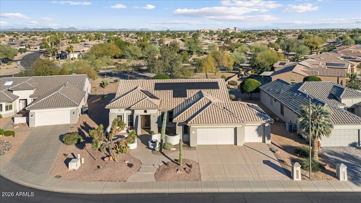 NEW ROOF UNDERLAYMENT ON IT'S WAY & RARE 3-CAR GARAGE! this home has been PRE-INSPECTED too! Experience the best of 55+ living in this move-in-ready gem tucked away in a quiet Skyview cul-de-sac at Sun City Grand. This 3BR/2.5BA home features fresh interior paint and a massive oversized 3-car garage with a built-in EV charger and a private enclosed workspace—a rare find! The open kitchen is an entertainer's dream, perfect for hosting friends. Step outside to your private oasis featuring a built-in grill, soothing fountain, and a large backyard designed for the Arizona lifestyle (no backyard neighbors) . Enjoy world-class amenities: golf, tennis, heated pools, and the clubhouse are just a golf cart ride away. walk in. With 3 bedrooms and 2.5 baths, there's plenty of room for guests or a dedicated home office. The large kitchen is the heart of the home, flowing perfectly into the living areas for easy entertaining. Outdoor Living at Its Best The backyard is your own private retreat. Fire up the built-in outdoor grill for a sunset dinner, or relax on the patio to the calming sounds of the water fountain. The oversized lot offers more privacy and space than your typical neighborhood build. The "Grand" Lifestyle You're not just buying a house; you're gaining access to world-class amenities. Enjoy championship golf, tennis, pickleball, and those famous resort-style heated pools and spasall just a short golf cart ride away from your quiet cul-de-sac. Key Highlights: New Roof & New Interior Paint (2024) Rare Oversized 3-Car Garage + Workspace EV Charging Station Installed Quiet Cul-De-Sac Location Built-in Outdoor Kitchen & Fountain