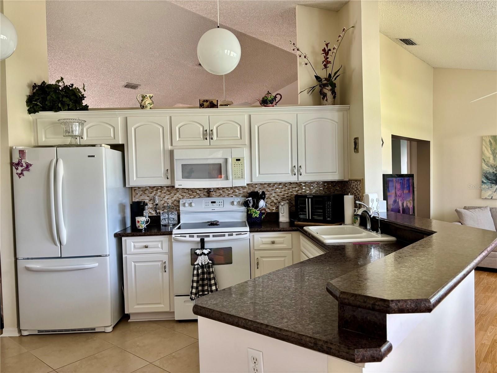 REDUCED FOR QUICK SALE!! Expanded Kingston model in the sought-after Caloosa neighborhood of Sun City Center. This move-in ready home features valulted ceilings, spacious living/dining area, family room and an updated kitchen with modern cabinetry, pantry, desk, and bay-window breakfast nook. Reverse osmosis system is included. The primary suite offers two walk-in closets, dual sinks, garden tub, oversized shower, private commode, and linen closet. Split plan provides a guest bedroom with extra-deep closet and full bath. Florida Room (252 sq. ft., not under air) with sliding doors from kitchen and guest room adds versatile living space. The elegant curb appeal with extensive paver driveway is another great feature. HURRICANE IMPACT WINDOWS have been added throughout the home, and the sellers boast of the fabulous sunset views from the back windows. You will love the laundry room with washer/dryer as well as a sink, cabinets and closet. The two-car garage has storage and pull-down steps to the attic for more storage. The vast corner lot displays a large front, side and backyard area. This outstanding friendly golf cart community presents over 200 clubs and activities including a huge fitness center, several pools, a sports complex with pickle ball, volleyball, tennis, softball and more. There is also a dog park, and you can enjoy some delicious meals in our café at poolside. Sun City Center is located between Tampa and Sarasota within an hour of three international airports. Tampa is a gateway to three major league sports team events, theme parks and beautiful popular beaches on the gulf coast. Come be a part of Sun City Center voted “Number 1 retirement community by Travel and Leisure Magazine” in 2024.