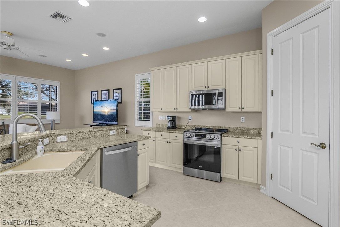 - Dryer, Dishwasher, Freezer, Disposal, Ice Maker, Microwave, Range, Refrigerator, Self Cleaning Oven, Washer
