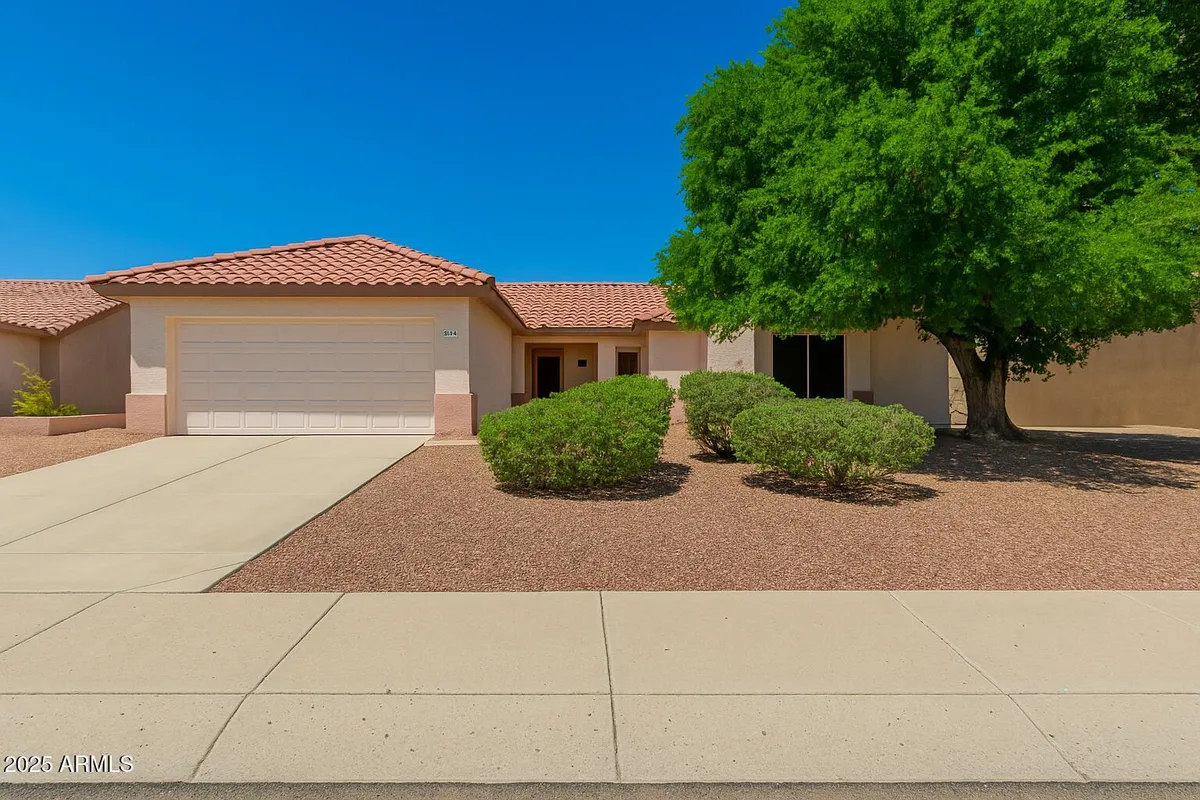 Welcome to this beautifully maintained home in the heart of Sun City Grand, offering the perfect blend of comfort and active adult living! Recent upgrades include a NEW roof, skylights and termite treatment with warranties, plus fresh exterior paint, ensuring true move-in confidence. With over 1,600 sq.ft., the thoughtfully designed floor plan features two spacious bedrooms and two bathrooms, including a generous primary suite with a private en suite and a separate guest bedroom with a nearby hall bath for added privacy. The bright, open great room is enhanced by charming skylights, creating a warm and inviting space for both daily living and entertaining. Additional highlights include a large laundry room with a utility sink and an oversized 2-car garage with extra storage. Step outside to the extended back patio, perfect for enjoying Arizona's beautiful weather year-round. As part of the Sun City Grand community, you'll enjoy world-class amenities such as golf, pickleball, sparkling pools, a clubhouse, on-site dining, and a full calendar of social activities. Don't miss this opportunity--your ideal lifestyle awaits!