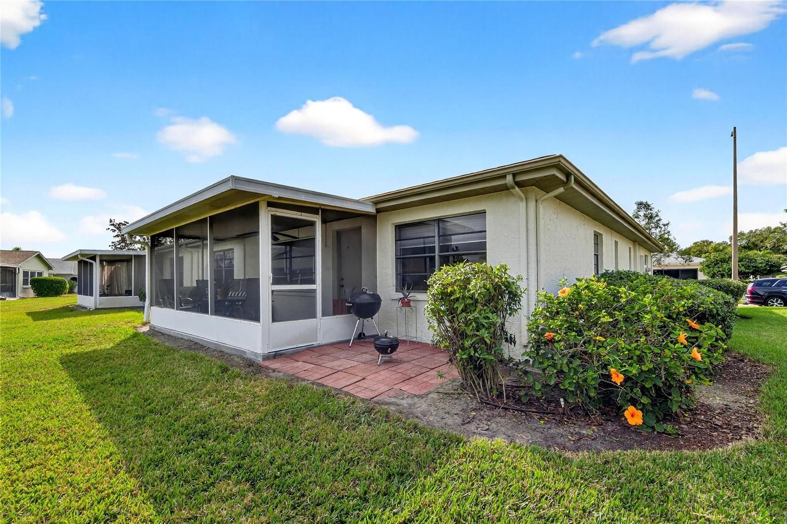 Welcome to a home that has been truly loved. This beautifully maintained, ground-floor Sunrise model is located in the highly desirable Highgate IV neighborhood of Kings Point and has been owned by the same family for nearly 20 years. Gently lived in and meticulously cared for, this one-level condo offers a rare sense of comfort, reliability, and pride of ownership that immediately sets it apart. The kitchen is both stylish and functional, featuring beautiful shaker-style cabinetry with select glass-front display cabinets, stainless steel appliances, and a layout designed for comfortable everyday living. Ceiling fans in every room enhance comfort throughout the home, while the primary bedroom offers a peaceful retreat complete with an ensuite bath and a walk-in closet with an organizational system. This mirrored Sunrise floor plan provides excellent separation of space and a comfortable flow well suited for both full-time and seasonal living. This home reflects years of attentive ownership and regular servicing. The owner has maintained a Kings Point Warranty Gold plan during their ownership, ensuring consistent care of the home’s systems. Major updates include a brand-new electrical panel (2026), HVAC system (2014), water heater (2020), complete repipe (2010), and a roof replaced in 2013 and maintained by the HOA — allowing the next owner to move in with confidence. Enjoy relaxing Florida living from multiple outdoor spaces. The enclosed front porch creates a welcoming entry and a perfect place to unwind, while the rear lanai offers serene pond views framed by mature trees beyond the water, creating a peaceful and picturesque backdrop. The garage is equipped with a screened garage door, providing privacy, ventilation, and flexible use of the space while still maintaining security. Kings Point is a gated, amenity-rich 55+ community offering a true low-maintenance lifestyle. Residents enjoy multiple clubhouses, indoor and outdoor swimming pools, fitness centers, pickleball and tennis courts, golf courses, walking paths, and hundreds of clubs, classes, and social activities. Exterior maintenance, landscaping, water, sewer, cable, and recreational amenities are included, allowing residents to focus on enjoying life rather than home upkeep. The Highgate IV neighborhood is especially loved for its peaceful setting, strong sense of community, and the wonderful, laid back and easy lifestyle in Kings Pont. This is a rare opportunity to own a beautifully maintained home with long-term pride of ownership, tranquil water views, and the ease of resort-style living in one of Sun City Center’s most beloved active adult communities.