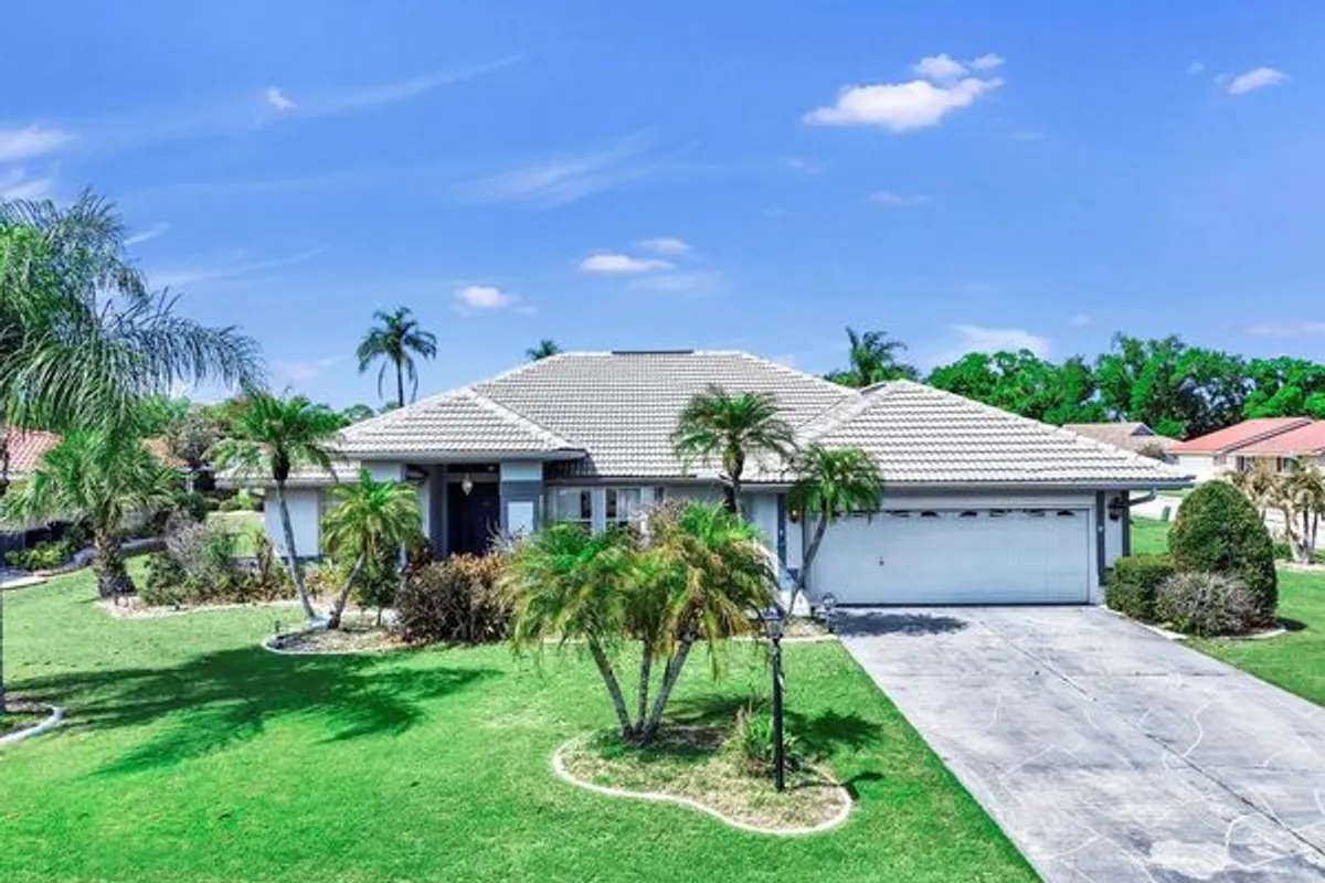 Prepare to be impressed! You will love the curb appeal of the beautiful home with its lush, tropical landscaping, tile roof, and tasteful exterior color palette. Step into the sun-filled foyer and view an open floor plan with cathedral ceilings and large windows. The expansive living room flows seamlessly into the formal dining area, which features a large bay window. The kitchen features an Italian tile floor, a large pantry, and an eat-in area that opens to a back patio, where you can step outside to pick oranges and lemons from your backyard. The large primary bedroom suite also opens to the back patio and boasts a tray ceiling and two separate walk-in closets. The luxurious master en-suite bathroom features mosaic tile flooring, marble dual vanities, a linen closet, a jacuzzi tub, and a glass-enclosed walk-in shower. The split-bedroom layout provides privacy with two additional bedrooms and a full bathroom. This home has had multiple quality upgrades, and a full list is available for prospective buyers. This solid-block constructed home was built by Del Webb and sits on a gorgeous, large corner lot. Del Webb is recognized for its quality constructed homes and communities designed for 55+ active lifestyles. Sun City Center is one of the nation’s premier active adult communities, offering numerous clubs and countless resort-style amenities including indoor and outdoor pools, a state-of-the-art fitness center, tennis and pickleball courts, lawn bowling, dog parks, and golf courses. This true golf-cart community also offers close proximity to shopping, dining, medical facilities, and major highways. Conveniently located near I-75, you are just a short drive to downtown Tampa, Tampa International Airport, and the world-famous Gulf beaches. This home is also strategically located for military retirees with a straight shot to MacDill Air Force Base and the James A. Haley Veterans Hospital. Don’t miss your chance to start living the good life in this stunning Sun City Center home! **Ask us about our Preferred Lender Incentive available where you could save thousands $$$**