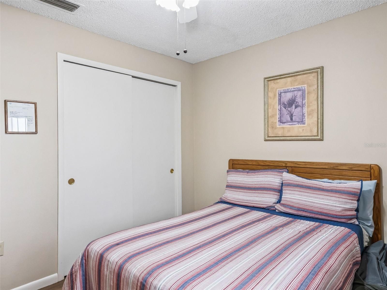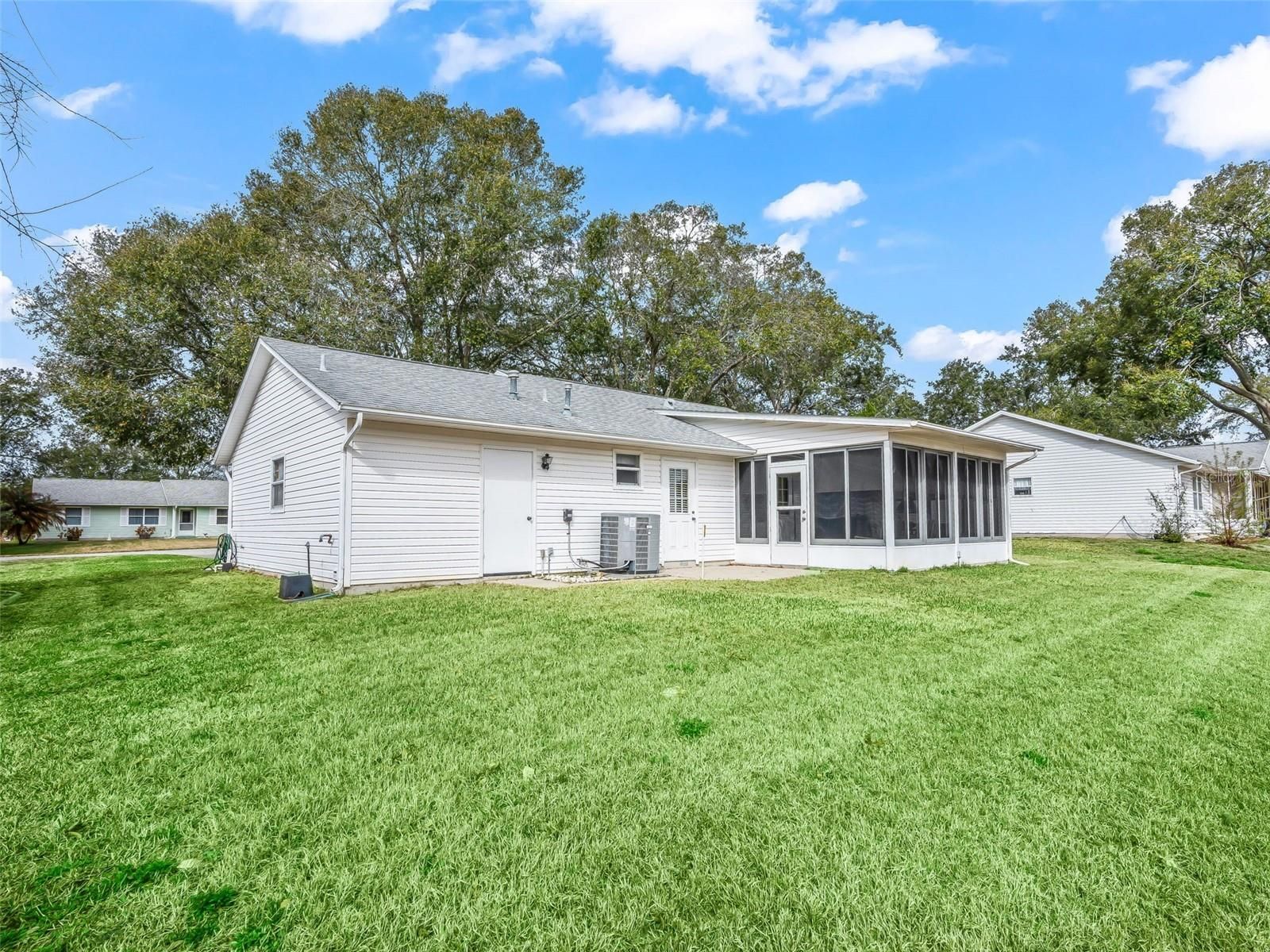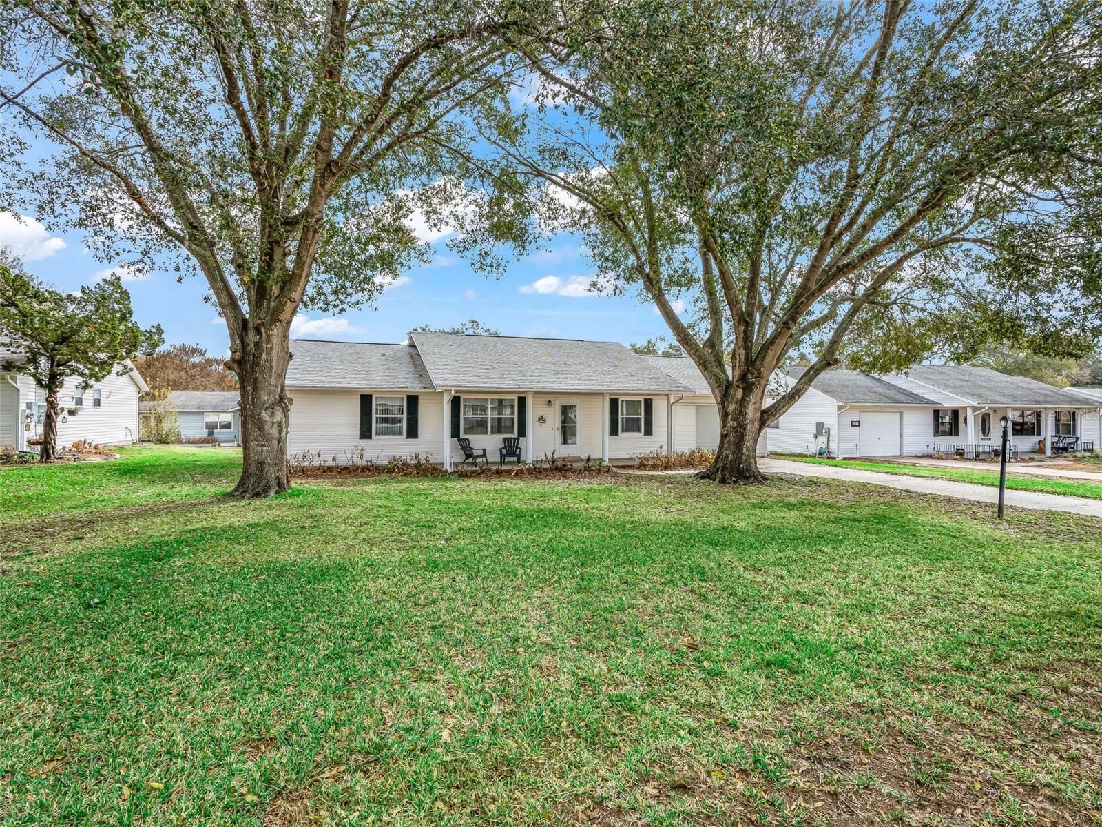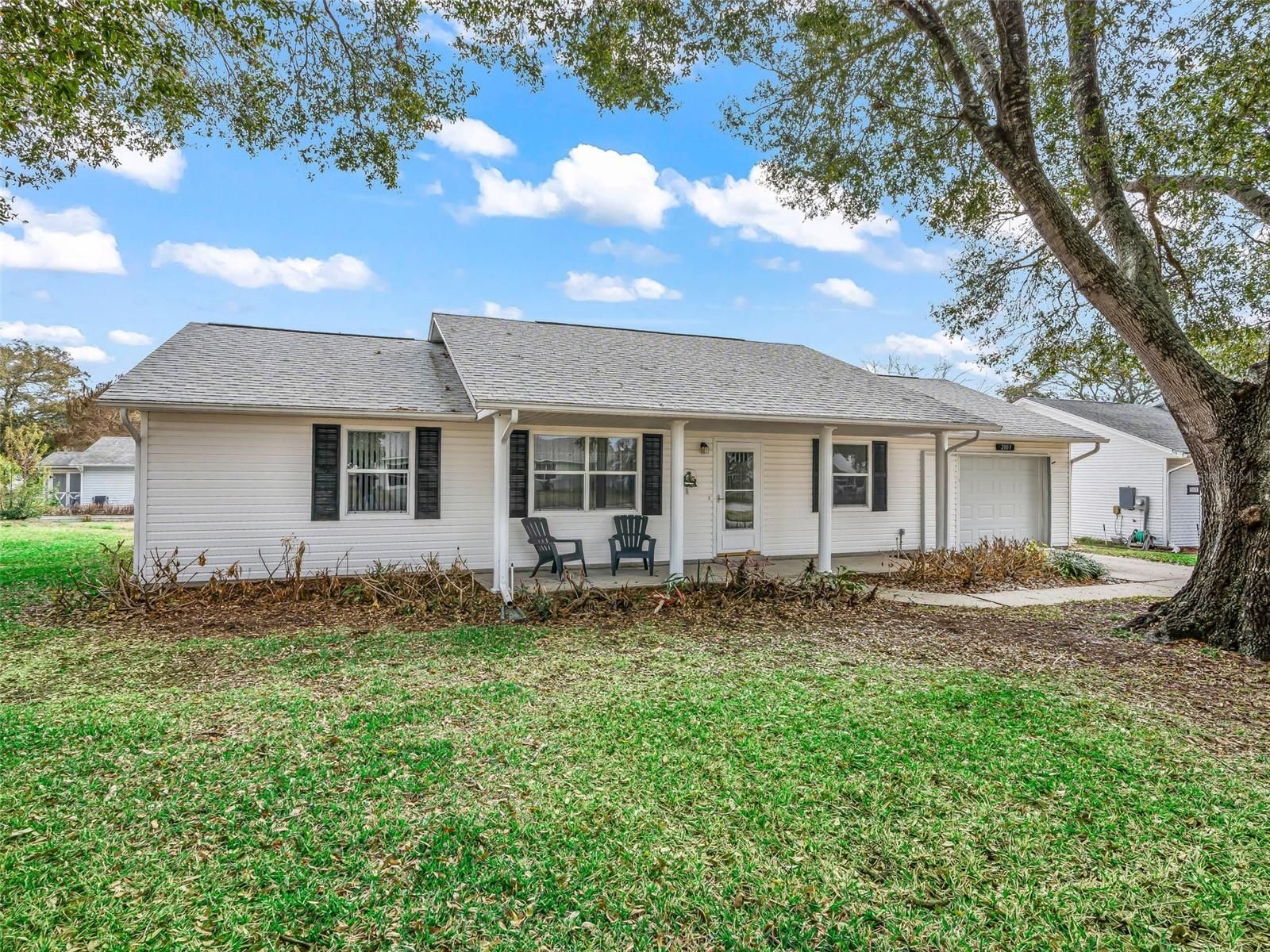 SCOTTISH HIGHLANDS 55+ COMMUNITY WITH LOADS OF ACTIVITIES TO CHOOSE FROM. PRIDE OF OWNERSHIP WITH THIS 2/2 WELLINGTON II SPLIT PLAN HOME WITH LOADS OF UPDATES. LOCATED ON A DEAD END STREET. ROOF 2019, WATER HEATER REPLACED 2023, WASHER AND DRYER 2018. ALL FLOORS ARE TILE PLANK AND VINYL PLANK IN FAMILY ROOM. NO CARPET. Large living room with cathedral ceilings opens on to dining room area with sliders to glassed in Florida Room. KITCHEN HAS BEEN UPDATED WITH CABINETS REFACED, UPGRADED GRANITE-LOOK COUNTERTOPS, AND WHITE APPLIANCES. PANTRY CLOSET. Primary bedroom with en-suite with upgraded cabinets and countertops, updated walk-in shower with glass door. 10’ walk in closet. Guest side of house features nice size bedroom, updated guest bath with cabinetry and countertops. Garage with rear entry to 10’ patio and pull down stairs. Nice size lot with oak trees and front covered porch. Under termite bond. The fees in Scottish Highlands cover the private sewer, basic cable, internet and all of the amenities including Olympic Indoor pool with spa, recreation buildings, tennis, pickleball and loads of activities to choose from. Storage area for your boat/rv/trailer. Great convenient location close to restaurants, shopping, worship and medical facilities. View today to see this lovely well-kept home.