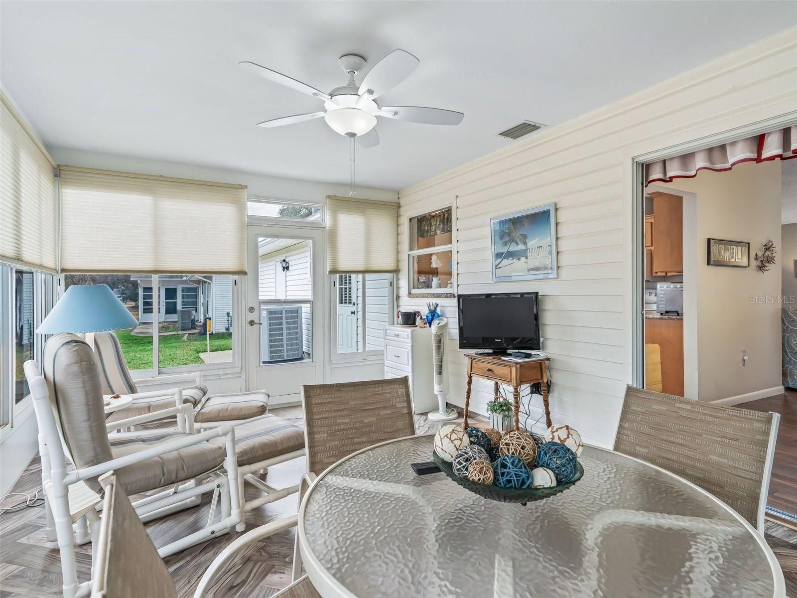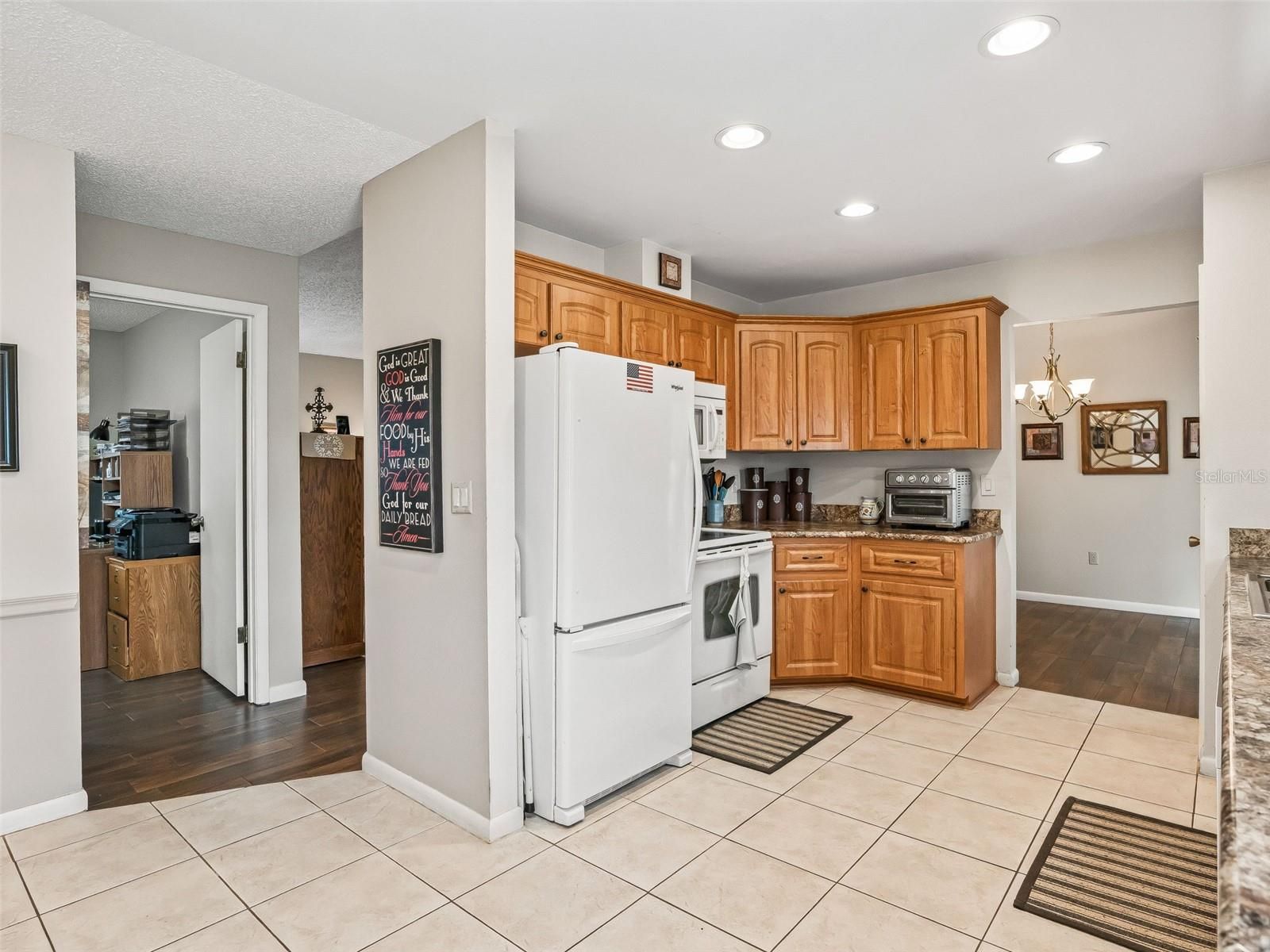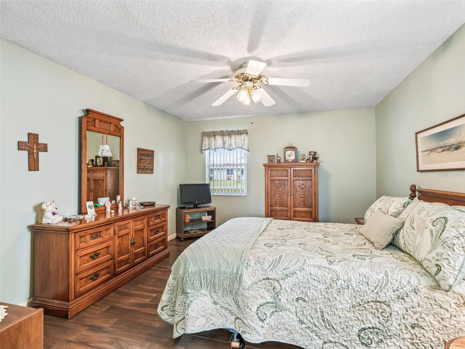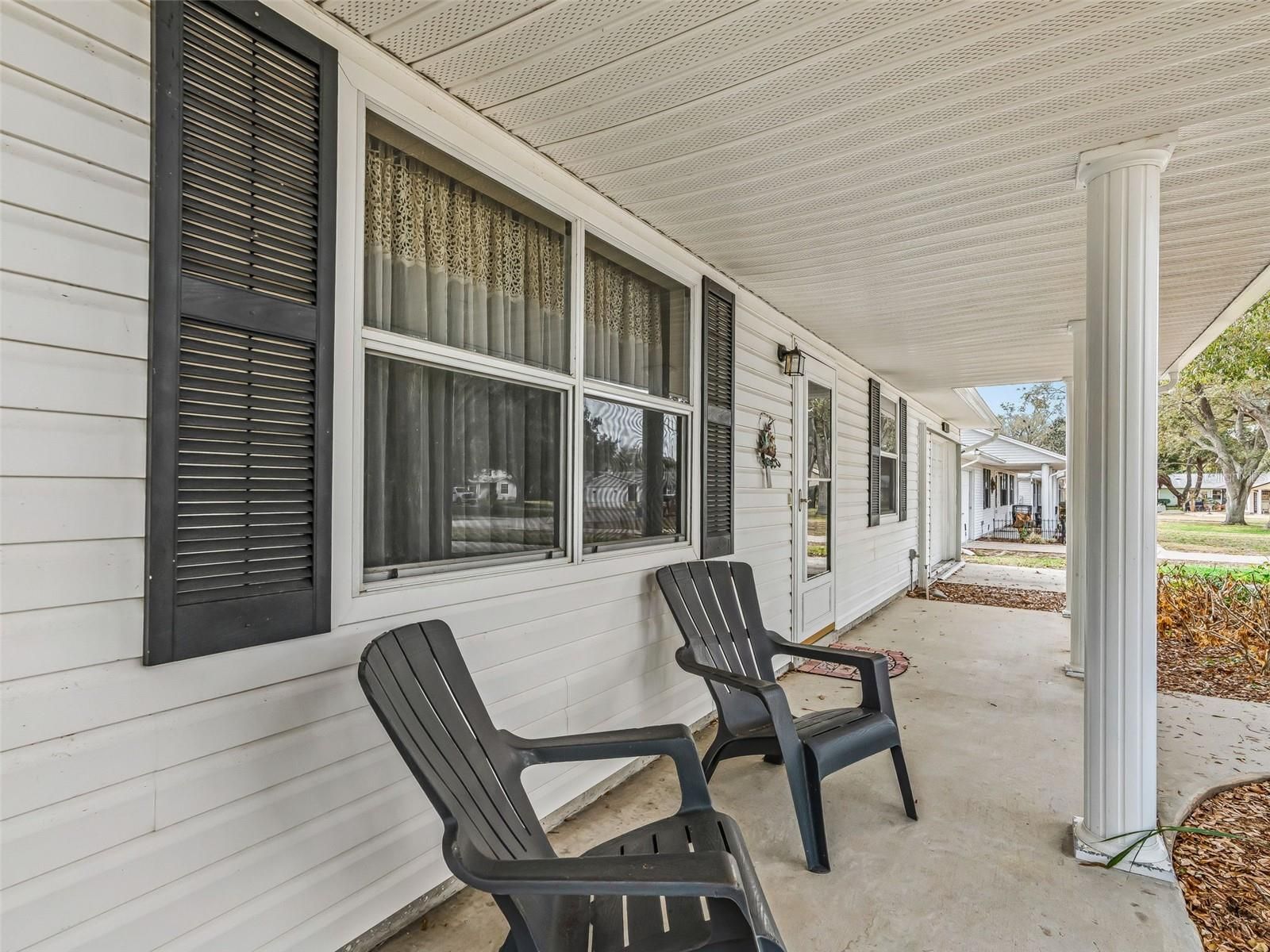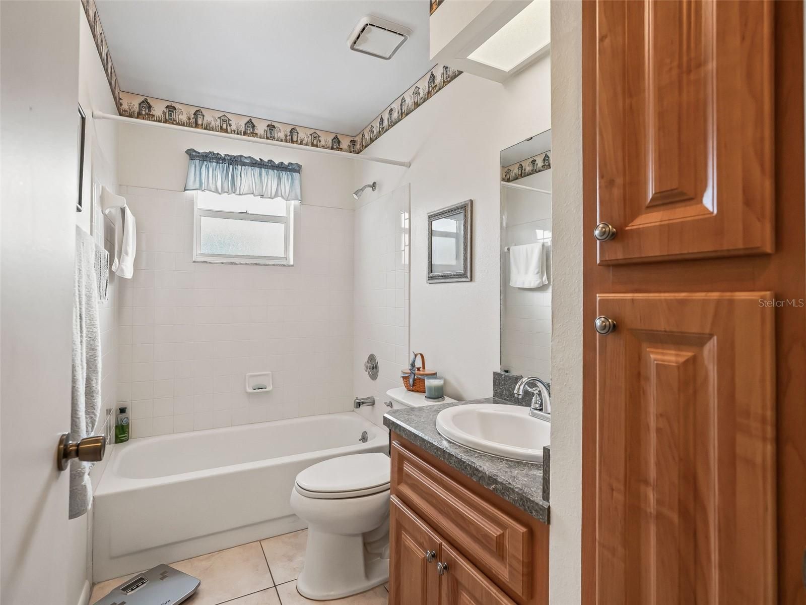 SCOTTISH HIGHLANDS 55+ COMMUNITY WITH LOADS OF ACTIVITIES TO CHOOSE FROM. PRIDE OF OWNERSHIP WITH THIS 2/2 WELLINGTON II SPLIT PLAN HOME WITH LOADS OF UPDATES. LOCATED ON A DEAD END STREET. ROOF 2019, WATER HEATER REPLACED 2023, WASHER AND DRYER 2018. ALL FLOORS ARE TILE PLANK AND VINYL PLANK IN FAMILY ROOM. NO CARPET. Large living room with cathedral ceilings opens on to dining room area with sliders to glassed in Florida Room. KITCHEN HAS BEEN UPDATED WITH CABINETS REFACED, UPGRADED GRANITE-LOOK COUNTERTOPS, AND WHITE APPLIANCES. PANTRY CLOSET. Primary bedroom with en-suite with upgraded cabinets and countertops, updated walk-in shower with glass door. 10’ walk in closet. Guest side of house features nice size bedroom, updated guest bath with cabinetry and countertops. Garage with rear entry to 10’ patio and pull down stairs. Nice size lot with oak trees and front covered porch. Under termite bond. The fees in Scottish Highlands cover the private sewer, basic cable, internet and all of the amenities including Olympic Indoor pool with spa, recreation buildings, tennis, pickleball and loads of activities to choose from. Storage area for your boat/rv/trailer. Great convenient location close to restaurants, shopping, worship and medical facilities. View today to see this lovely well-kept home.