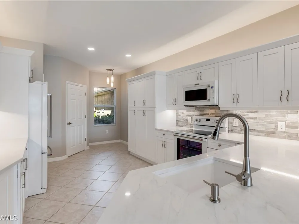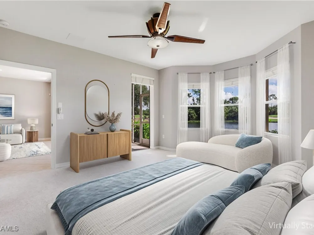 Wonderful opportunity to join one of Estero's popular gated communities, Grandezza Country Club! This light and bright 1st floor 3 bedrooms, 2 bathrooms with an attached garage condo offers east facing beautiful sunrise views of the lake and golf course. This tastefully designed condo has a spacious updated kitchen with new appliances and quartz countertops as well as newly renovated primary bathroom. The layout flows perfectly for everyday living or seasonal enjoyment. Grandezza offers 2 community pools, 18-hole Championship golf, tennis, causal and fine dining and fitness and wellness center. Close to SWFL International Airport, I-75, shopping and restaurants makes Grandezza a highly desirable location.