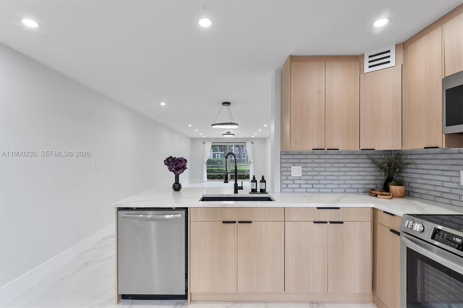 GORGEOUS, COMPLETELY REMODELED WITH PERMITS! This stunning ground-floor residence offers the perfect blend of style and convenience. Enjoy the ease of parking right in front of your door and direct access to the heated pool just moments from your patio, creating a true resort-style lifestyle. The beautifully updated interior features modern finishes and the added convenience of a washer and dryer inside the unit. Located in a full-service 55+ community, residents enjoy an incredible array of amenities including on-site restaurants, clubhouse, community rooms, business center, fitness center, pickleball courts, golf course, movie theater, multiple heated pools, countless social clubs, and a free community shuttle for easy transportation. For peace of mind, the building has successfully passed the 30-year inspection and completed the SIRS requirements, with NO assessments. Move in and start enjoying the lifestyle immediately!