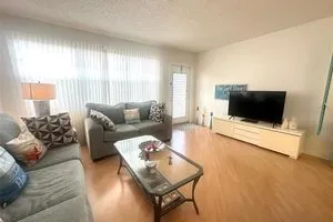 Welcome home to this cozy & bright 1 bedrm, 1 bath condo w/ a stunning VIEW OF THE LAKE! The spacious liv area has an open kit w/white appl (incl. dishwasher), an island for extra cntr space & storage & beautiful lam wood flrs. The updated bathrm has tiled walls, tub/shower & glass shower doors. Unit comes partially furnished. Enjoy a cup of coffee while overlooking the beautiful water view on your lovely encl patio w/sliding plexi glass windows & roll up shutters. New AC & bldg. has a NEW ROOF & 2 elevators! Gated comm w/24 hr sec, courtesy bus, pools, tennis, pickle ball, putting green, cafe, state-of-the-art Clubhouse w/fitness cntr, billiards, theater, free movies, classes, clubs, ping pong, Minutes to shopping, restaurants, beach & hwys. Enjoy South Florida living! ASSOC. CLAIMS 55+