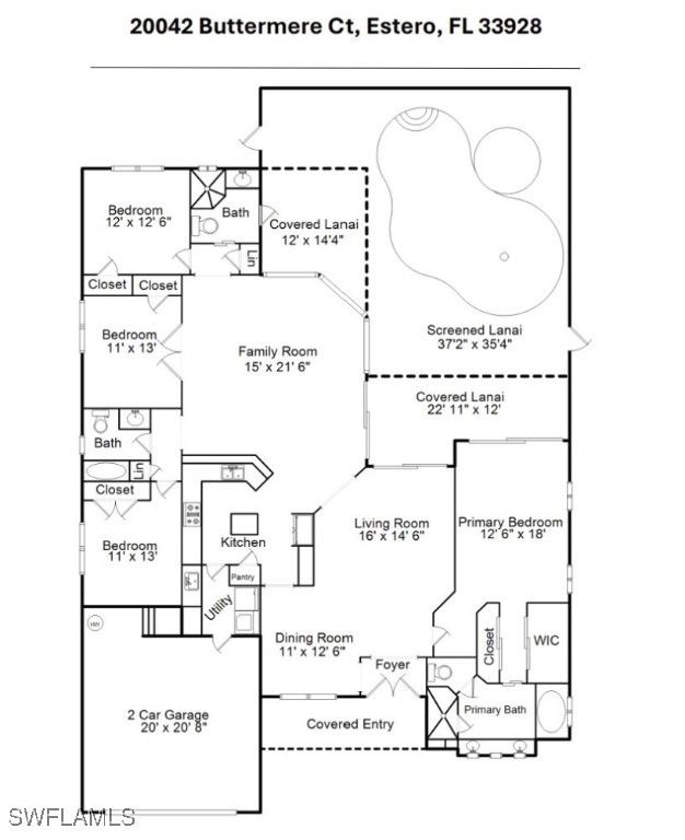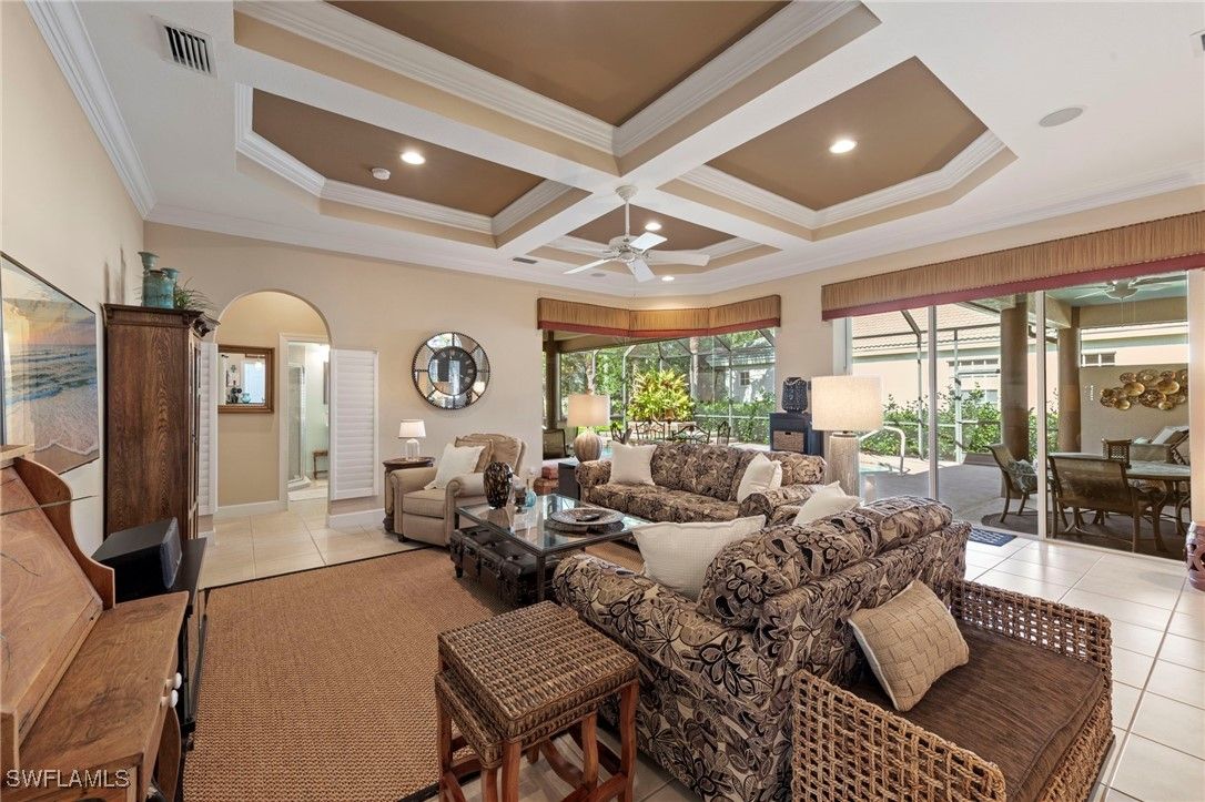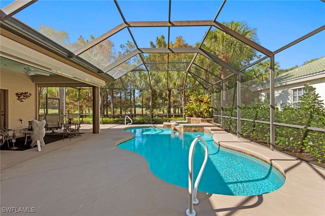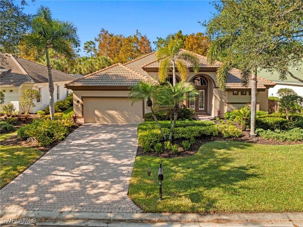 Set on a quiet cul-de-sac in the gated community of Grandezza, 20042 Buttermere Court combines a thoughtful floor plan with an exceptional location. The 4-bedroom, 3-bath pool home offers 2,551 square feet with volume ceilings, western rear exposure, and golf course views highlighted by warm natural light and sunsets. Recent improvements include a 2019 roof, new pool cage installed in 2024, new pool heater and pump in 2025, a new refrigerator in 2025, dishwasher and glass-top range replaced in 2022, water heater replaced in 2020, and electric storm shutters. The open floor plan includes both a living room and a family room, offering flexibility for everyday living and entertaining. Tile flooring anchors the main living areas, while the bedrooms are comfortably carpeted. Plantation shutters, custom lighting, and understated architectural details create a timeless interior. The kitchen features upgraded cabinetry, granite countertops, tile backsplash, breakfast bar seating, and a butler’s bar connecting to the formal dining room, designed for both function and flow. The primary suite offers direct lanai access, dual closets, and an ensuite featuring dual vanities, soaking tub, and a walk-in shower. Three additional bedrooms provide flexibility for guests and a home office, while a third full bathroom opens directly to the lanai and pool, ideal for indoor-outdoor living. Outdoor living centers around a screened pool and spa overlooking the golf course, complemented by mature landscaping and custom plantings. Grandezza residents enjoy a resort-style pool with poolside food and beverage service, a well-equipped fitness center, tennis courts, casual and fine dining options, and a full social calendar, all anchored by a 53,000-square-foot clubhouse and an 18-hole championship golf course. Ideally located between Naples and Fort Myers, Grandezza offers quick access to Gulf Coast Town Center, Hertz Arena, RSW Airport, Coconut Point Mall, FGCU, and Southwest Florida’s white-sand beaches.