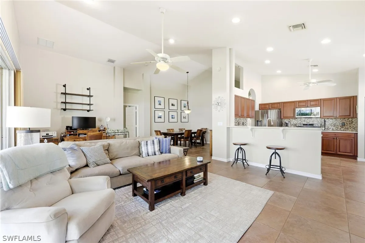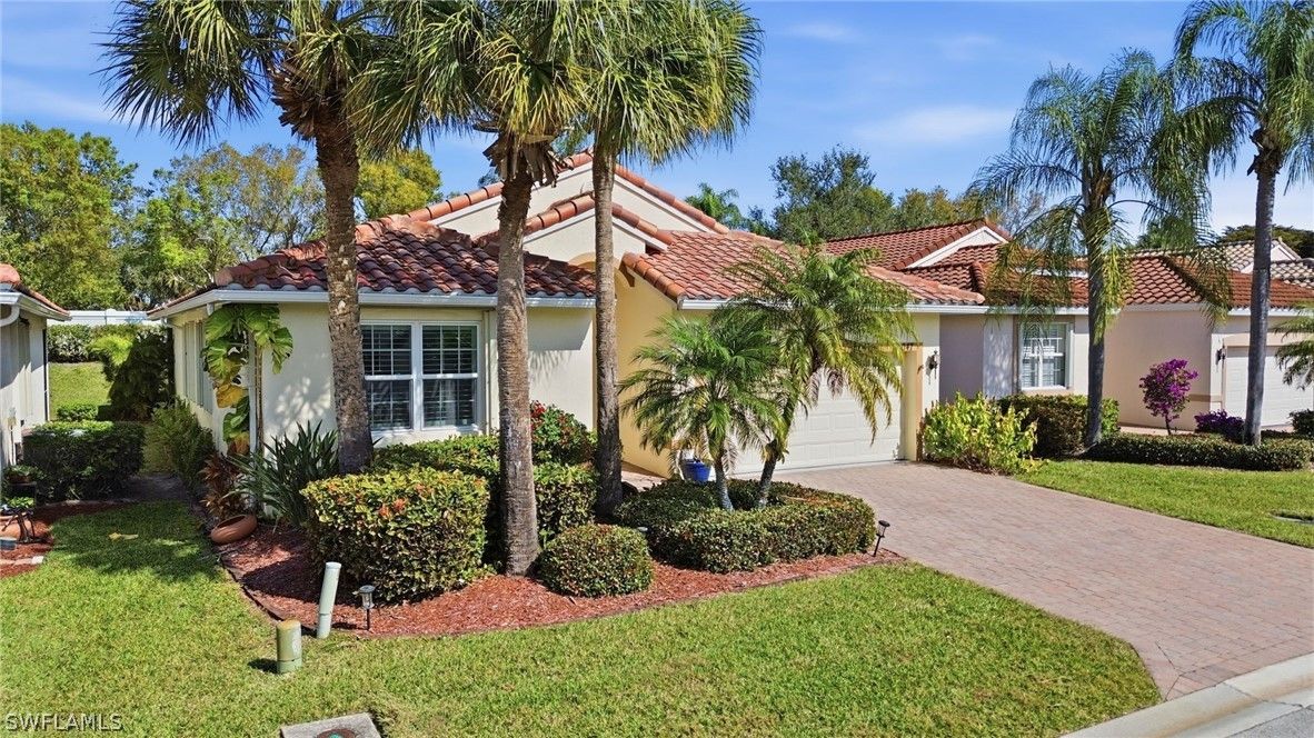Price Improvement! Move In Ready 2BR+Den in Cascades at Estero Beautifully maintained 2 bedroom + den, 2 full-bath home in a highly desirable 55+ gated community. Recent upgrades include roof (2021), kitchen appliances (2023), fresh paint (2023), water heater (2024), A/C with UV lamp (2025), garage door (2025), and washer & dryer (2025). Bright, open living area with vaulted ceilings flows seamlessly into the kitchen, ideal for entertaining or everyday living. Plantation shutters add style and privacy, while accordion hurricane shutters provide added protection. Just a short walk to the clubhouse with resort-style amenities: fitness center, indoor & outdoor heated pools, spa, tennis & pickleball courts, bocce, billiards, art studio, and a full calendar of social activities. Low HOA, no CDD. Conveniently located near shopping, dining, RSW Airport, and Gulf beaches.