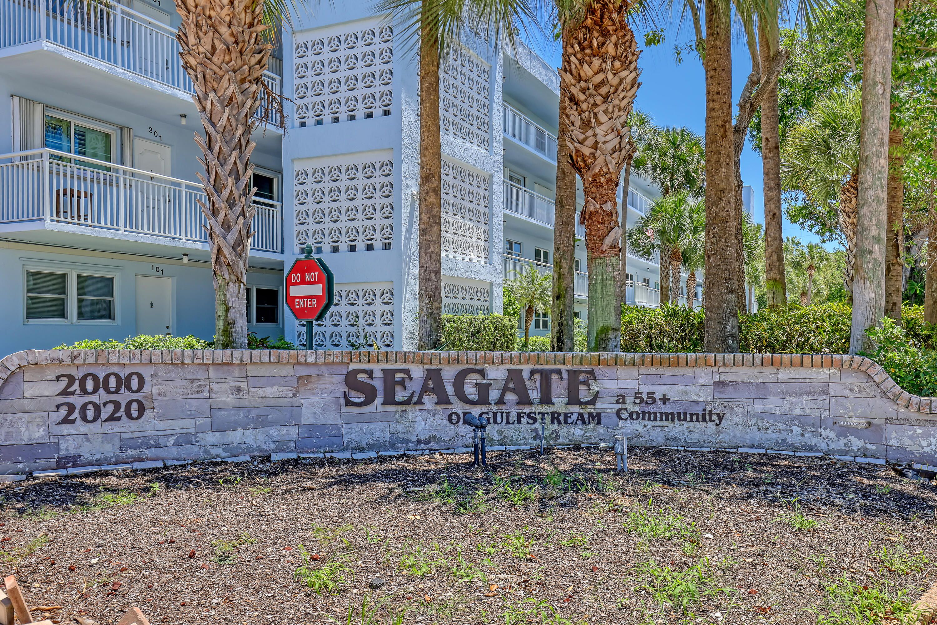 Welcome to this beautiful one-bedroom, one-and-a-half-bath condo located in the prestigious Seagate of Gulfstream community in Boynton Beach. This 55-plus community boasts a variety of amenities for a vibrant lifestyle, including a refreshing pool, a spacious clubhouse, and a fun shuffleboard area. Enjoy serene waterfront views from the property, along with picturesque garden views. The condo is conveniently located close to the elevator and laundry facilities, ensuring easy access to essential services. Step out onto your private balcony to take in the fresh air or take advantage of the nearby bike and jog trails. Additionally, this unit includes a dedicated parking space and features a putting green for leisurely afternoons. Entire Community has nearly completed extensive renovations.