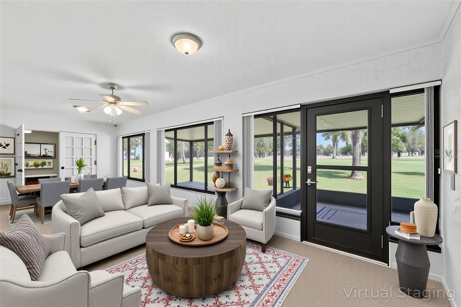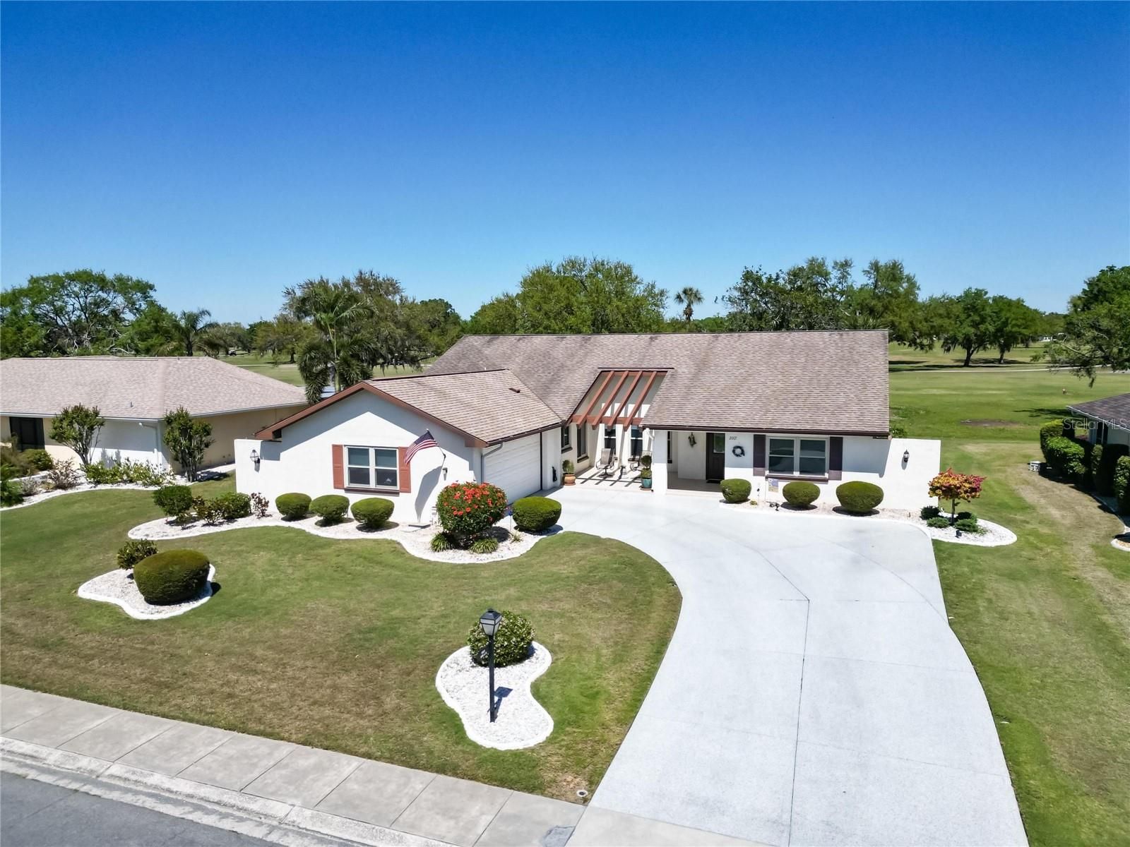Welcome to a golfer’s paradise! Nestled in the prestigious Caloosa Country Club Estates, this impeccably maintained home offers spectacular panoramic views of the 5th fairway, making every day feel like a golf getaway. Located on what locals call "the best street in Sun City Center," this property sits on a wide lot—perfect for adding the custom pool of your dreams. Designed for comfort and efficiency, this home features a ROOF with 50-year shingles and TRIPLE-PANE THERMAL WINDOWS (2009) to keep the home quiet and energy-efficient. Re-piped in 2020 and Hot Water Heater 2024, A/C 2016 w/UV light. Step inside the vaulted, beam-ceiling Great Room, where natural light floods the space, creating an inviting ambiance. Telescoping glass doors open seamlessly into the spacious, air-conditioned Florida room, offering breathtaking wooded fairway views—the perfect spot to unwind after a round of golf. The classic split floor plan boasts TWO MASTER SUITES, each with French doors leading to the Florida room, along with a cozy den/third bedroom featuring built-in bookshelves. Tile flooring in high-traffic areas, a cheerful updated kitchen with Corian countertops, roll-out drawers, and a glass-top range make this home both stylish and functional. A new front-load washer and dryer are conveniently located in the adjacent utility room. Golfers will appreciate the side-load garage with keyless entry, storage, windows, a vinyl ceiling, and a coated floor—all enhancing the home’s curb appeal. With optional club membership, you’ll have access to world-class golf just steps from your backyard. One of the biggest draws of this property is the impressive array of community amenities. Sun City Center residents enjoy access to a cafe, inviting pools (including a unique walking pool), a relaxing spa, a well-equipped fitness center, tennis courts, and sports facilities. One-time $3,000 capital investment fee and a $344 yearly activity fee per person. It's the ideal environment for staying active and socializing with your neighbors. Situated in a prime location within the Sun City Center community, this home offers the convenience of easy access to all the amenities and services that make life in this community so vibrant and fulfilling. It's also a golf cart community, making it a breeze to explore the neighborhood and its numerous offerings. This property is move-in ready, waiting for you to experience the endless possibilities it offers in the heart of this thriving 55+ community. Don't miss your chance to make this piece of Sun City Center yours. There are activities for every interest. Amenities include community pools, fitness, shuffleboard, softball, lawn bowling, pickleball, lapidary, art, wood carving and more. There are several golf courses in Sun City Center, and you can drive your golf cart within Sun City Center. The community has several grocery stores, salons, banks, pharmacies, a hospital, and restaurants! The home is close to major expressways, dining, shopping, airport, and of course our beautiful beaches and the Tampa Riverwalk. Call to schedule your showing today! “Some photos have been virtually staged to show potential furniture placement and design. No physical items are included.”