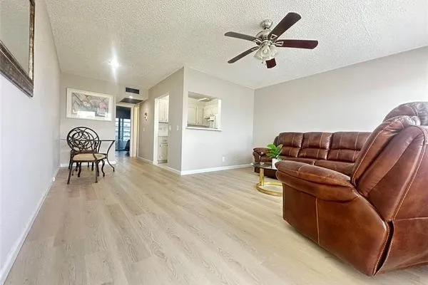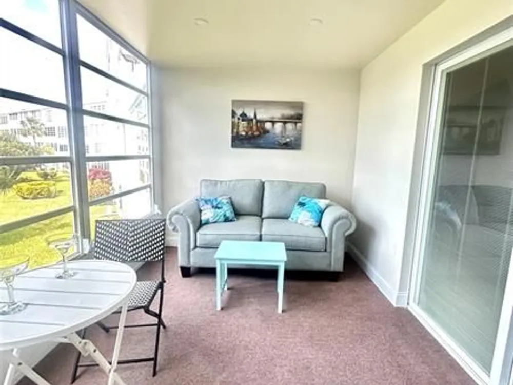 GORGEOUS WATER VIEW! This clean & bright 1 bed, 1 bath condo on the 2nd flr is priced right and READY FOR YOU to enjoy Florida living at its best! Features include new waterproof vinyl floors throughout, fresh paint, new sliding glass doors w/built-in blinds & smooth bedroom ceiling w/recessed lighting! Kitchen has white appliances (NO DOME), & the bathroom offers a tub/shower combo w/glass doors. Unit comes partially furnished—living room sofa & recliner are electric! Enjoy the stunning lake view from your 8 Ft. enclosed patio. Conveniently located near elevator & laundry! Well-maintained bldg. w/full reserves, BRAND NEW ROOF & 2 elevators! Resort-style 55+ gated community w/24-hr security, free bus, theatre, library, fitness center, billiards, pools, tennis, pickleball & MORE!