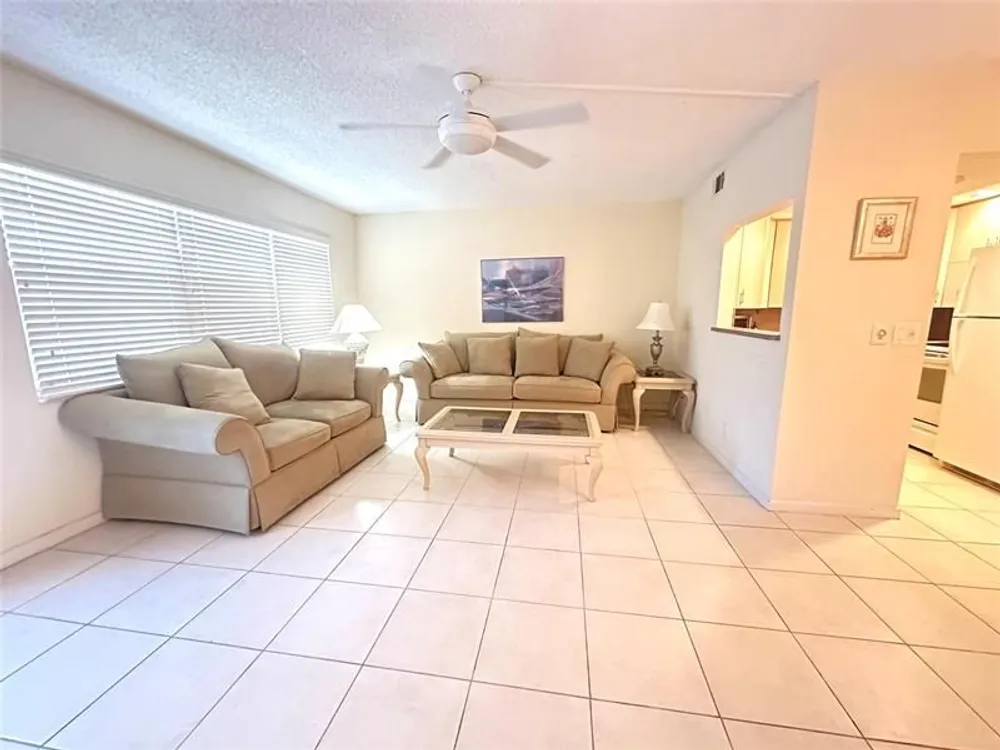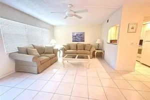 PRIME LOCATION! Walk to plaza, pool & CLUBHOUSE! This immaculate 1 bedrm, 1.5 bath is furnished & nicely updated with a KOSHER kitchen featuring extra counter space, white appl & recessed ltg. Beautifully remodeled primary bathrm w/lg vanity, glass shower doors & tiled walls. Tile flrs in liv areas, carpet in bedrm. Ceiling fans in every room. Relax w/ a cup of coffee in the lg. encl patio w/roll down shutters & a tranquil garden & pool view. Bldg has a shabbat elevator & full reserves. Come enjoy resort style amenities in this gated comm w/24 hr sec, free busses, pools, tennis, pickleball, putting green, Cafe & State-of-the-Art Clubhouse featuring classes, clubs, billiards, gym, theater, movies & much more! Close to shopping, dining & beach! YOU WILL LOVE LIVING HERE! Assoc. Claims 55+.