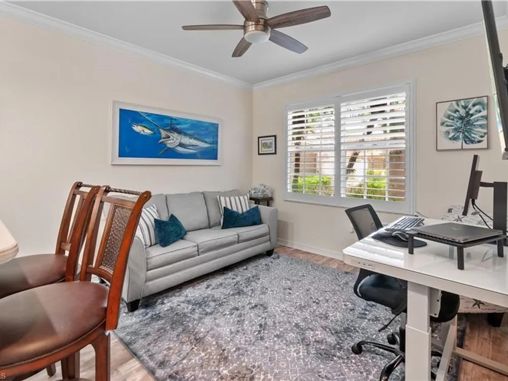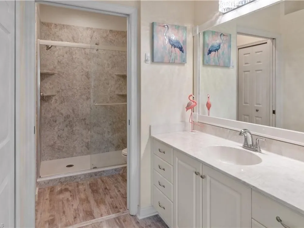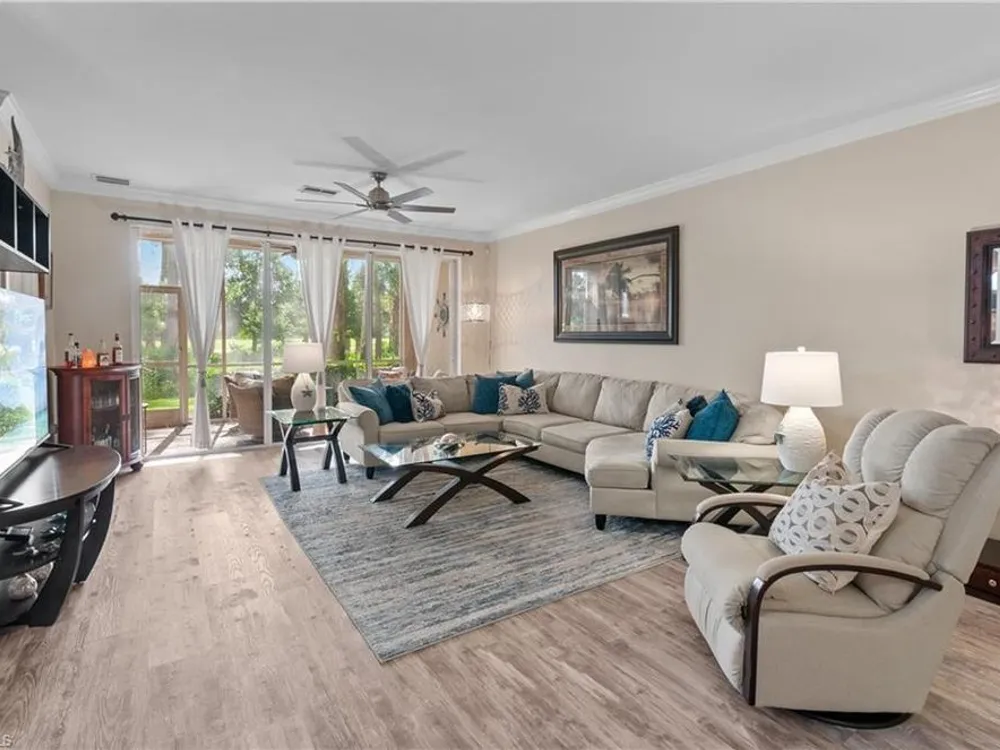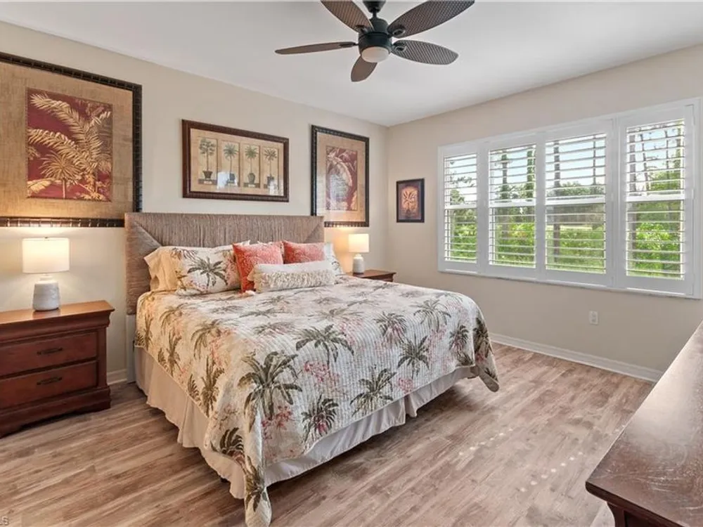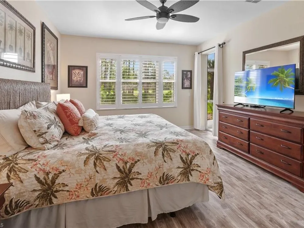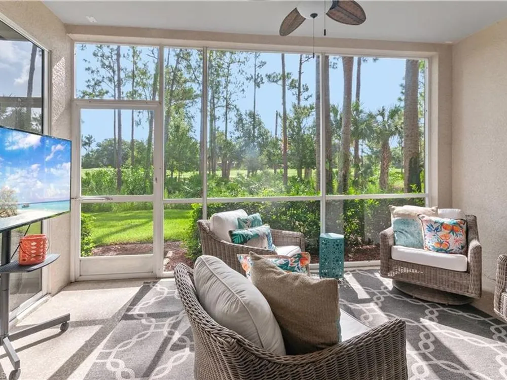 Coveted First-Floor Condominium FURNISHED with Impressive Recent Upgrades and Golf Course Views in Estero’s Grandezza Community! Welcome to this pristine and beautifully updated FURNISHED FIRST-FLOOR Condominium, Stock Builder, offering the perfect blend of elegance, functionality, and convenience. With a split floor plan featuring 2 spacious bedrooms, a versatile den with a sleeper sofa, and 2 full bathrooms, this home is move-in ready and thoughtfully designed for comfort. Boasting over $50,000 in recent upgrades, this home features a new roof, a single-car garage with additional room for a golf cart, and a large screened-in lanai with brand-new no-see-um screens (January 2025) overlooking the scenic 7th fairway. The HVAC system—including AC exchange, water heater, and Ecobee Smart Thermostat—was replaced in 2021 for energy-efficient comfort. Flooring has been upgraded to luxury vinyl plank (LVP) throughout the entire home—no carpet in sight. The primary bathroom showcases a brand-new walk-in shower (May 2025) with a sleek barn door-style glass enclosure, creating a spa-like retreat with a modern touch. Every room is enhanced with plantation shutters, upgraded lighting, and modern ceiling fans, while both bathrooms include new vanity lighting, framed mirrors, and new toilets (2024) for added convenience. This pristine home is being sold furnished—just bring your toothbrush and move right in to start enjoying the "Grand Life"! Why pay high seasonal rents when you can have your own piece of paradise? Ideally located within walking distance to the Grandezza clubhouse, you'll enjoy access to multiple restaurants, bars, and a lively social scene just steps from your front door. Grandezza offers a premier lifestyle with a 53,000 sq. ft. clubhouse, resort-style pool and spa, Har-Tru tennis courts, bocce, state-of-the-art fitness centers, and an 18-hole championship golf course designed by Darwin Sharp III. Plus, enjoy the unbeatable convenience of nearby RSW airport, I-75, Hertz Arena, Miromar Outlets, Gulf Coast Town Center, Coconut Point, fine dining, entertainment, and white sandy beaches. Don’t miss this immaculate, move-in-ready home with $50K in upgrades—schedule your private tour today and start living the Florida lifestyle in style!