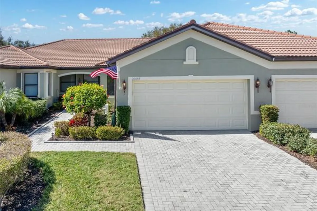 This stunning 2-bedroom + den, 2-bath, 2-car garage attached villa in the premier, 55+ resort-style community of Venetian Falls is ready to welcome you home—and it’s being offered turnkey furnished with high-end, upscale furnishings, making your move effortless. This desirable Palermo model boasts a bright, open floor plan with tile flooring throughout the main living areas and rich wood laminate in both bedrooms and the den. The well-appointed kitchen is a standout, featuring granite countertops, a breakfast bar, solid wood cabinets with decorative trim, a pantry, skylight, and space for a cozy dinette or additional cabinetry. The versatile den includes French doors, offering privacy and flexibility for a home office, guest space, or hobby room. Beautiful pavers enhance the driveway, walkway, front porch, and EXTENDED screened LANAI. Enjoy peace of mind with a new A/C installed in 2023, complete with a 10-year transferable parts and labor warranty. Additional upgrades include a 2023 Water Heater, remote-controlled STORM SMART shade and storm shutter for the covered lanai, keyless front entry, and an extra entryway door with interchangeable glass and screen inserts. The extended lanai provides the perfect setting for grilling, dining, or simply relaxing in the Florida sunshine—whether you prefer sun or shade. Venetian Falls offers an active, resort-style lifestyle with amenities that include a heated pool, a resistance-walking pool, state-of-the-art fitness center, billiard room, bocce ball courts, a full-time activities director, and on-site management. The reasonable HOA fee covers lawn care, internet, cable TV, exterior painting, and roof power washing. Ideally located just minutes from Wellen Park, shopping, dining, Downtown Venice, Atlanta Braves Spring Training, and the beautiful Gulf beaches, this impeccably maintained, move-in-ready villa truly has it all. Don’t miss this opportunity to enjoy carefree Florida living at its finest!