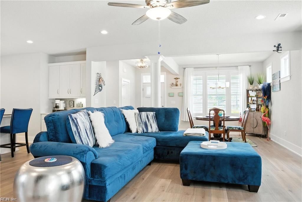 Welcome to 201 Cove Reach—your coastal retreat in the heart of Suffolk’s vibrant 55+ community! This like-new 4 bedroom, 3 bath home is full of charm and light, featuring an open floor plan, stylish finishes, and water views that will make every day feel like a getaway. Upstairs, the spacious flex room opens to a private balcony—perfect for sunset cocktails or morning coffee. The cheerful screened-in porch and private paver patio add even more space to unwind or entertain. You’ll love the community amenities and the unbeatable location just steps from Decoys Marina, the pool, and the restaurant. You can truly relax and enjoy the good life here whether you’re looking to downsize without compromise or crave a low-maintenance lifestyle with coastal flair, this home checks all the boxes!