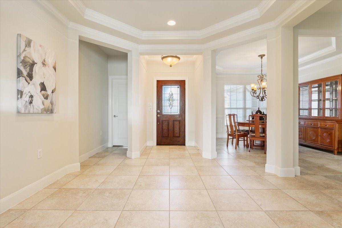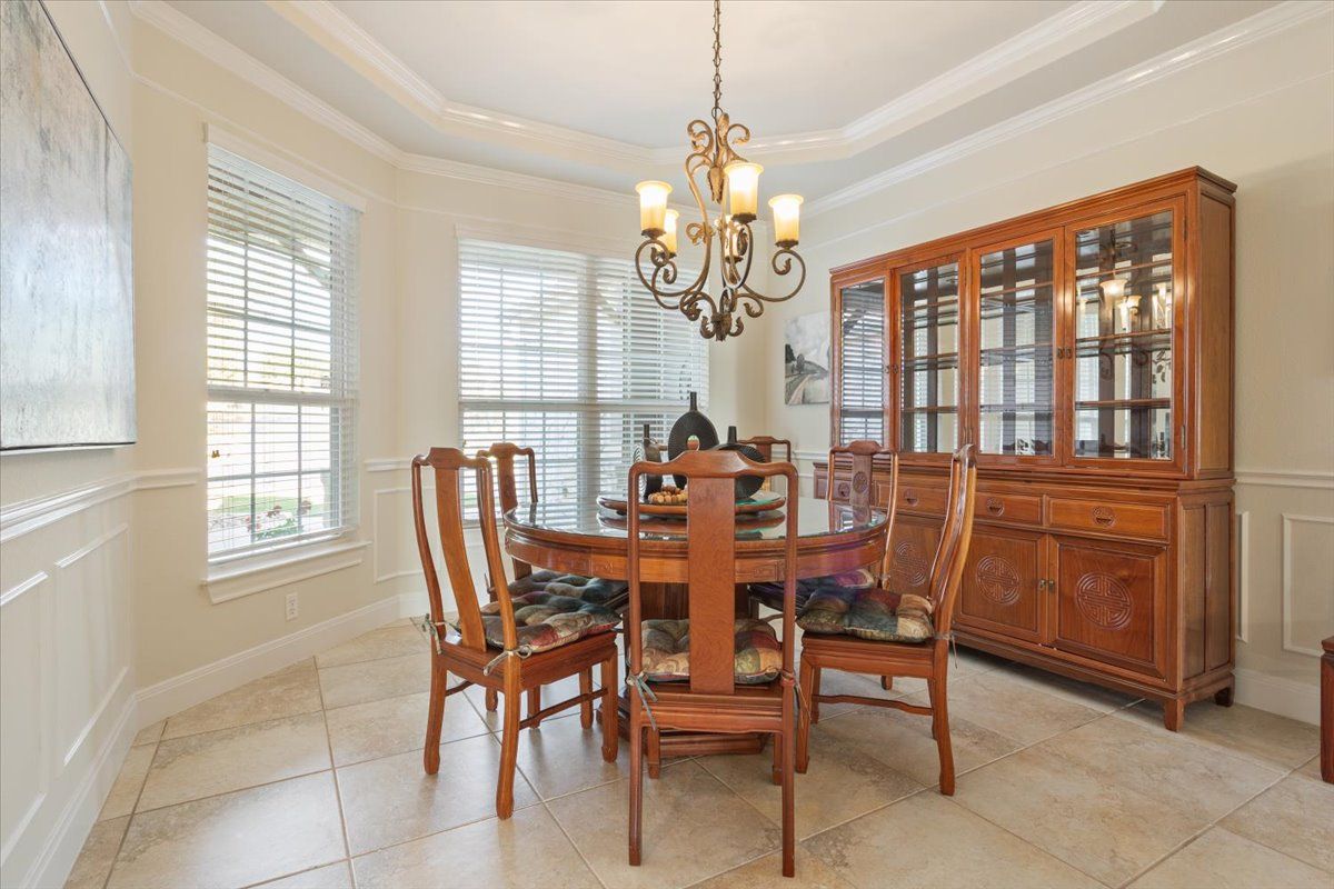 - Breakfast Bar, Ceiling Fan(s), Crown Molding, Separate/Formal Dining Room, Eat-in Kitchen, Granite Counters, Kitchen Island, Multiple Dining Areas, Main Level Primary, Pantry, Recessed Lighting, Walk-In Closet(s)