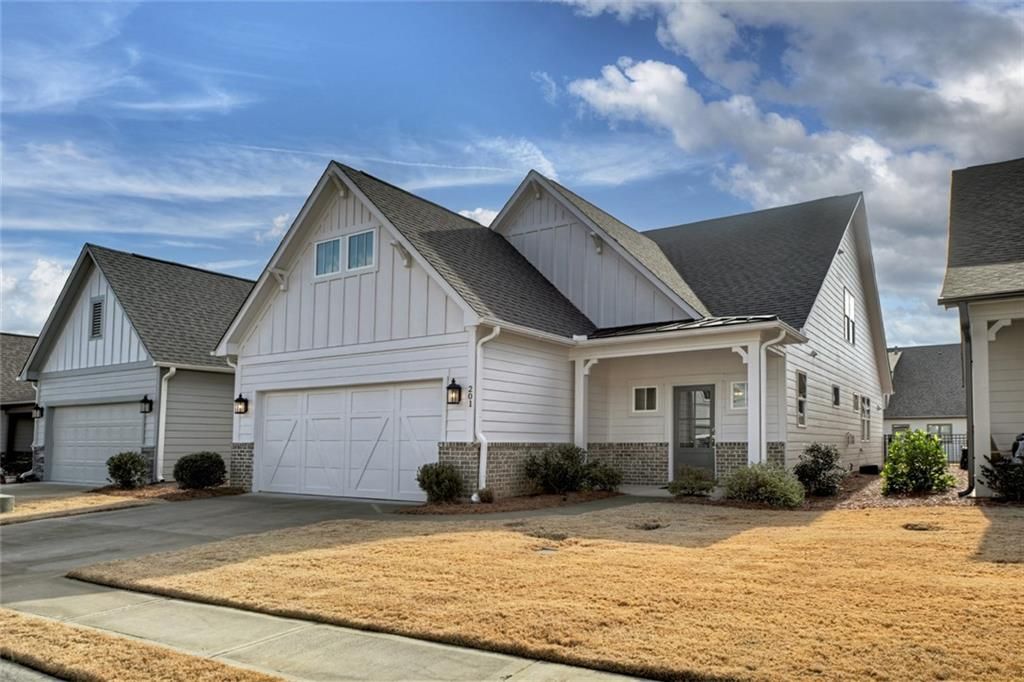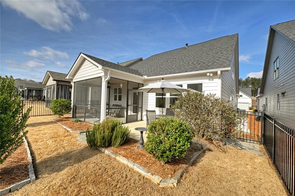 Upgrades galore in this LIKE-NEW home located in Grandview at Gateway—North Georgia’s premier 55+ active adult community! This beautifully upgraded 3-bedroom, 2.5-bath home is thoughtfully designed with an open-concept layout with a welcoming foyer and convenient key drop, gas-log fireplace, open staircase, crown molding, and a well-appointed kitchen with quartz countertops, stainless appliances, soft-close cabinetry, and pantry. The spacious primary suite offers a tiled shower and an oversized walk-in closet with direct access to the laundry room with built-in cabinetry, while a desk nook under the stairwell provides the perfect spot for a small home office. Outdoor living shines with a relaxing screened porch with an electric shade, open patio, and level, fenced backyard with beautiful landscaping and privacy fence. (Great for pets.) Additional highlights include a 2-car garage and numerous custom features rarely found in comparable homes, including a Generac generator, SPF window film, brand-new gas logs, new garage door opener, recent exterior and primary bedroom paint, foam insulation, sprinkler system, and more—this home is truly MOVE-IN READY. Grandview offers resort-style amenities including a clubhouse, pool, fitness center, pickleball, yoga, game room, dog park, lake, community garden, and scenic walking trails. The HOA fee covers cable, high-speed internet, trash service, and lawn care for a true lock-and-leave lifestyle, all conveniently located near everyday shopping, dining, and top medical facilities. (Close to everyday essentials: Kroger, Walmart, Publix, CVS, and within minutes of Piedmont Mountainside & Northside Cherokee Healthcare.) Grandview at Gateway feels like a vacation destination, it's secure, community-oriented, and amenity-rich for active adults. Whether you enjoy social events, staying active, enjoying mountain scenery, or just relaxing by your screened porch, this community offers that lifestyle.