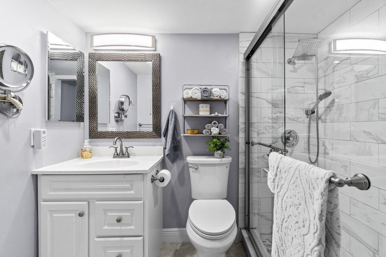 Spectacular Fully Remodeled Corner Unit 1 Bed 1.5 Bath First Floor Convenience! This home combines modern elegance with everyday comfort. Step inside to discover gorgeous ceramic tile flooring throughout and a bright, open layout. The chef-inspired shaker kitchen is complete with granite countertops, stainless steel appliances, a breakfast nook, and LED high hats for a sleek, contemporary look. Freshly painted in high-end neutral tones, this unit is enhanced with crown molding and LED mood lighting, creating a warm and stylish ambiance. The primary bedroom is generously sized and includes a private ensuite bath featuring a tiled walk-in shower with mosaic flooring, glass shower doors, and a built-in niche - all designed with today's modern tastes in mind. The updated bathrooms also